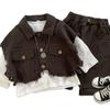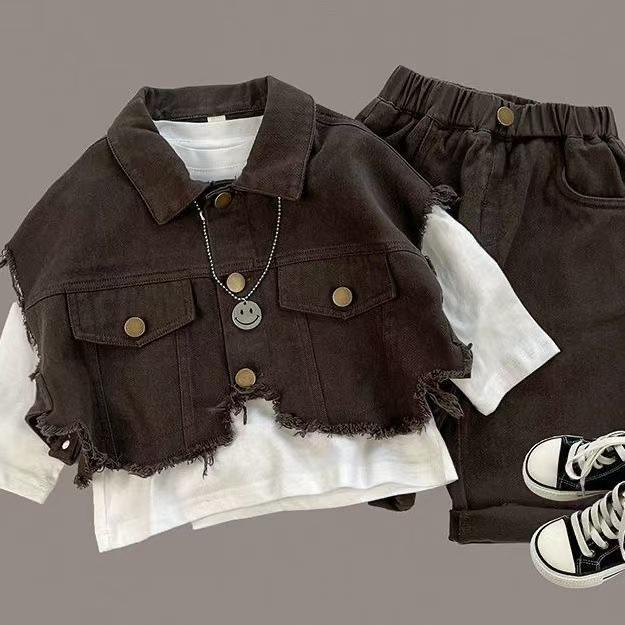 2025 Nuevo Otoño Niños Primavera y Otoño Moda Estilo Occidental Chaleco Chaqueta Pantalones Casuales Mori Conjunto de tres piezas Traje de Moda
