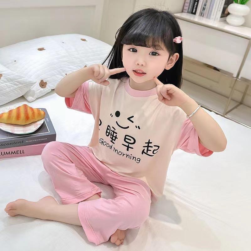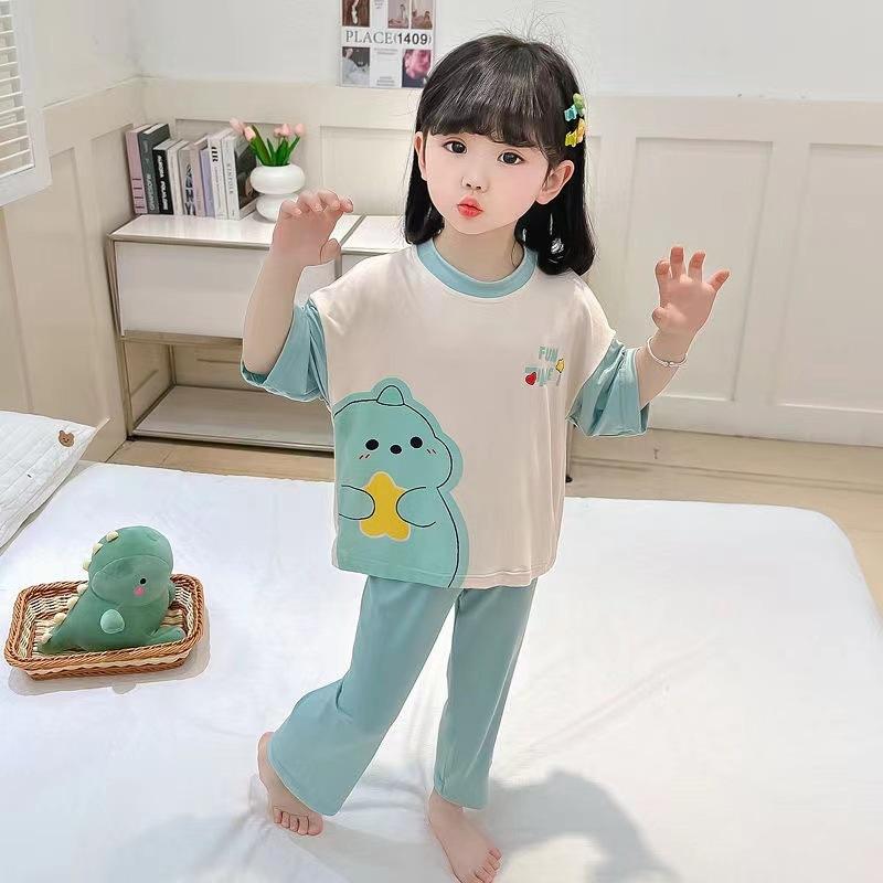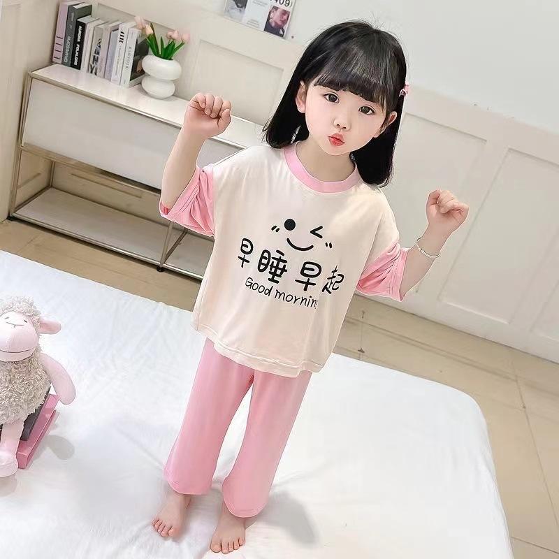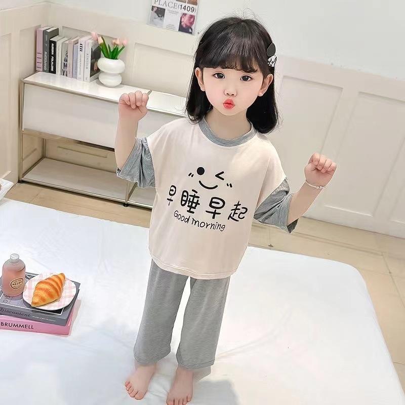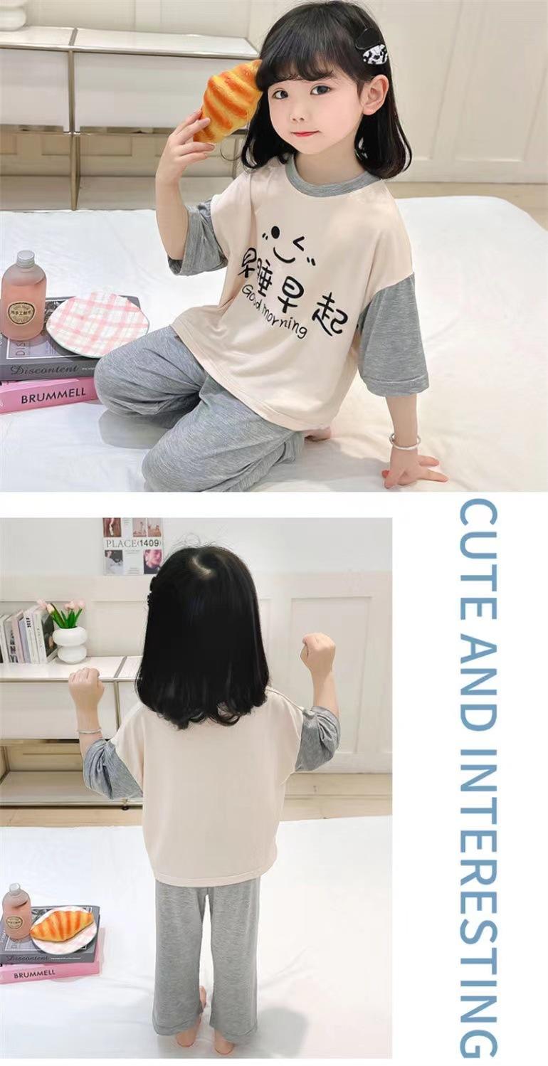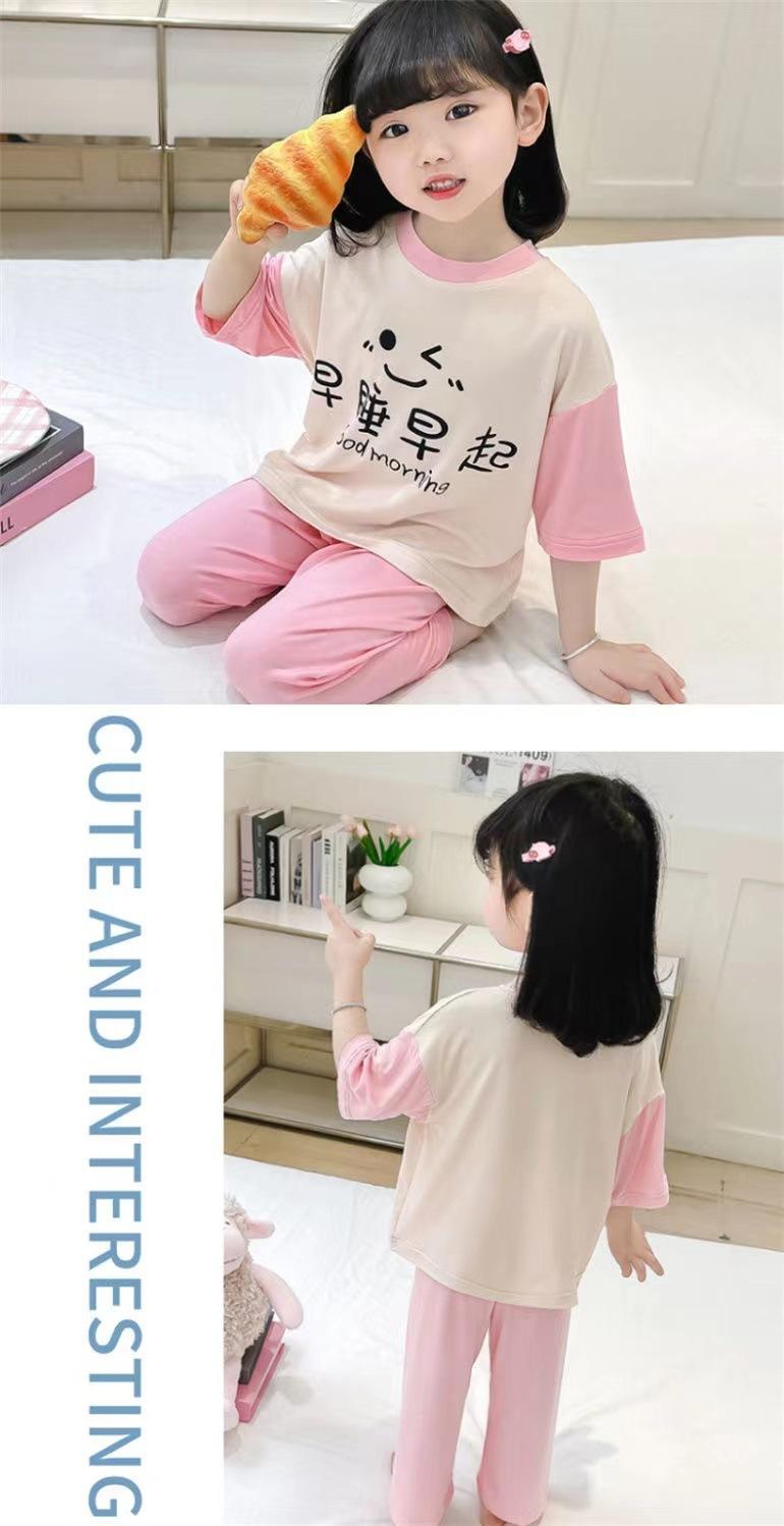 Pijamas Nuevos de Verano para Niños de Seda de Hielo Fina para Salir, Traje para Niños y Niñas de Manga Dividida para el Hogar con Aire Acondicionado