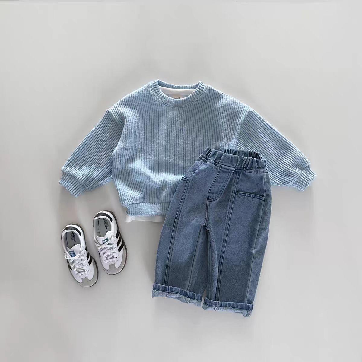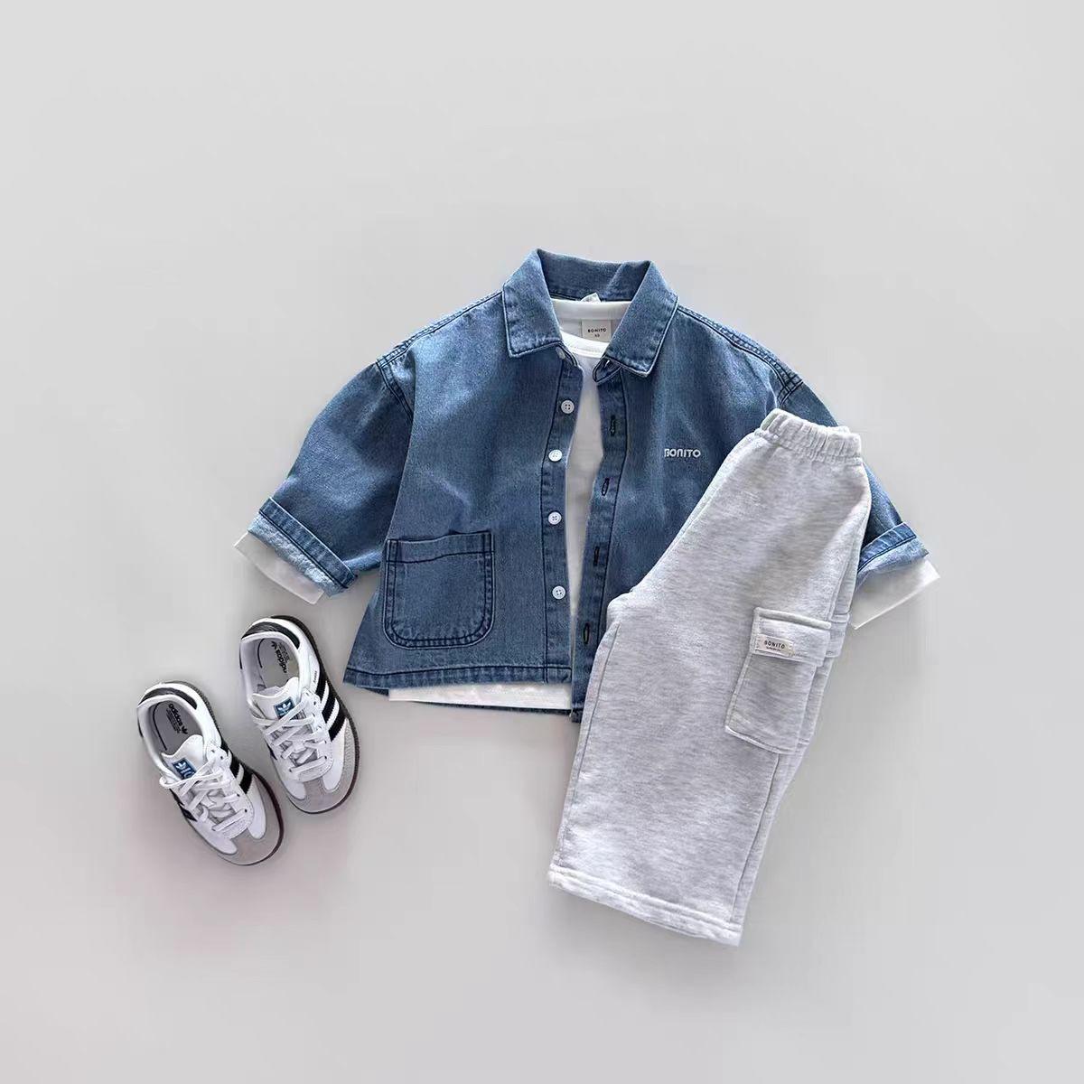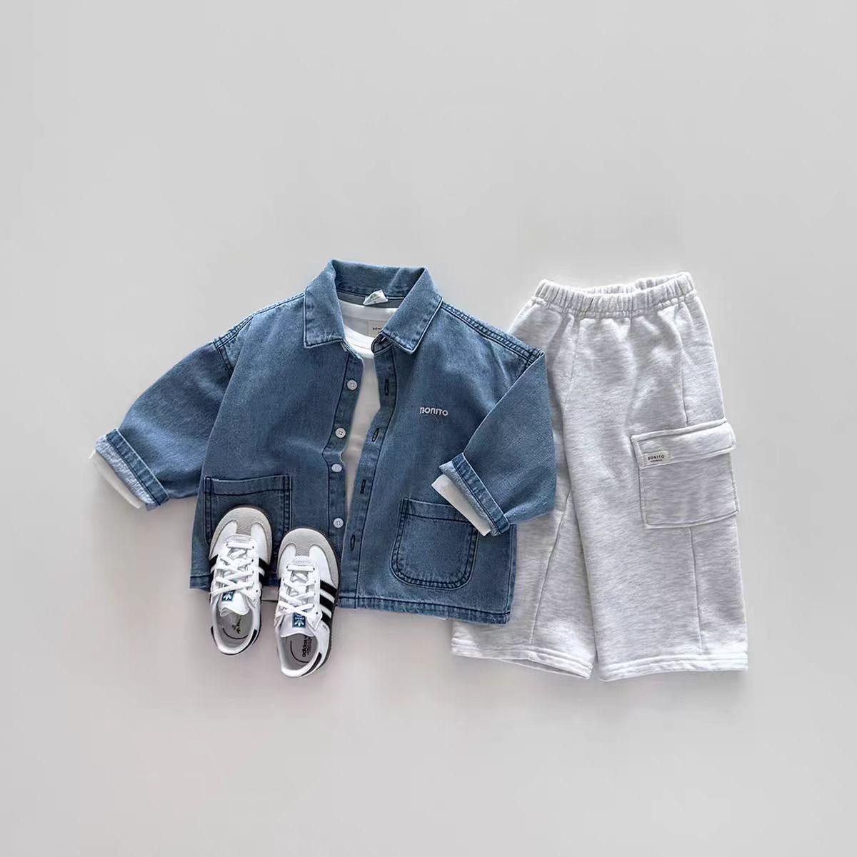 Versión coreana de ins compra abrigo de mezclilla pantalones primavera nueva versión suelta de niños y niñas bebé versátil casual