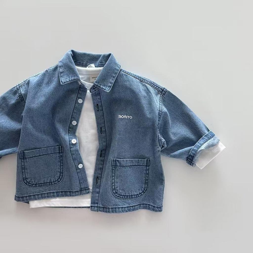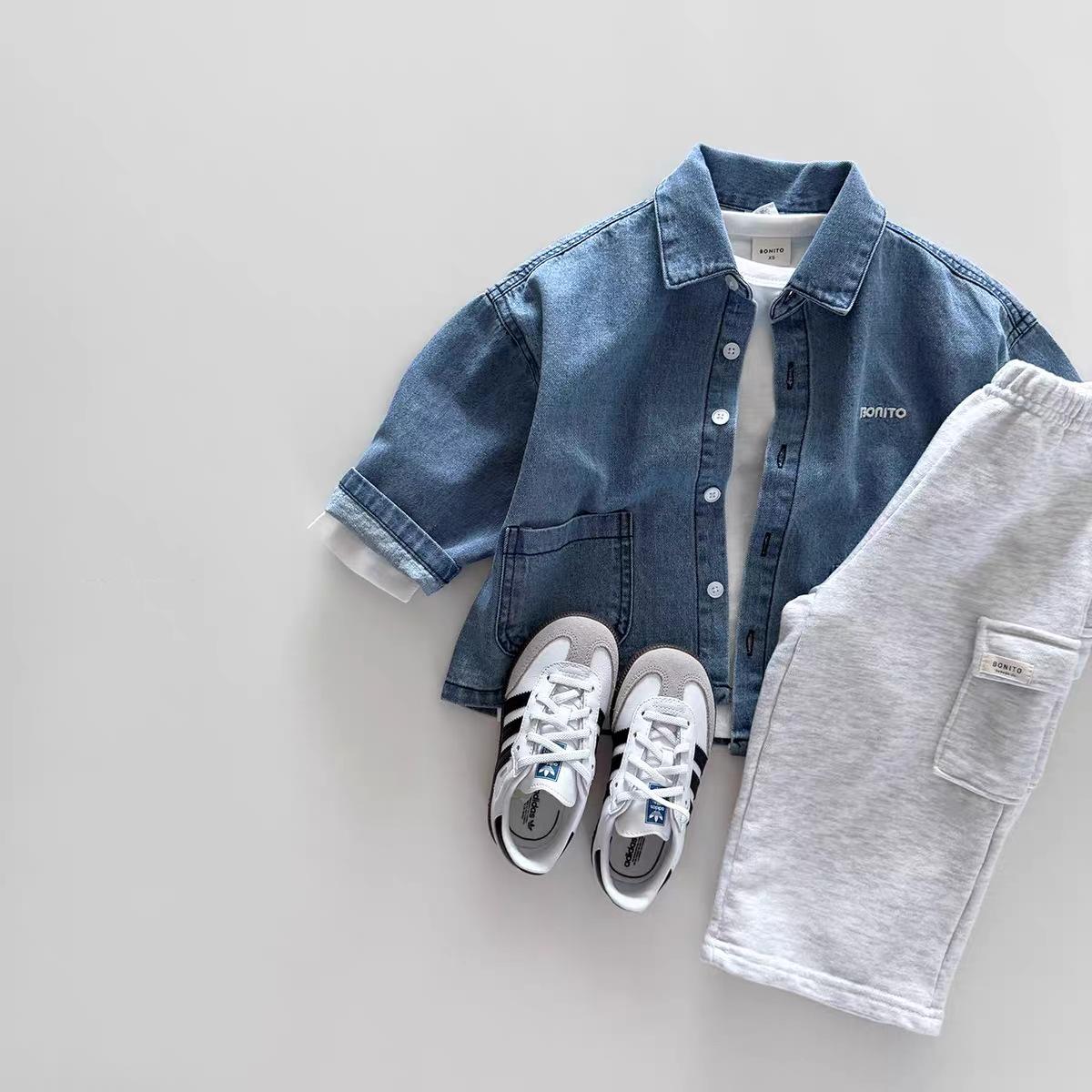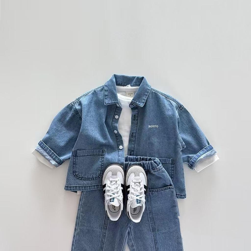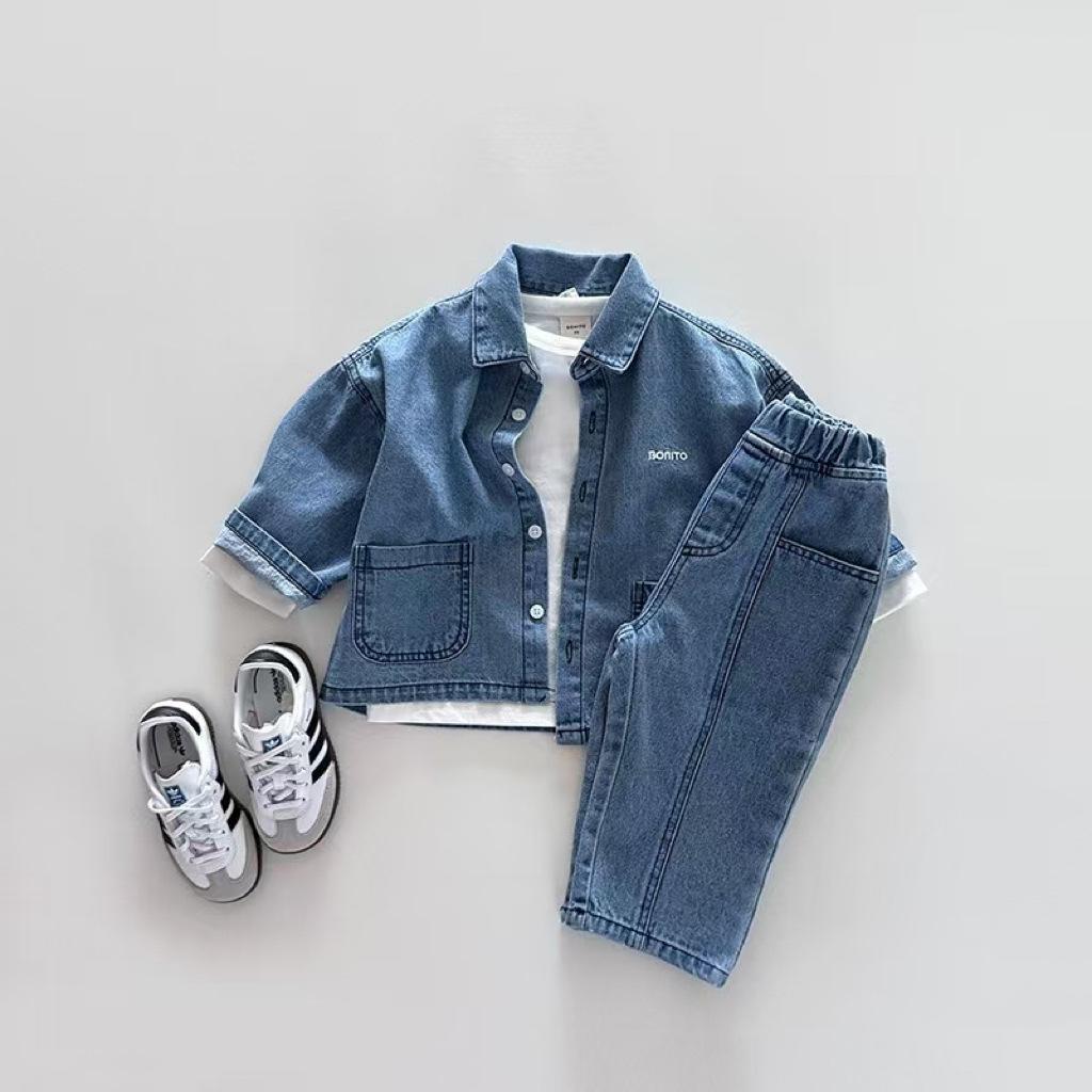 Versión coreana de ins compra abrigo de mezclilla pantalones primavera nueva versión suelta de niños y niñas bebé versátil casual