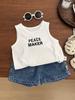 Chaleco Delgado de Estilo Coreano para Niños Dos Piezas Nuevo Guapo Bebé Fresco Top sin Mangas Casual Combinable Jeans