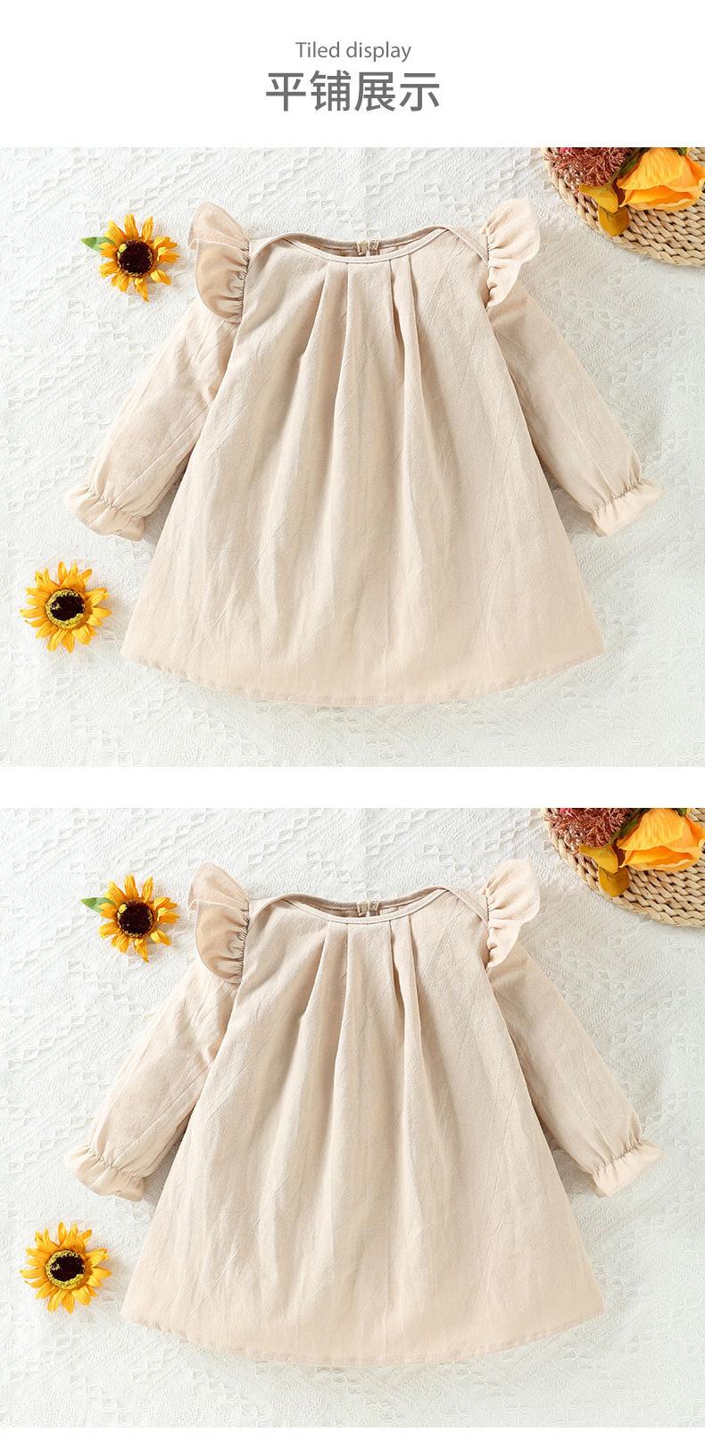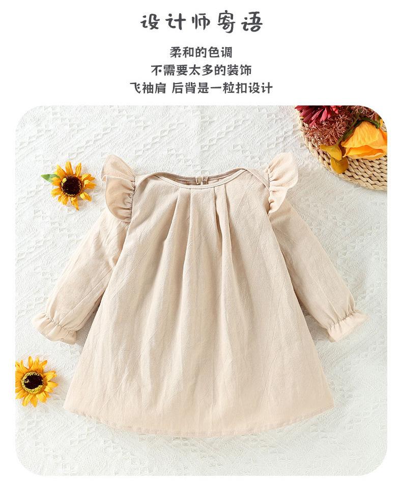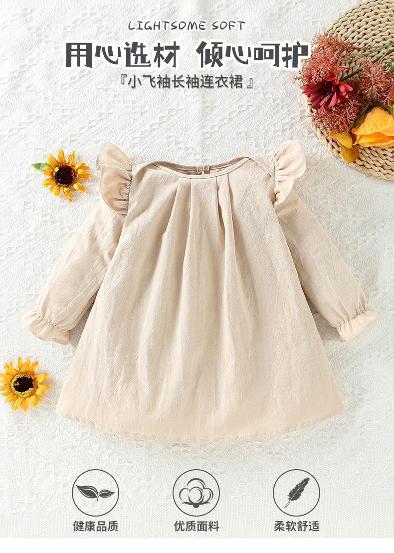 Nuevo Vestido de Princesa de Manga Volante Estilo Coreano para Primavera y Otoño para Niñas Bebé Vestido de Manga Larga Algodón Simple Tejido de Alta Calidad