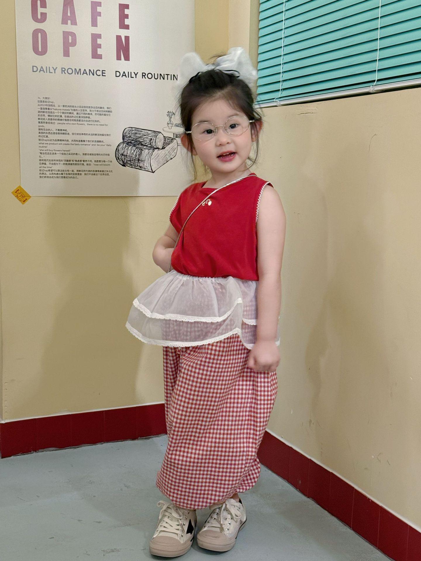 Sleeveless vest xpx755, Plaid pants xpx755, White p curtain xpx716