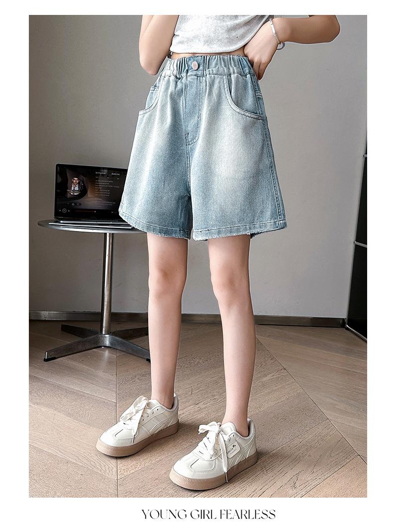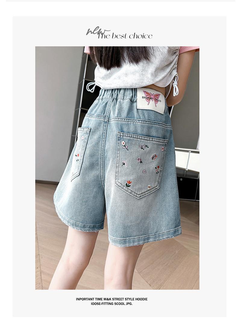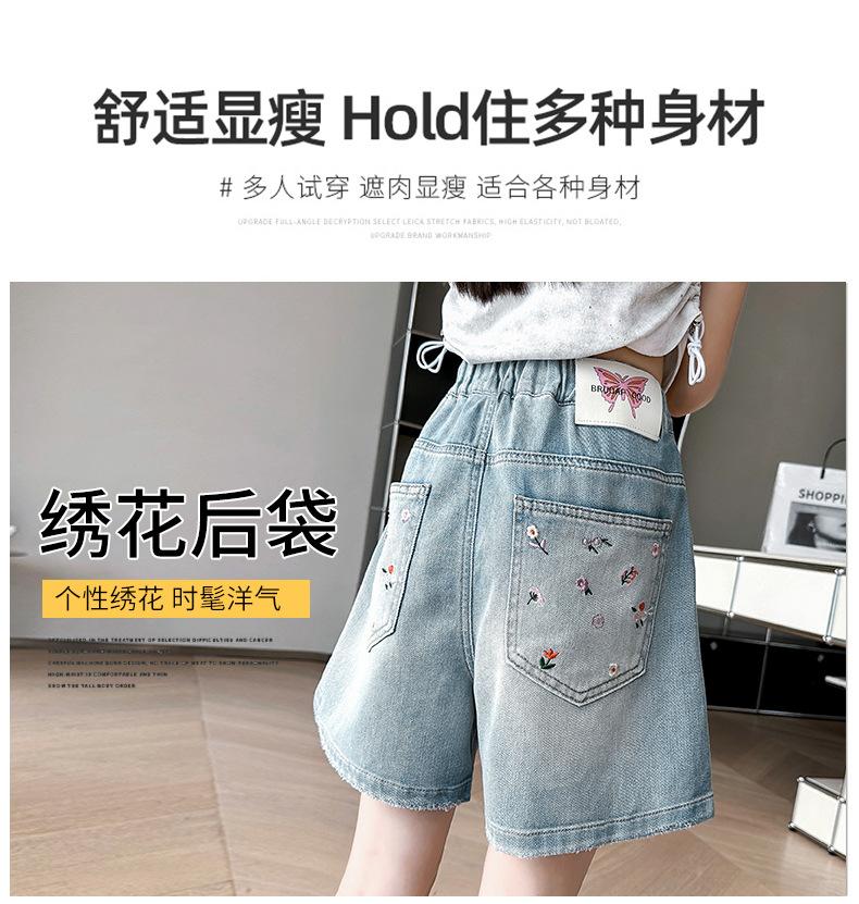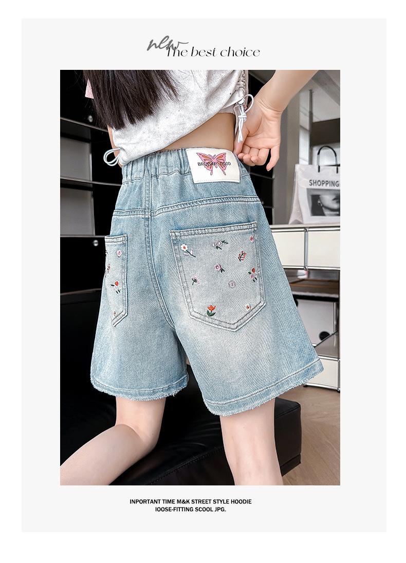 Shorts de mezclilla para niña Verano Delgados 2025 Nuevos Pantalones cortos de verano para niños Bolsillo para niños grandes Pantalones bordados