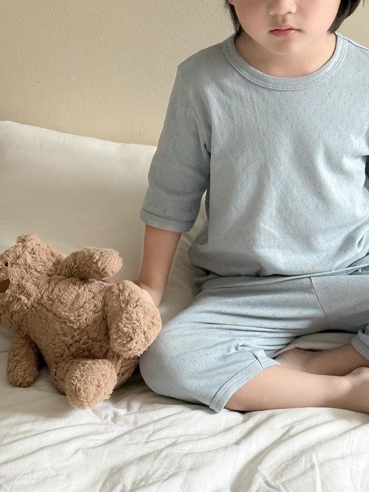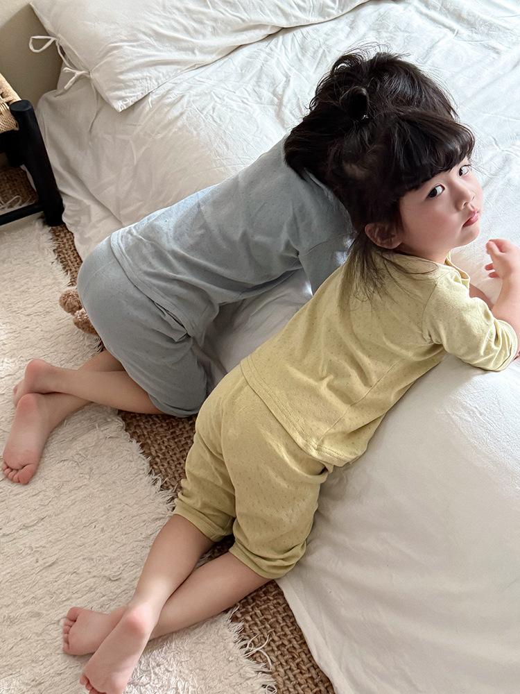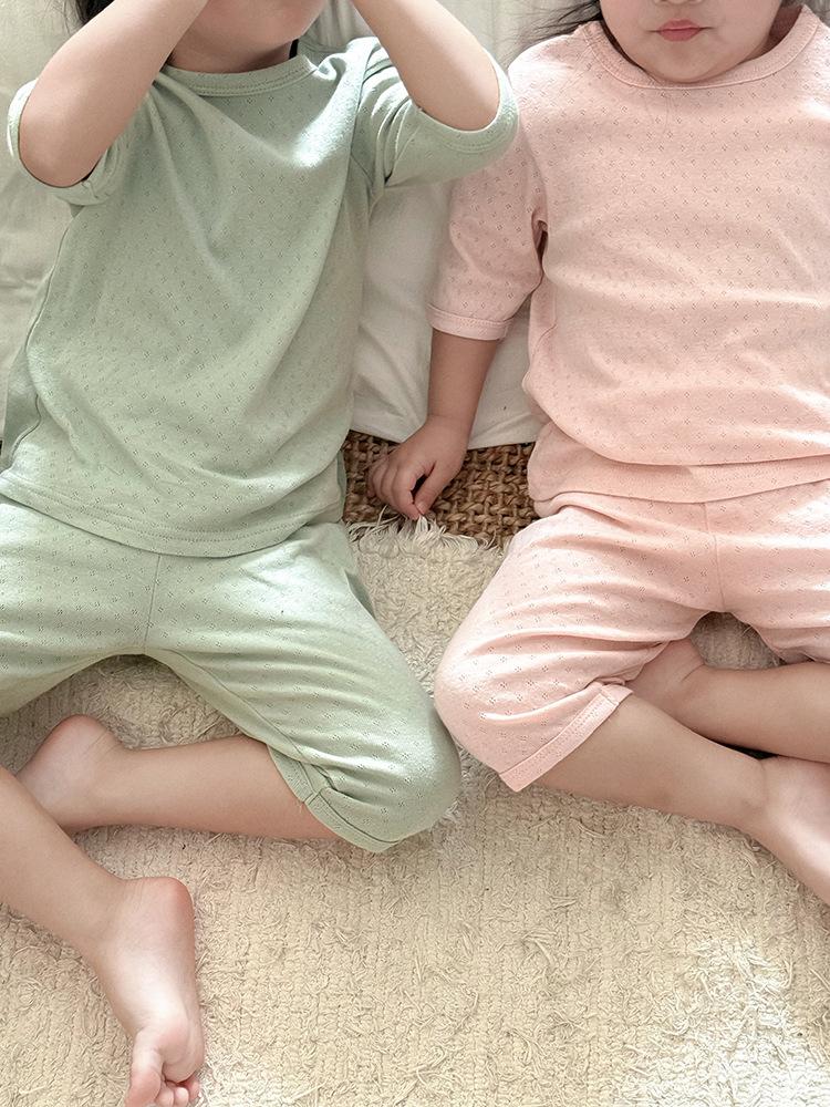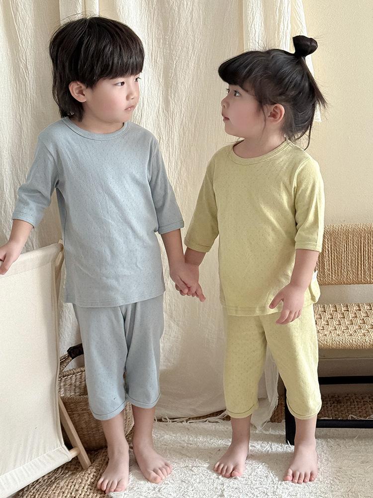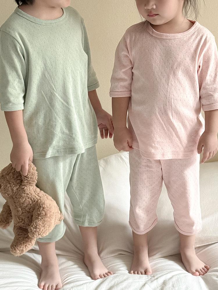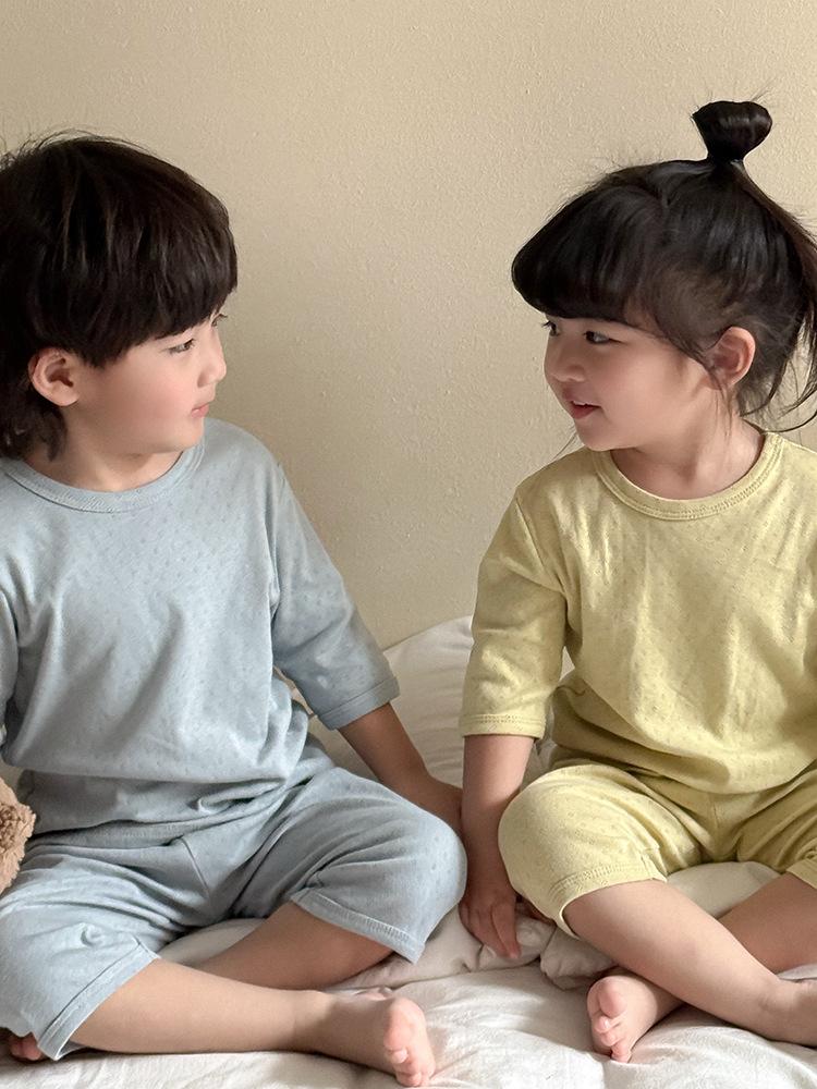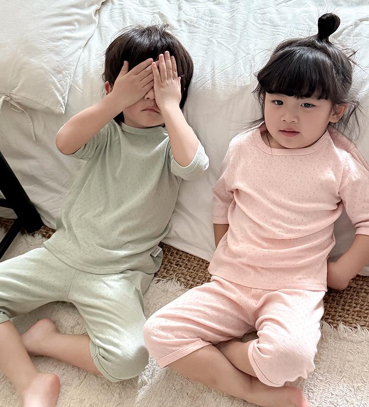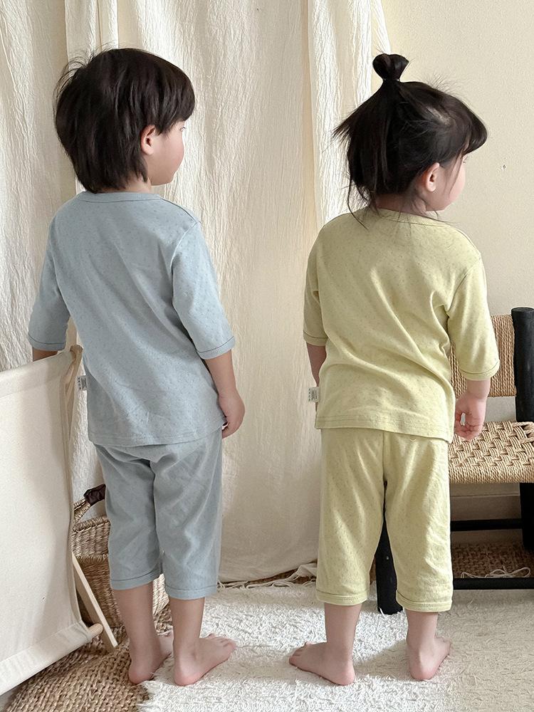 Pijamas para niños de algodón puro fino categoría A para niños y niñas, traje de verano de siete mangas, ropa de bebé con aire acondicionado para el hogar, ropa de verano