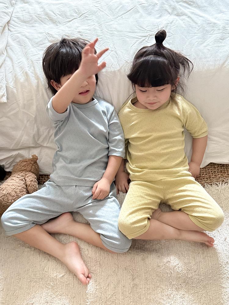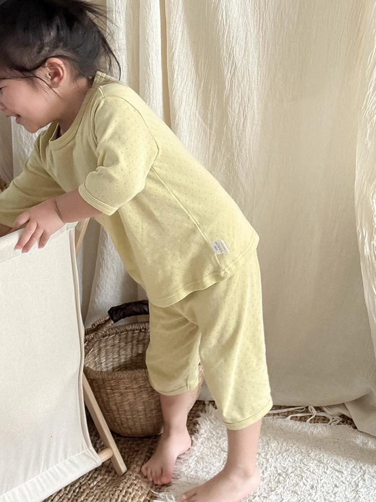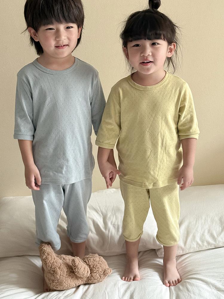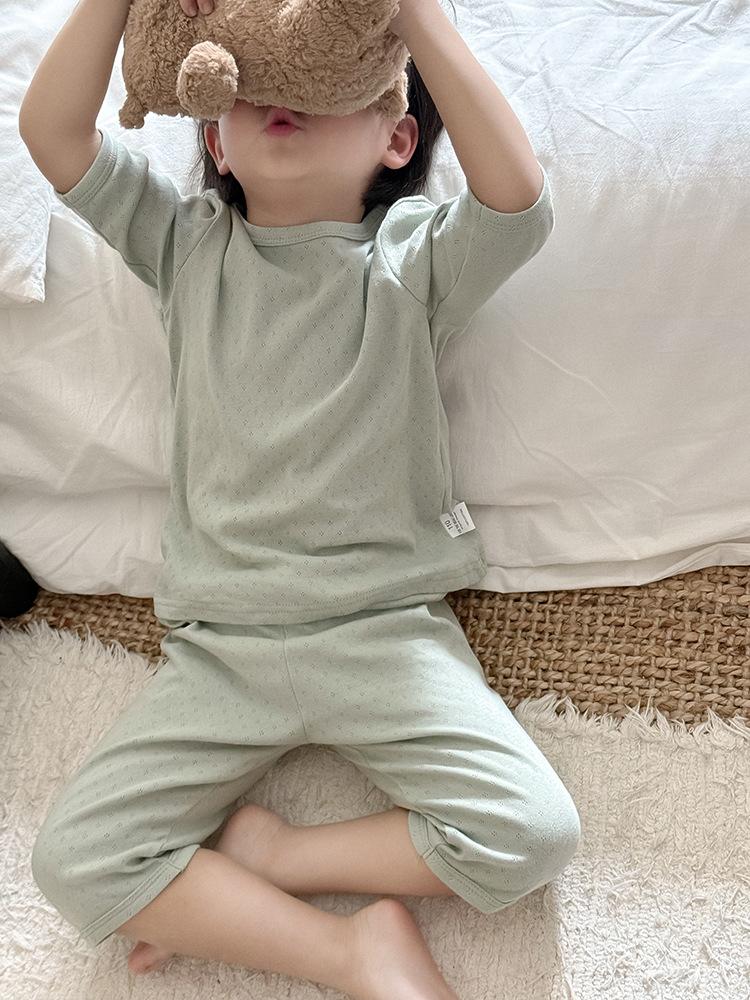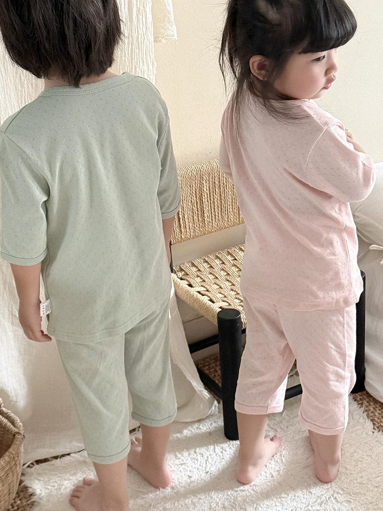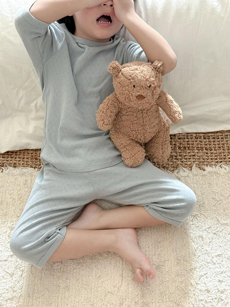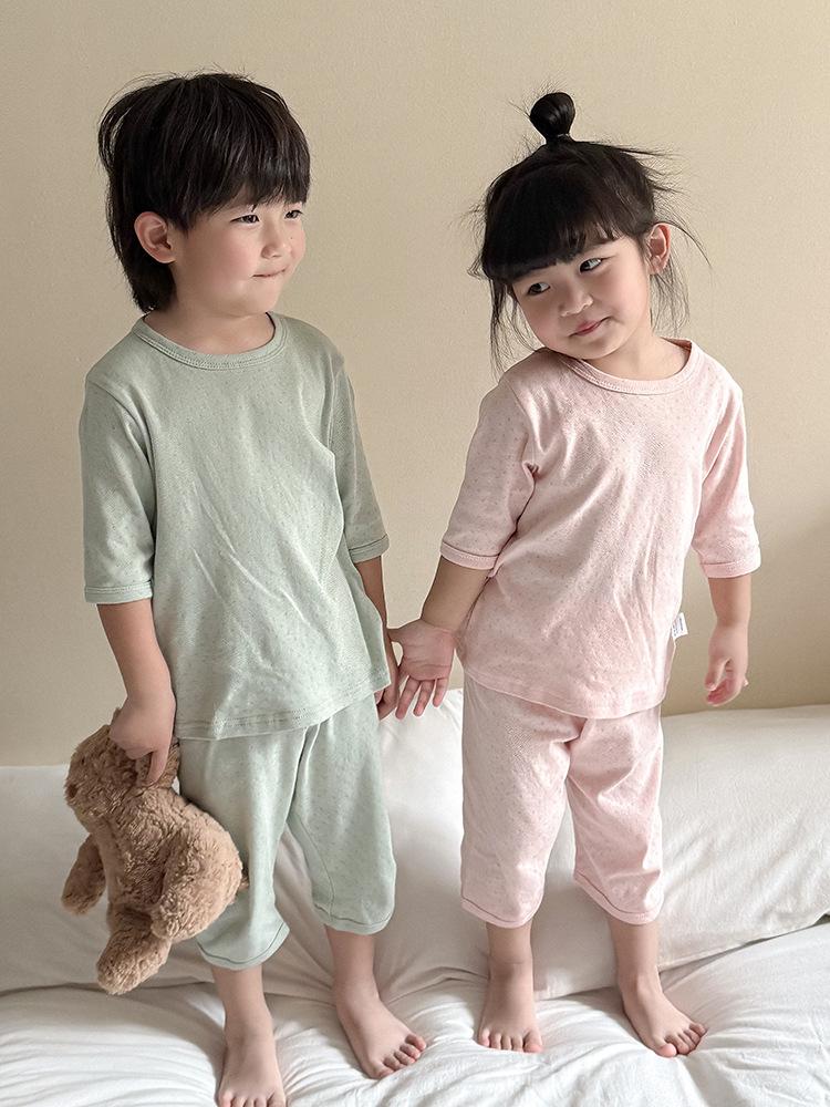 Pijamas para niños de algodón puro fino categoría A para niños y niñas, traje de verano de siete mangas, ropa de bebé con aire acondicionado para el hogar, ropa de verano