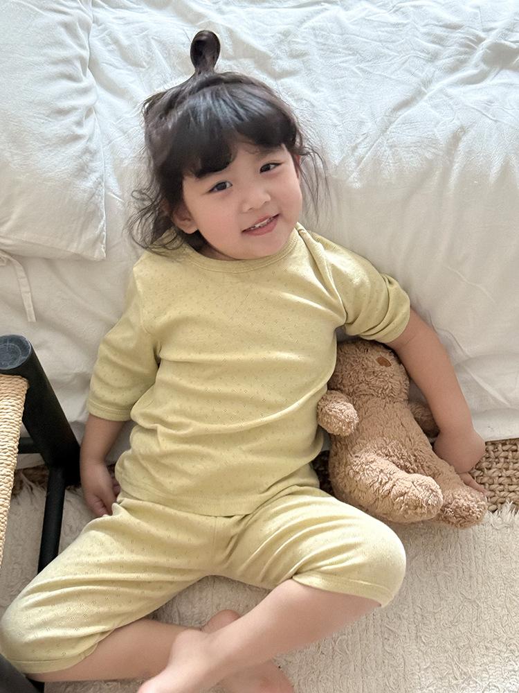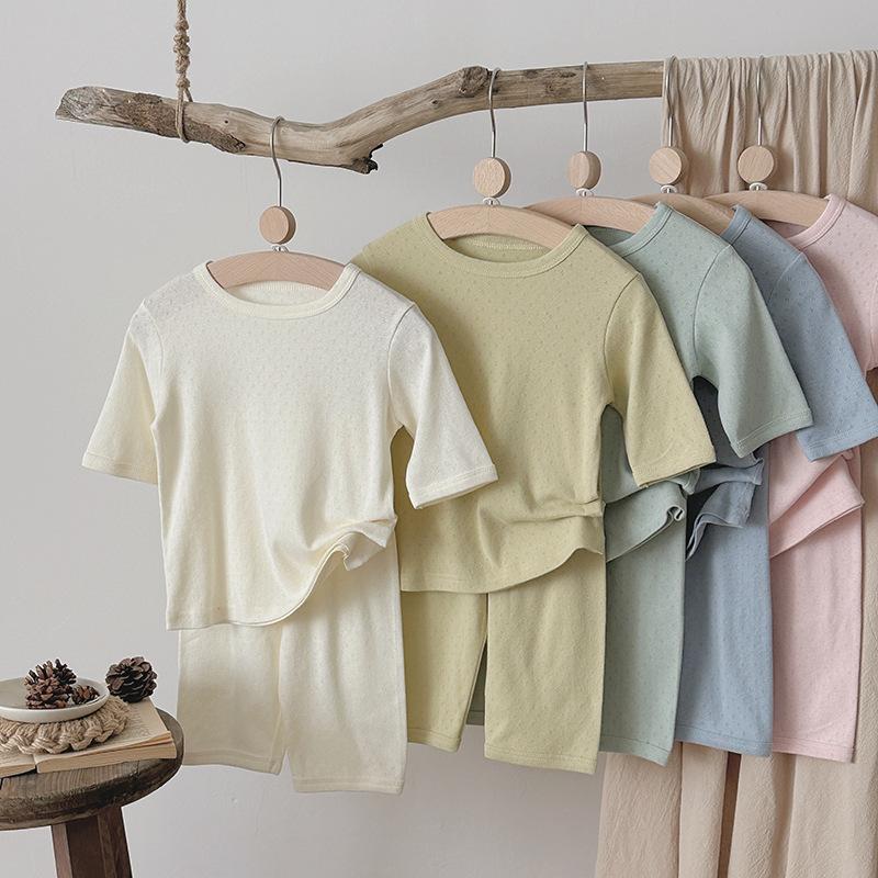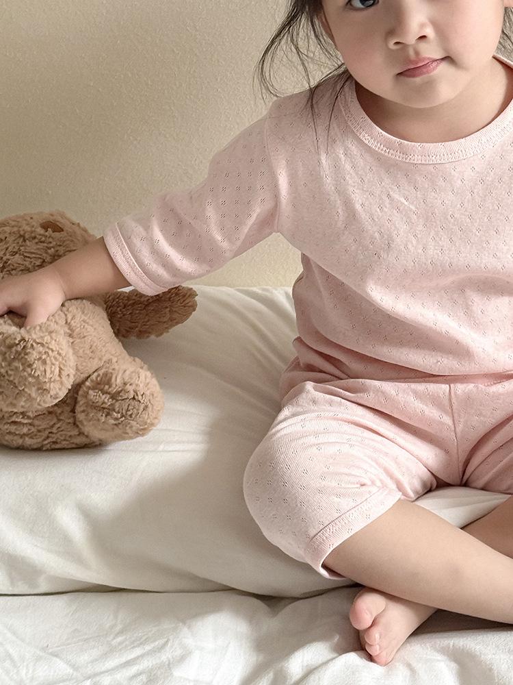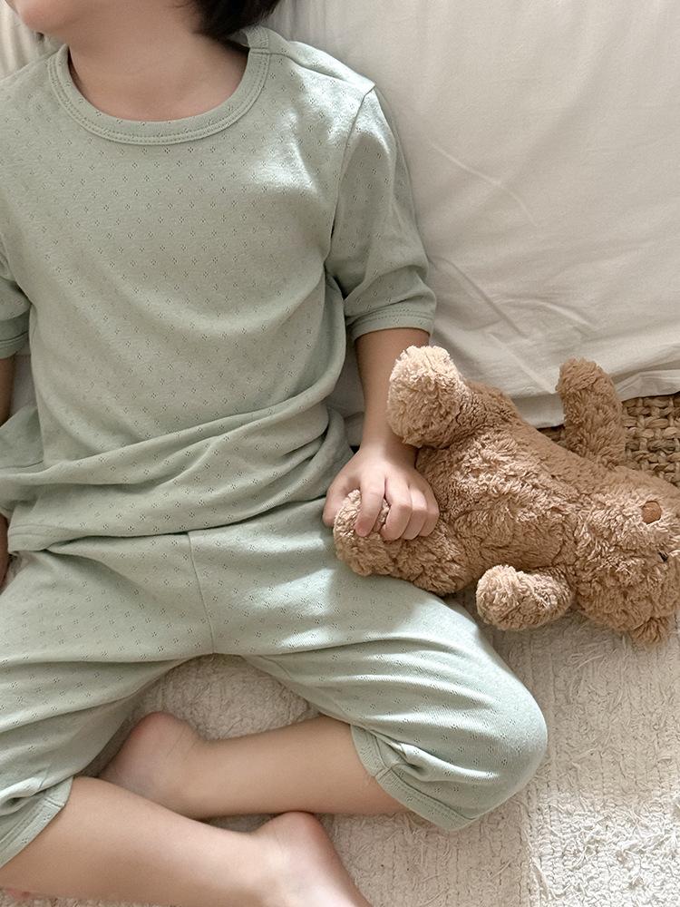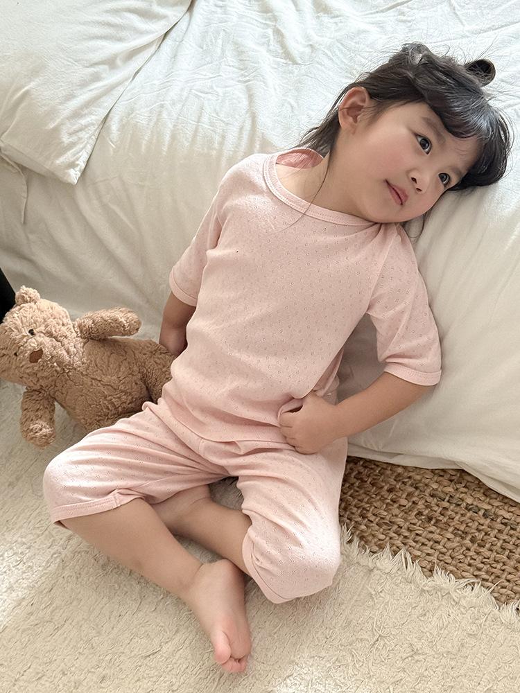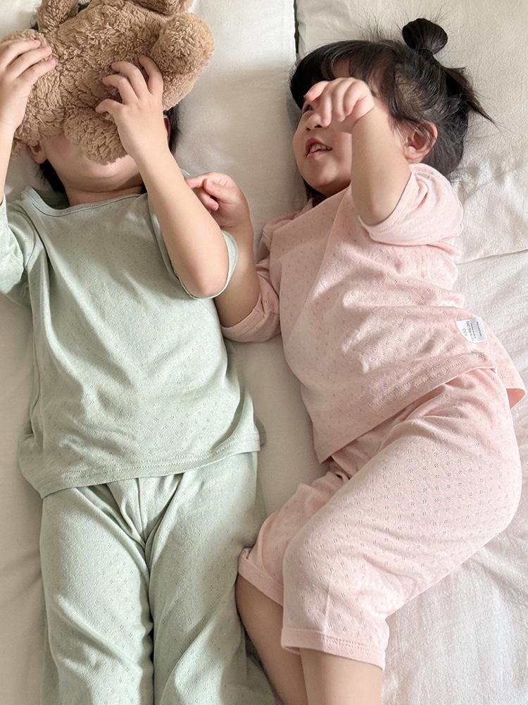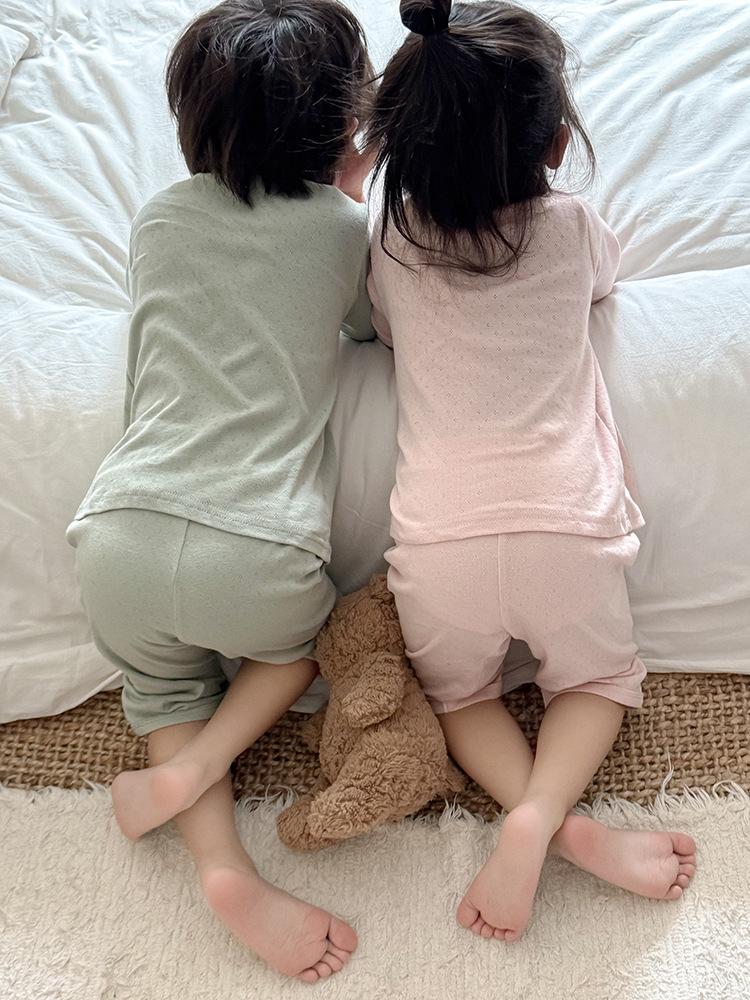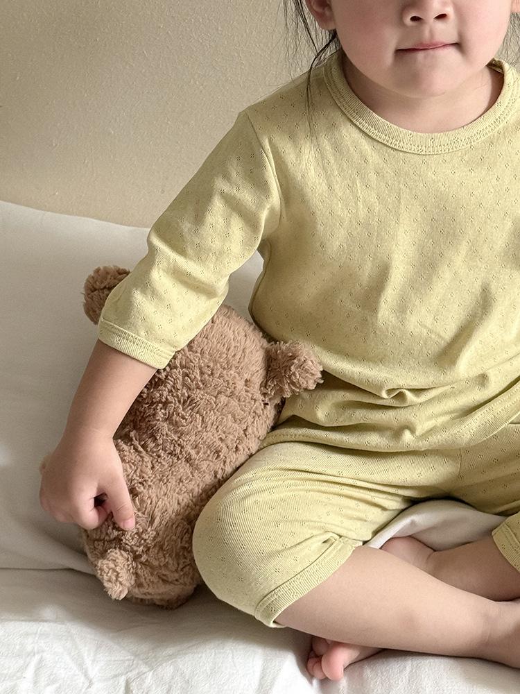 Pijamas para niños de algodón puro fino categoría A para niños y niñas, traje de verano de siete mangas, ropa de bebé con aire acondicionado para el hogar, ropa de verano