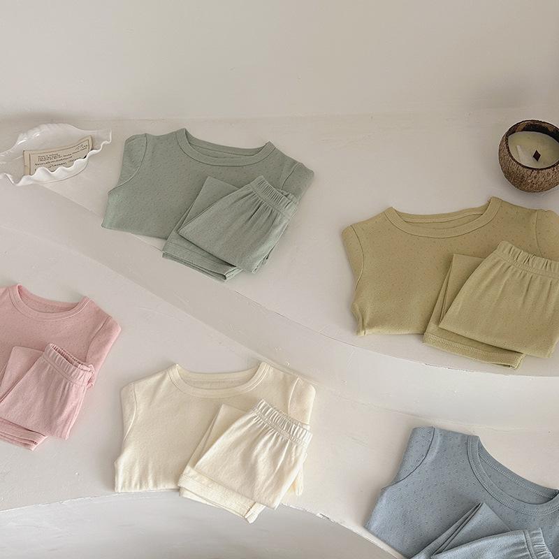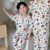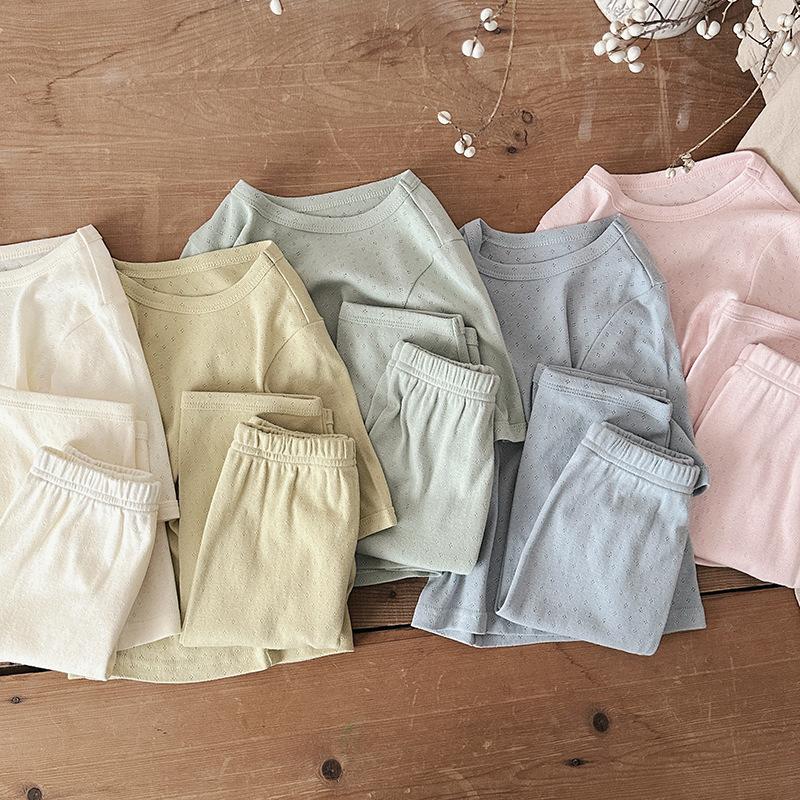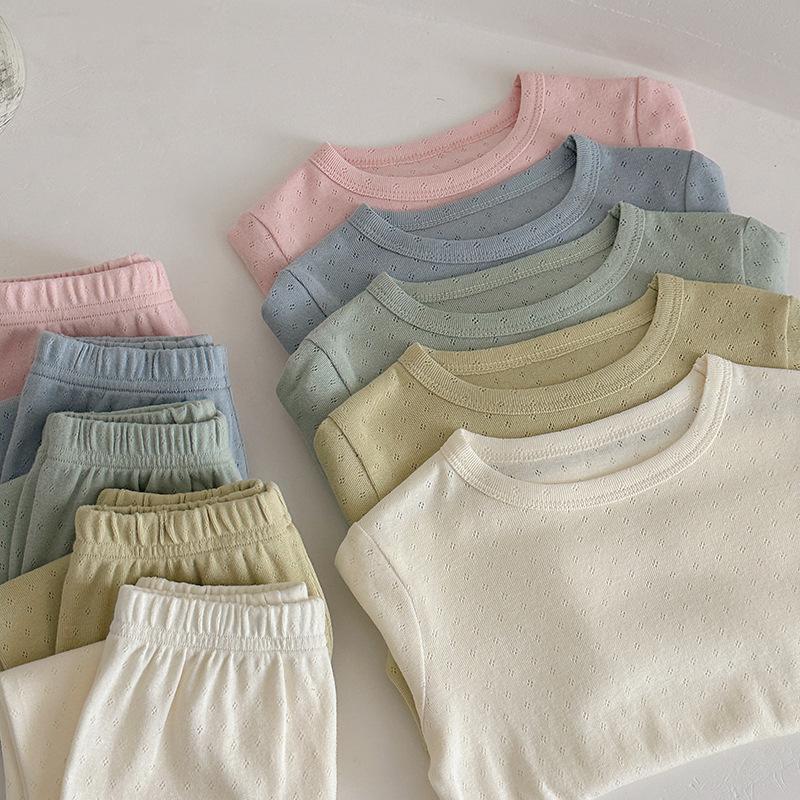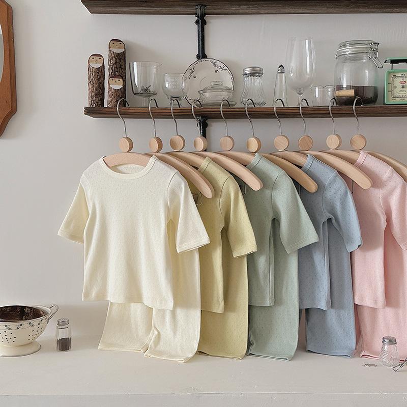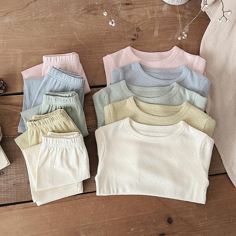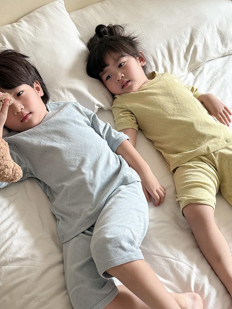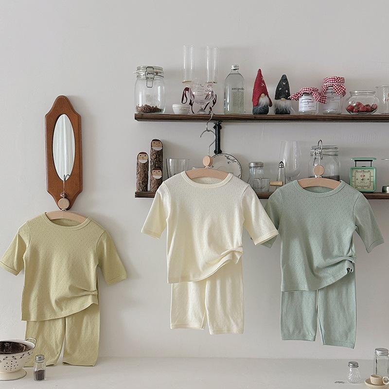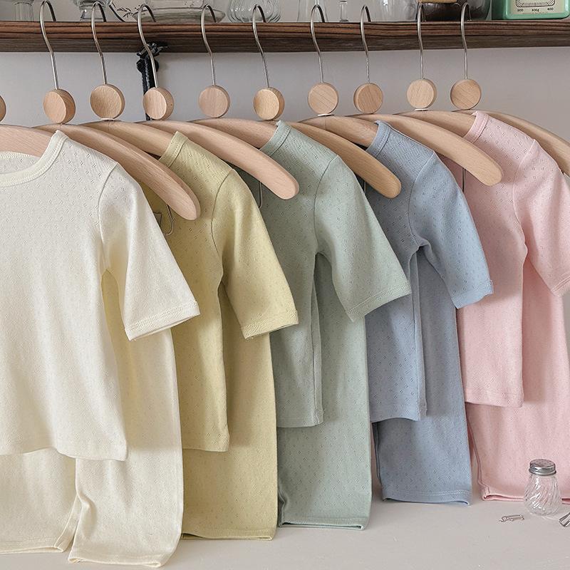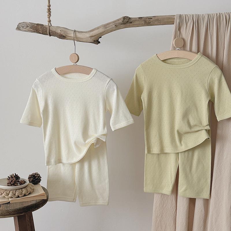 Pijamas para niños de algodón puro fino categoría A para niños y niñas, traje de verano de siete mangas, ropa de bebé con aire acondicionado para el hogar, ropa de verano