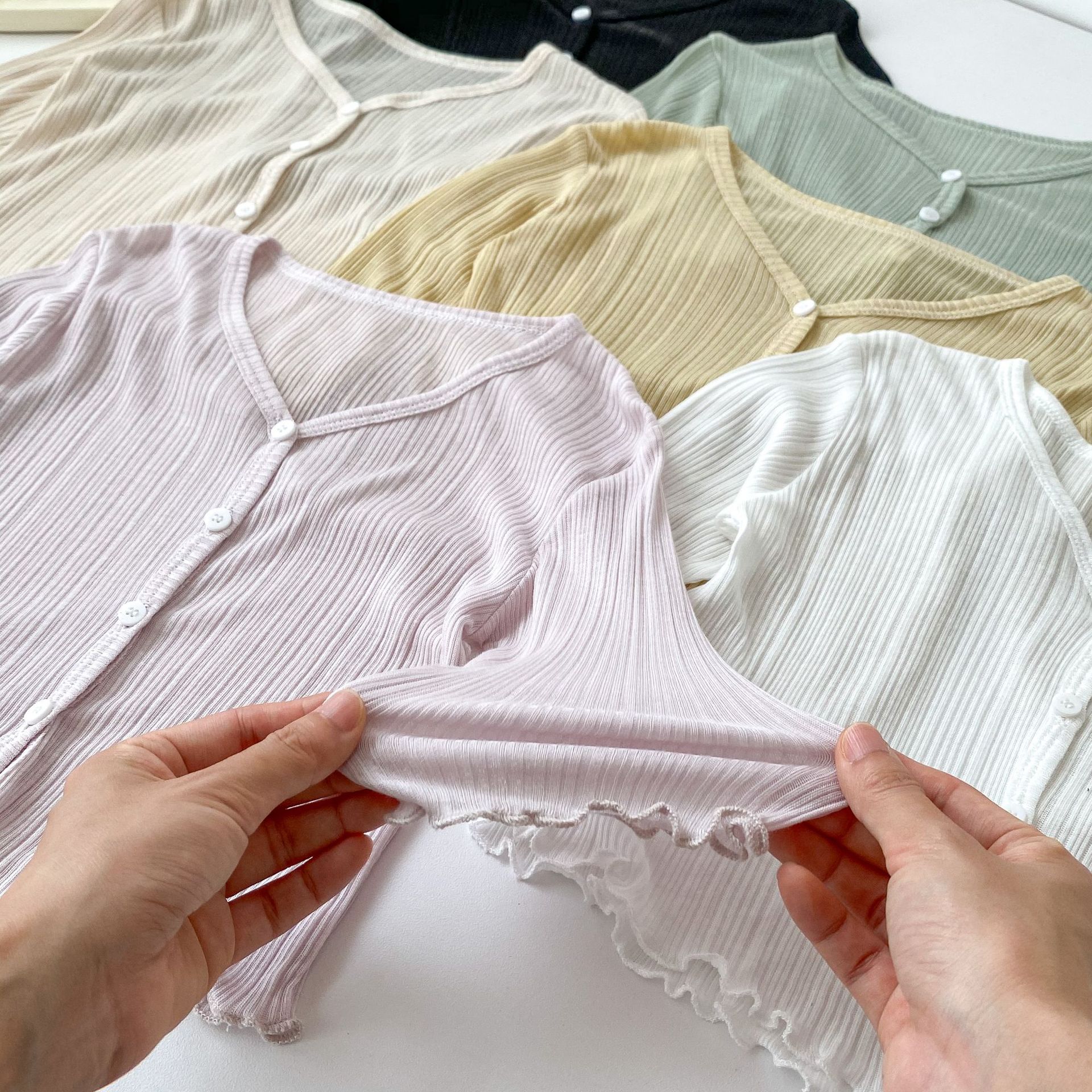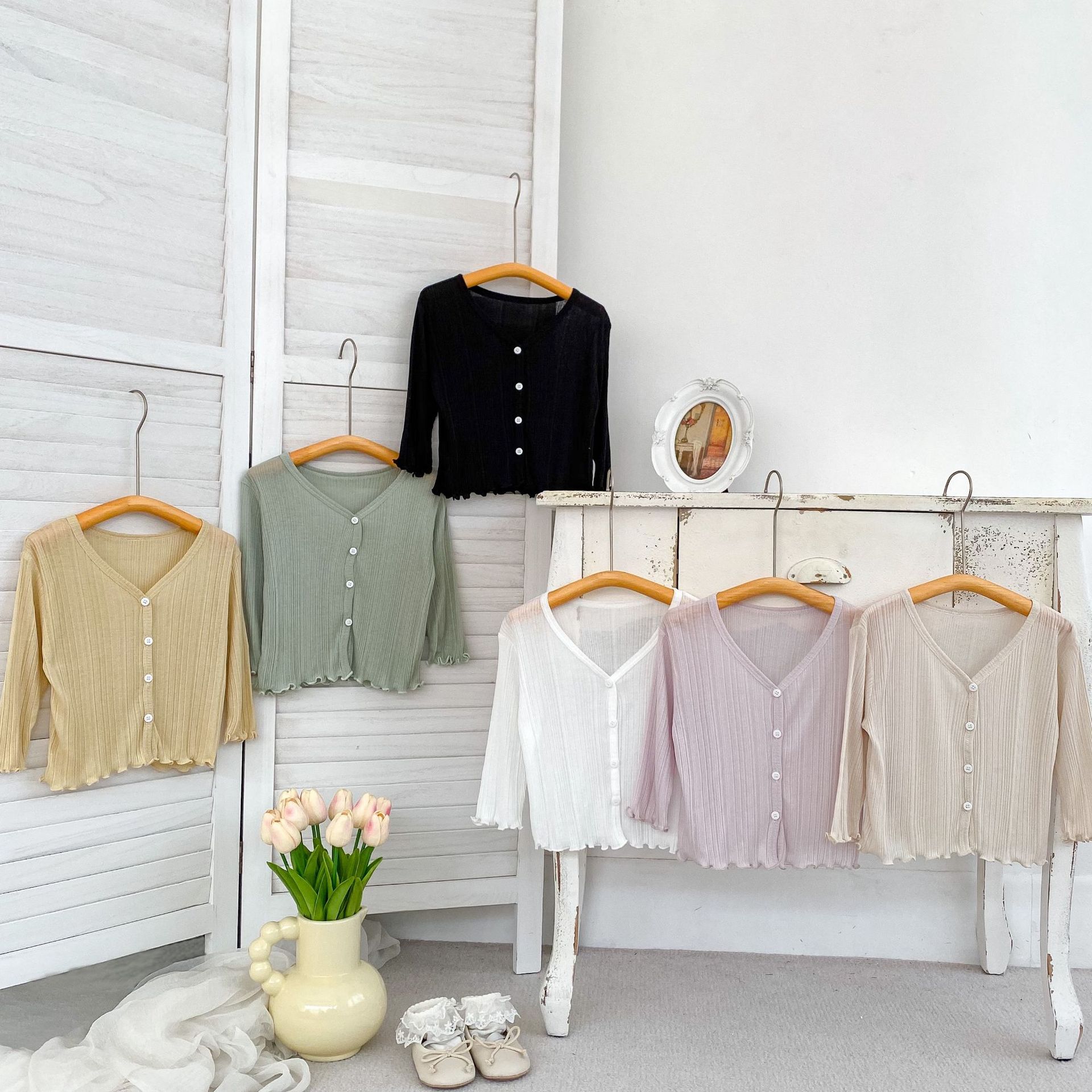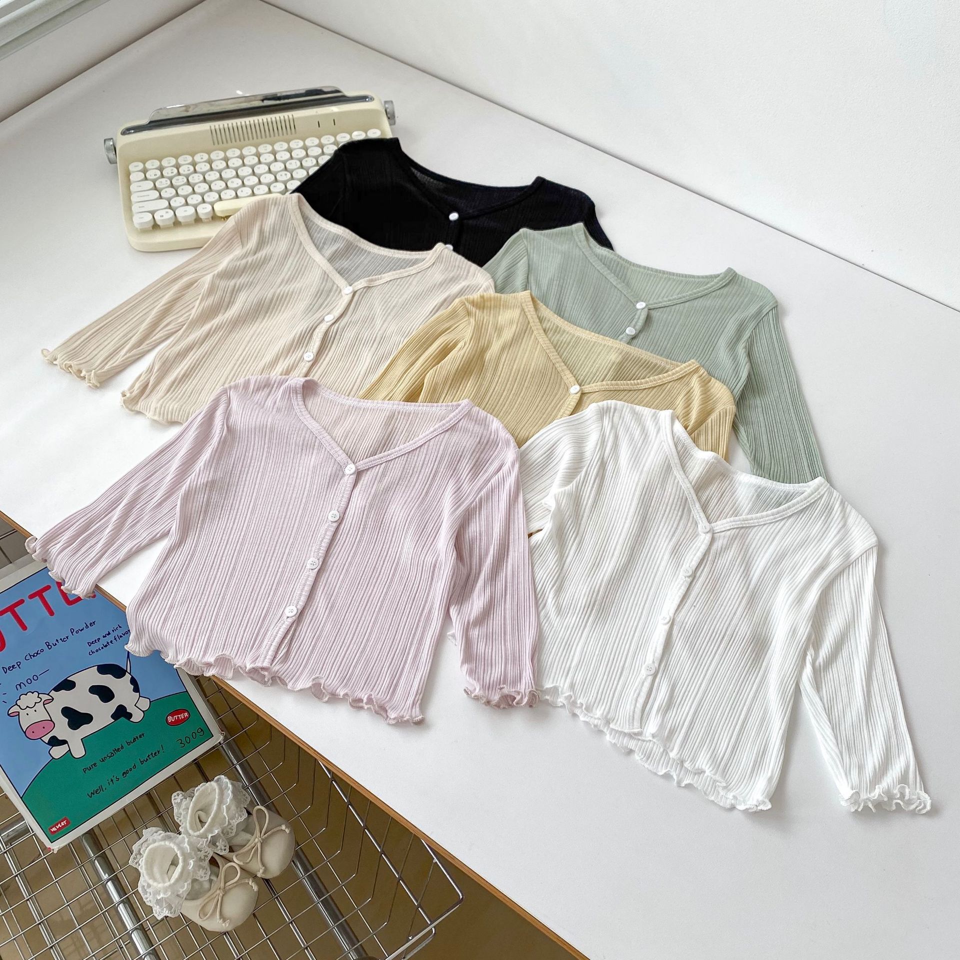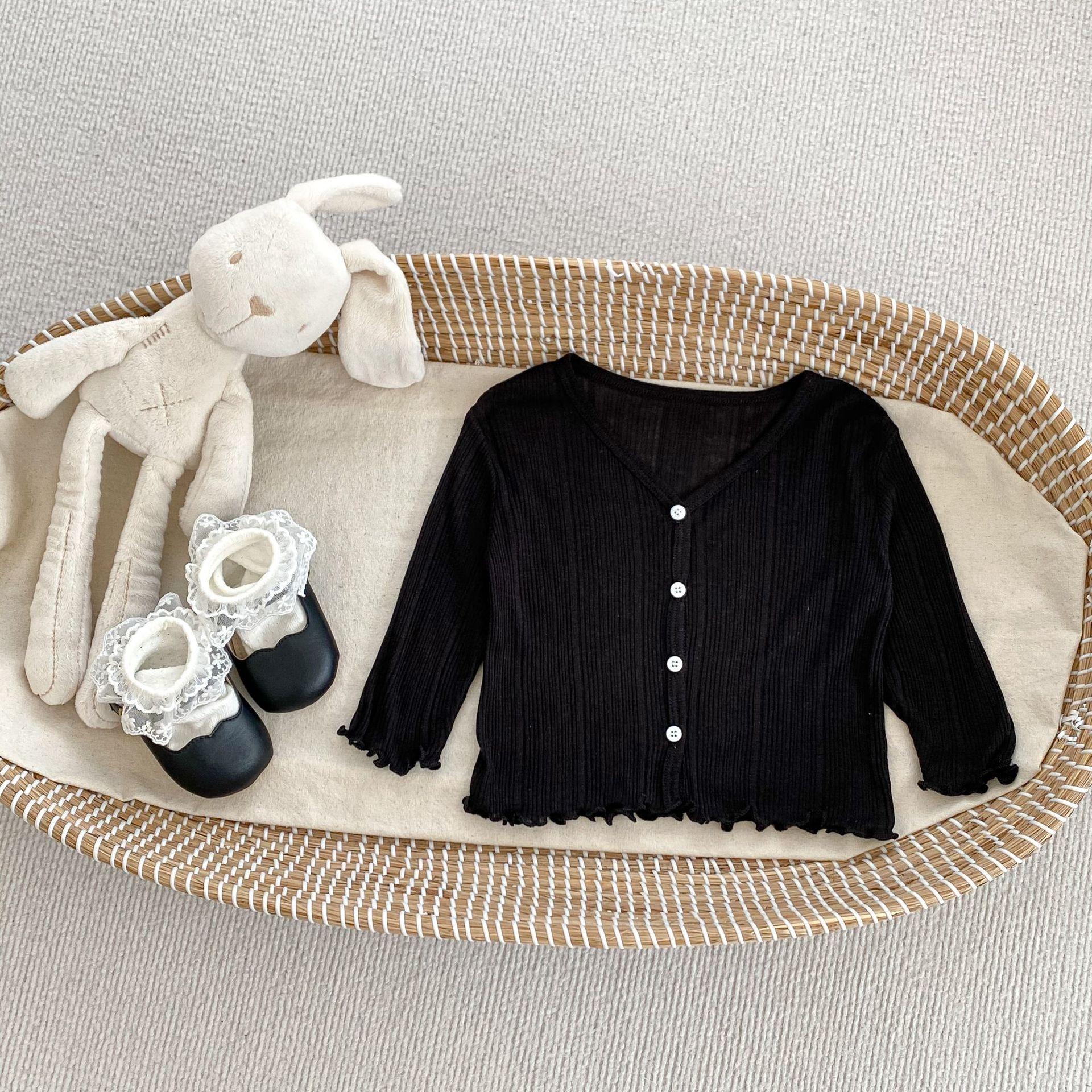 2025 Ropa Nueva para Niñas con Protección Solar Color Sólido Ligera Transpirable Ropa Acondicionada para el Aire Chaqueta Cárdigan de Verano con Volantes para Bebé Niña