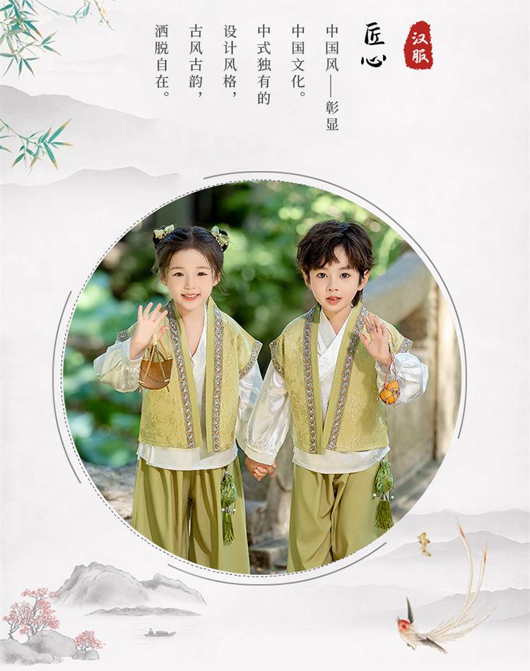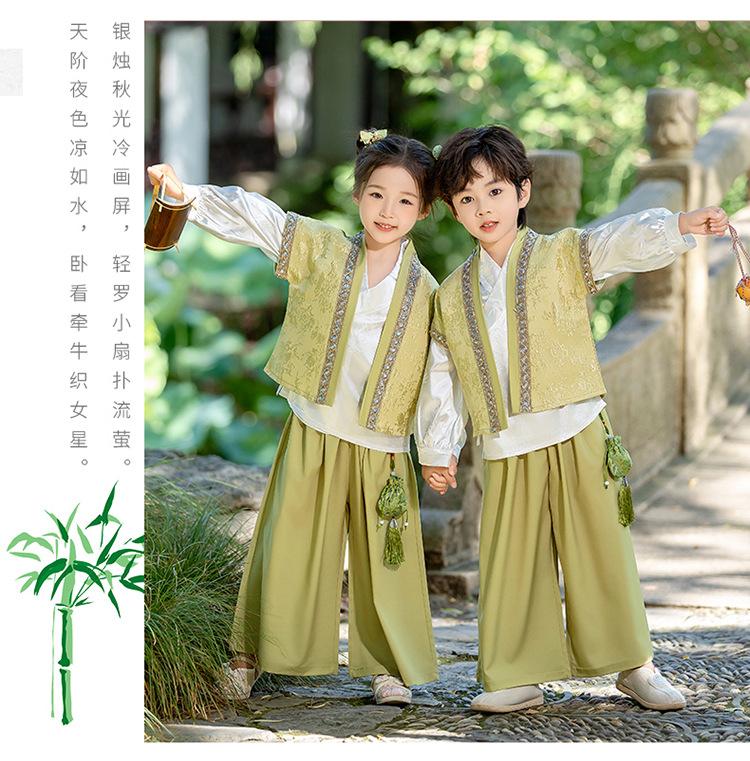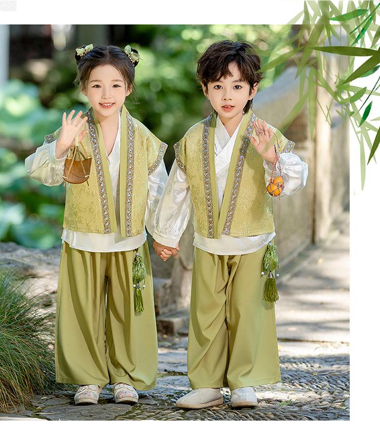 Ropa de Jardín de Niños Ropa de Actuación Estilo Chino Ropa de Hermana y Hermano Hanfu Ropa de Baile Chun Mountain Ropa de Actuación para Coro Infantil