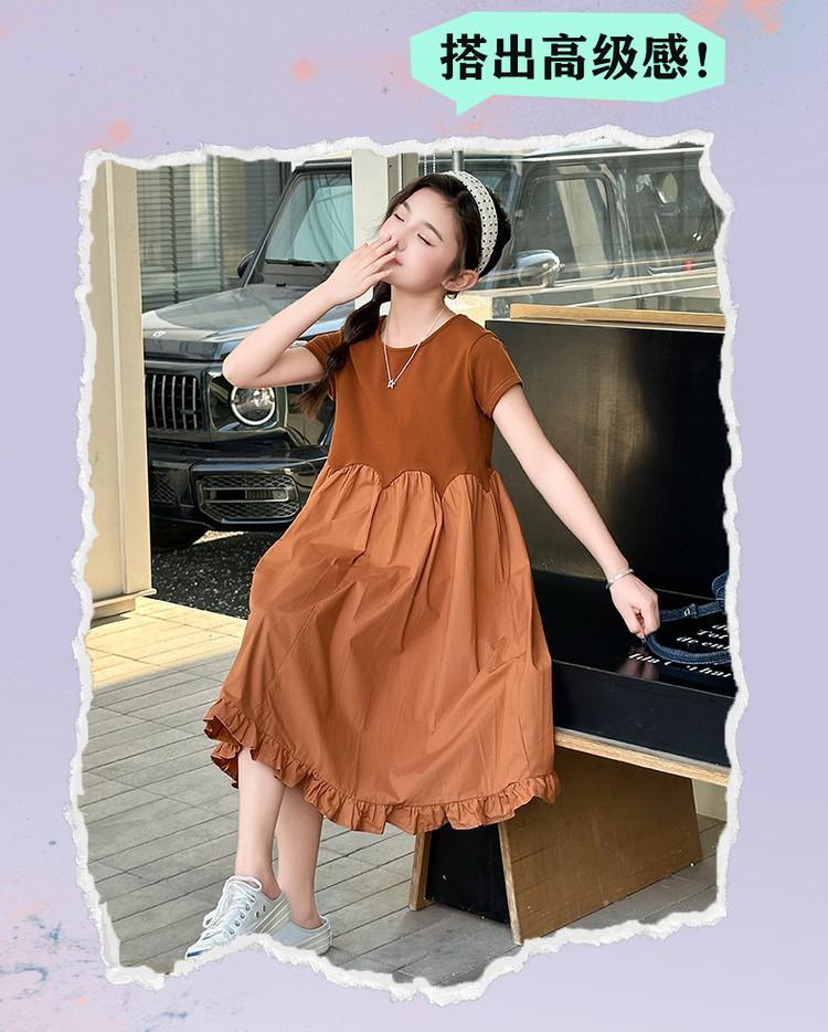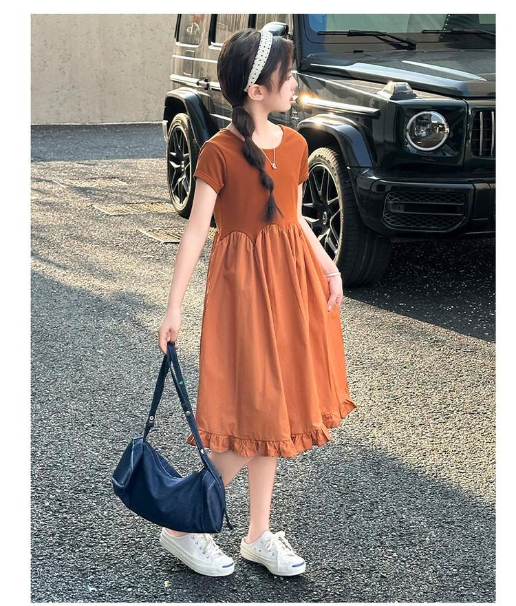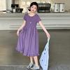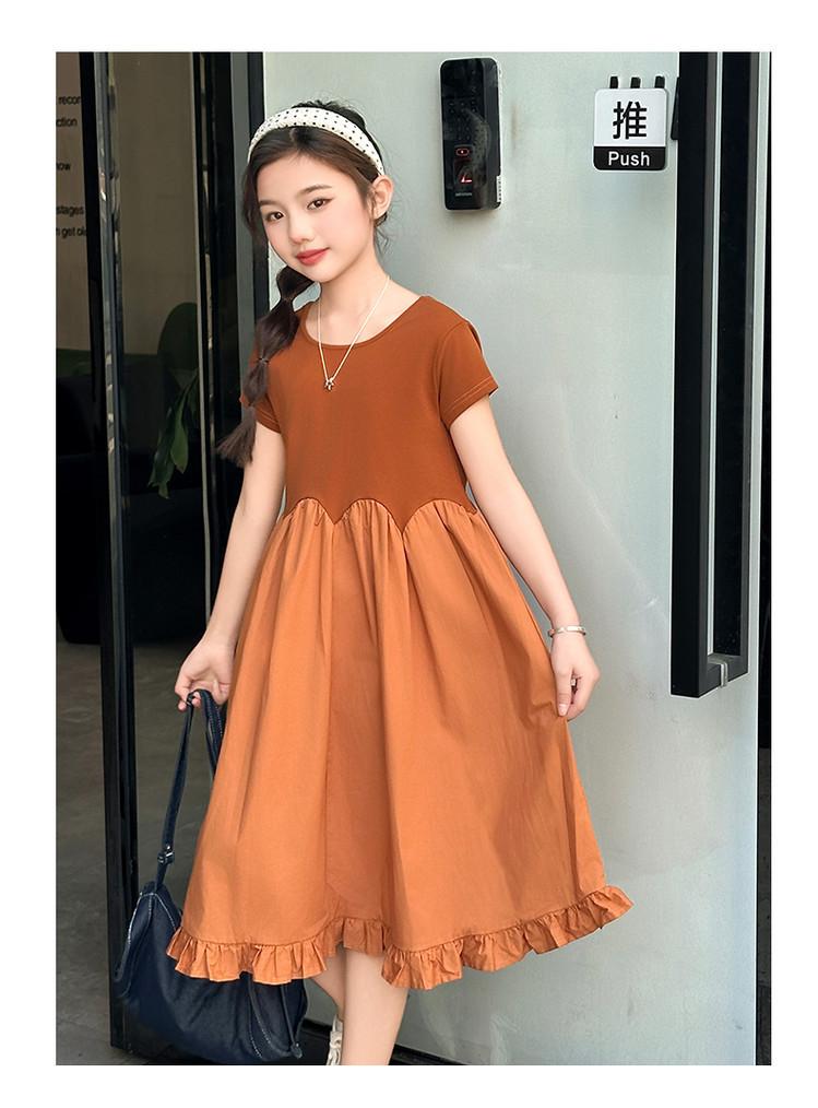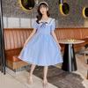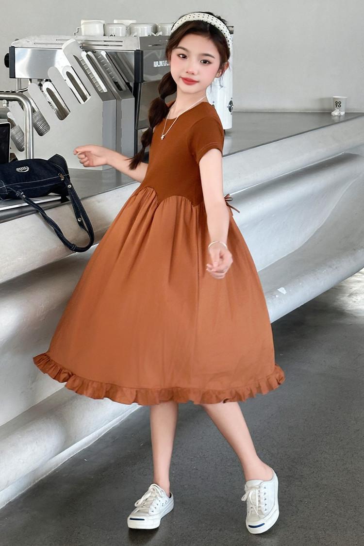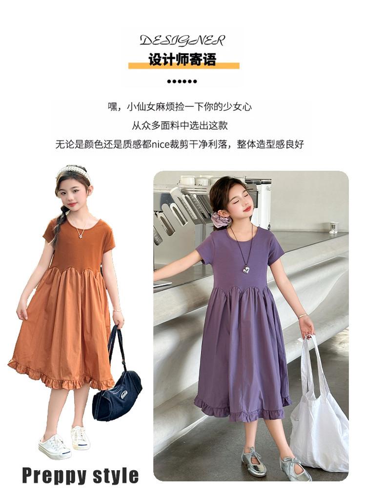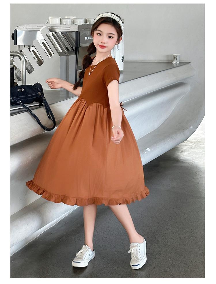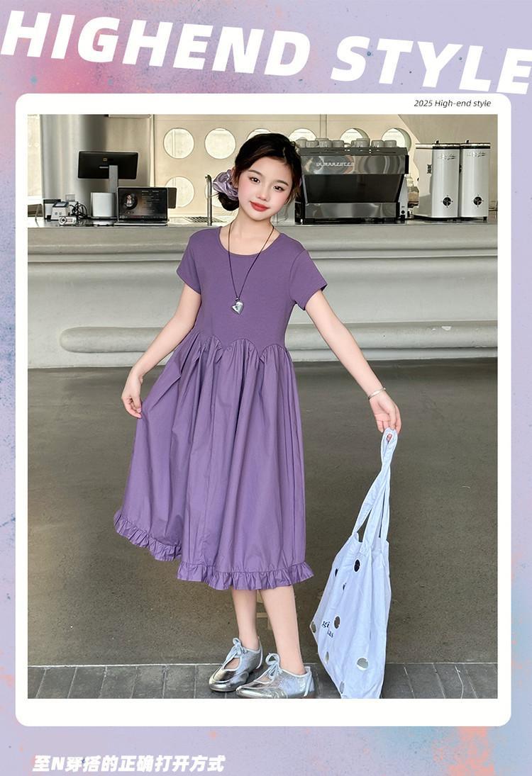 Vestido de manga corta para niña 2025, estilo occidental, con costuras, dulce princesa, falda de pétalos de encaje estilo coreano de verano para niña