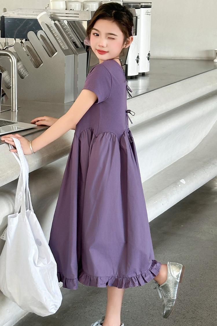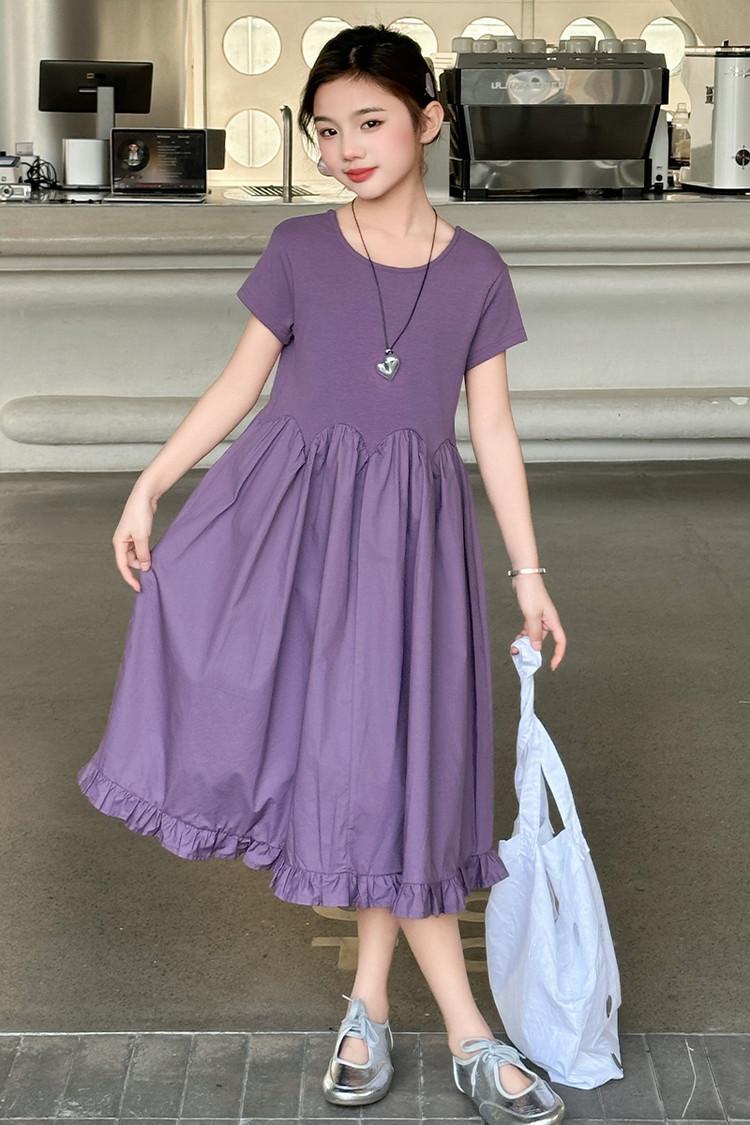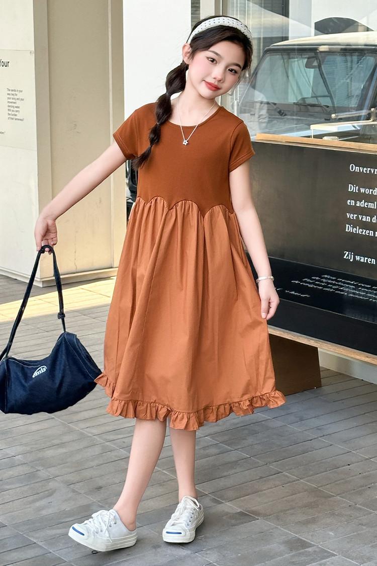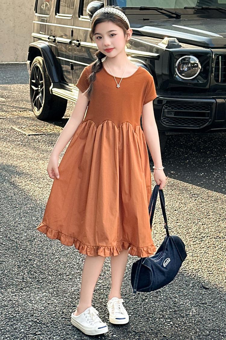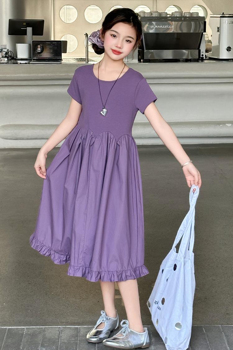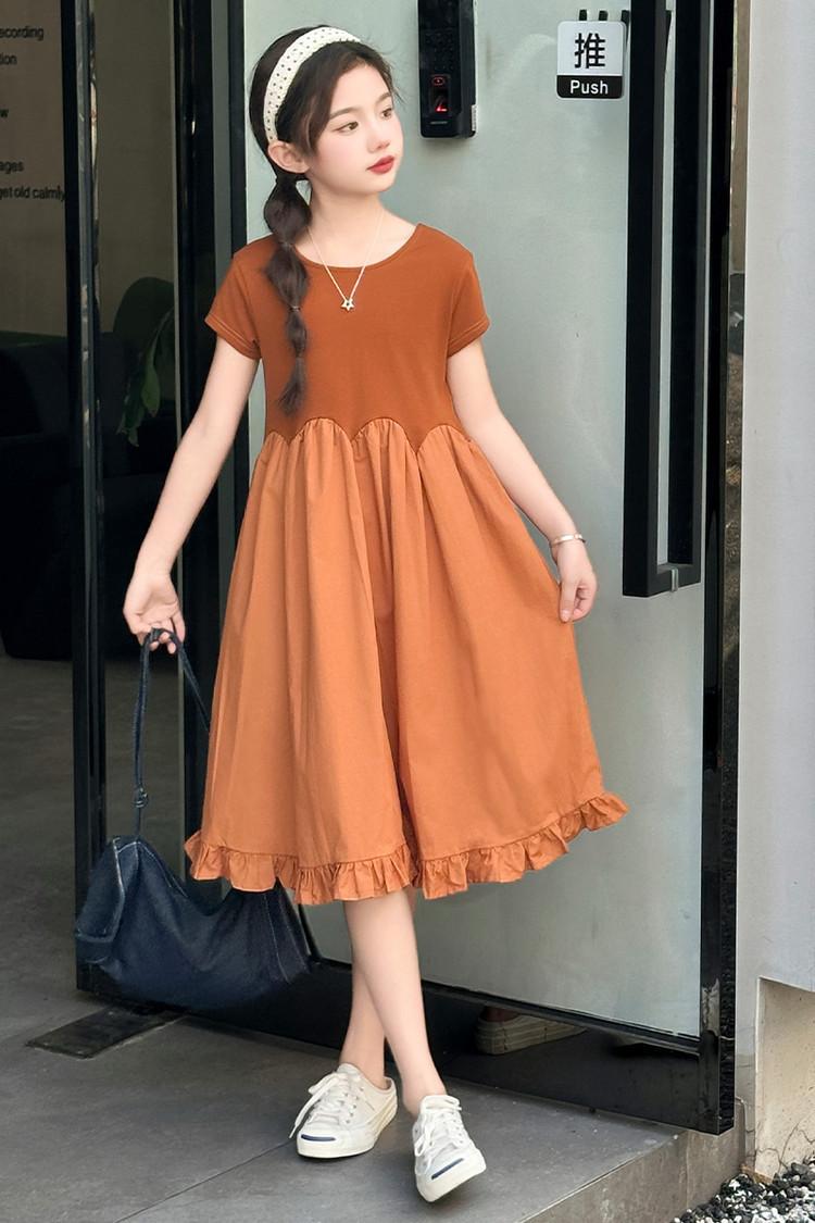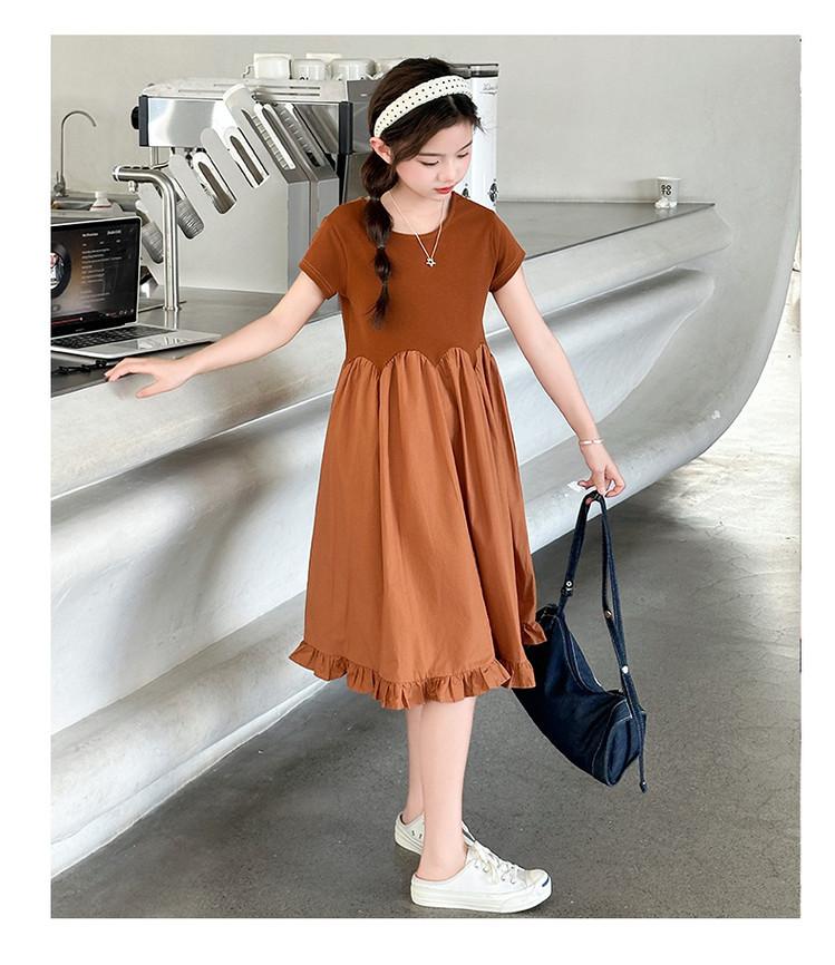 Vestido de manga corta para niña 2025, estilo occidental, con costuras, dulce princesa, falda de pétalos de encaje estilo coreano de verano para niña