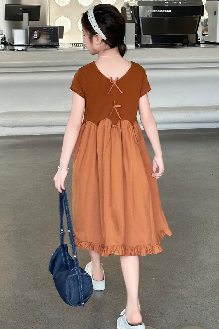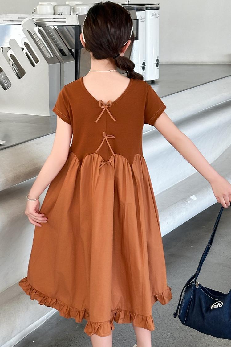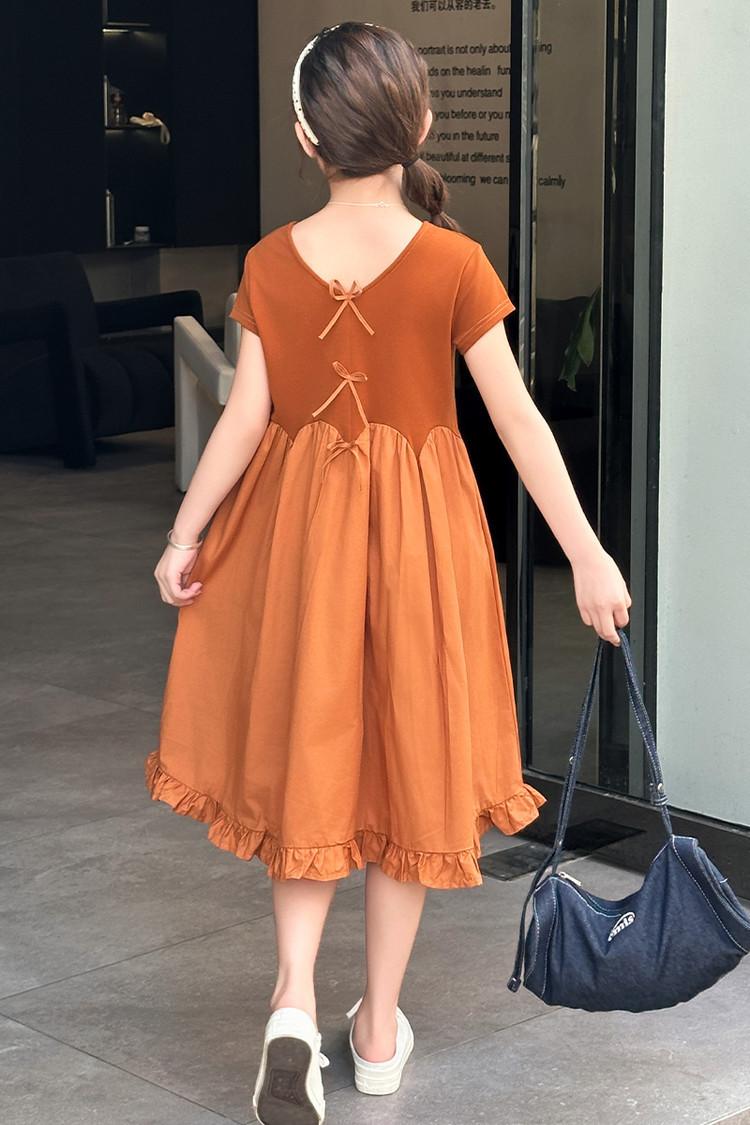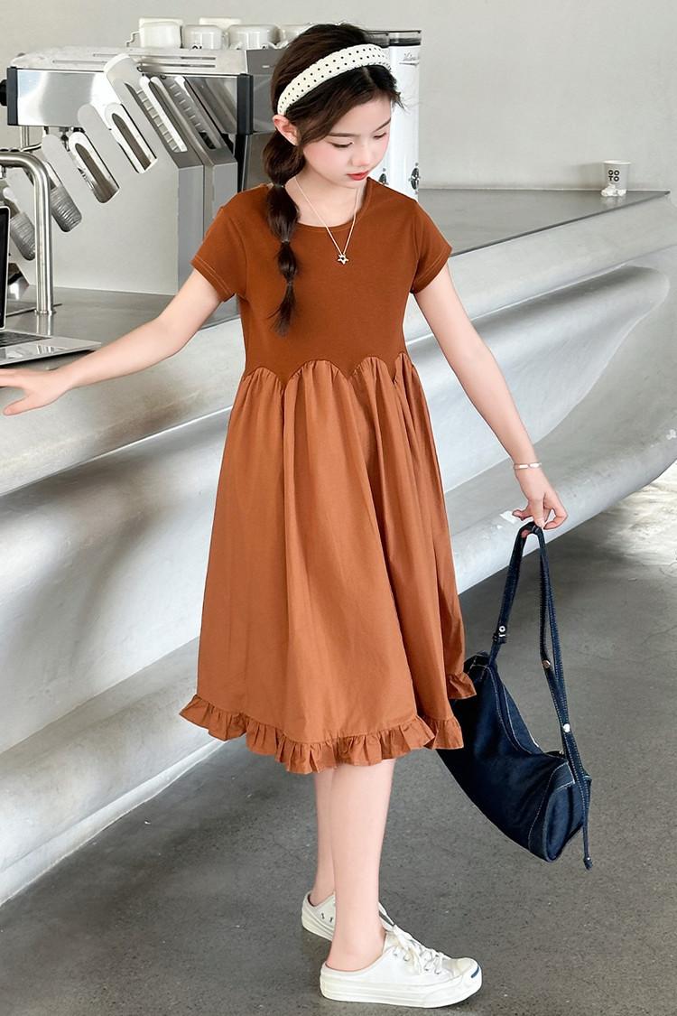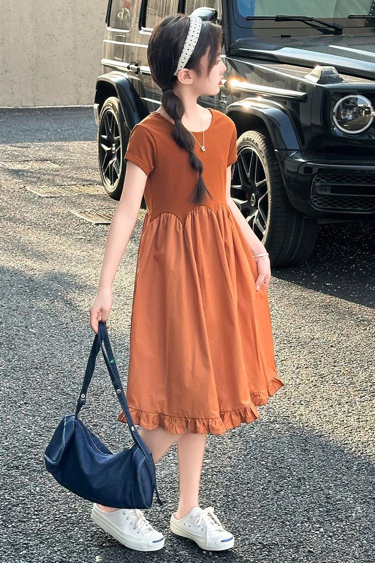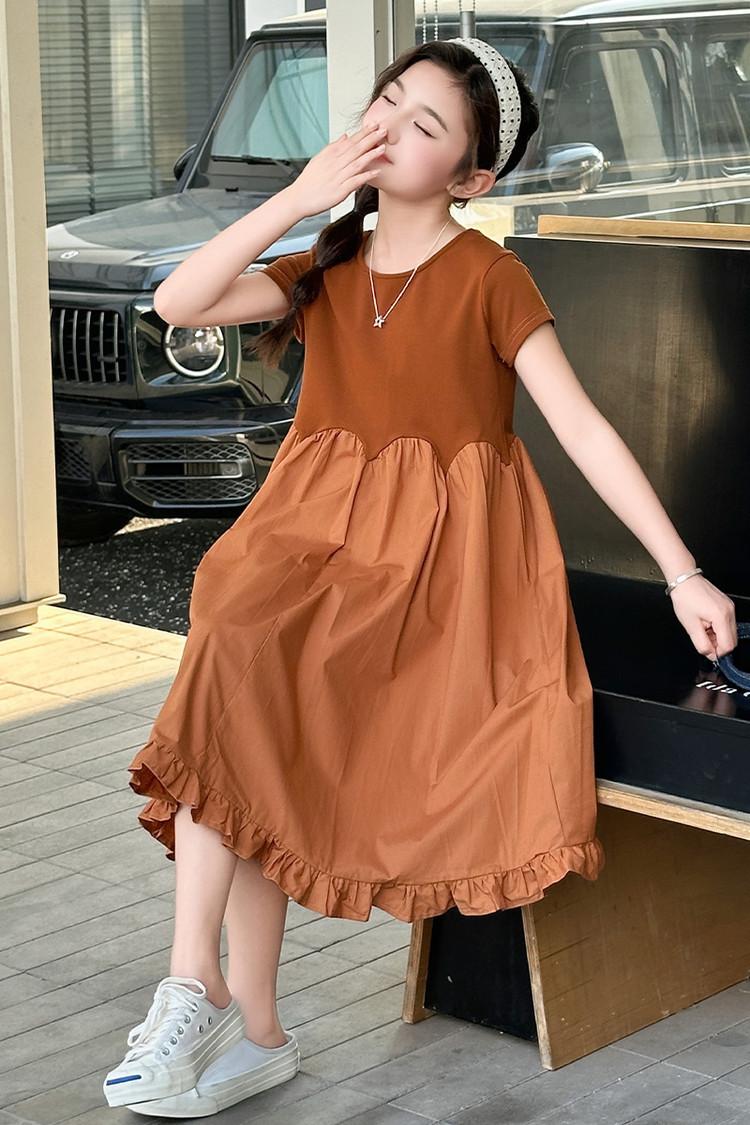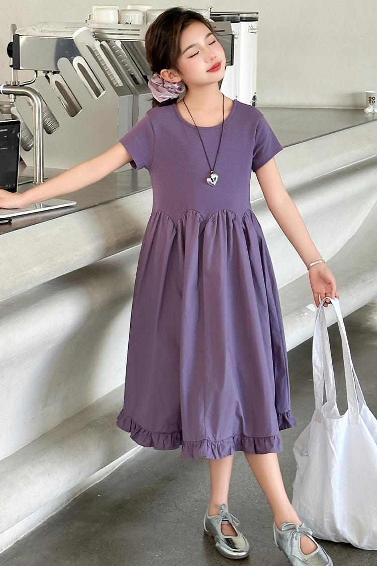 Vestido de manga corta para niña 2025, estilo occidental, con costuras, dulce princesa, falda de pétalos de encaje estilo coreano de verano para niña