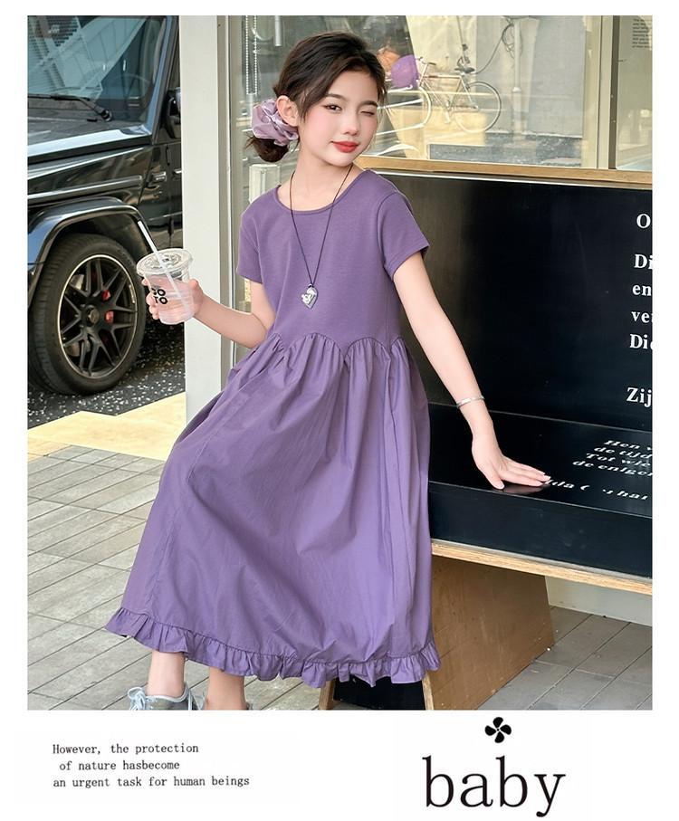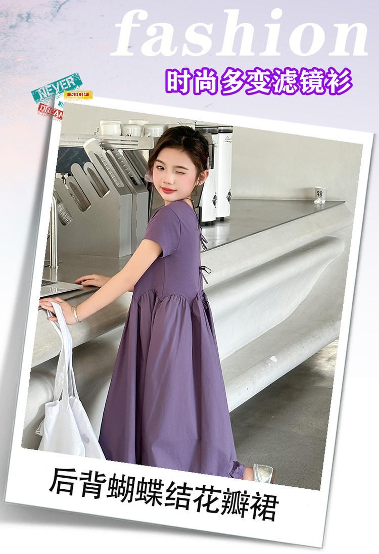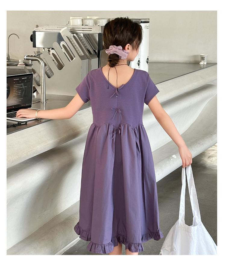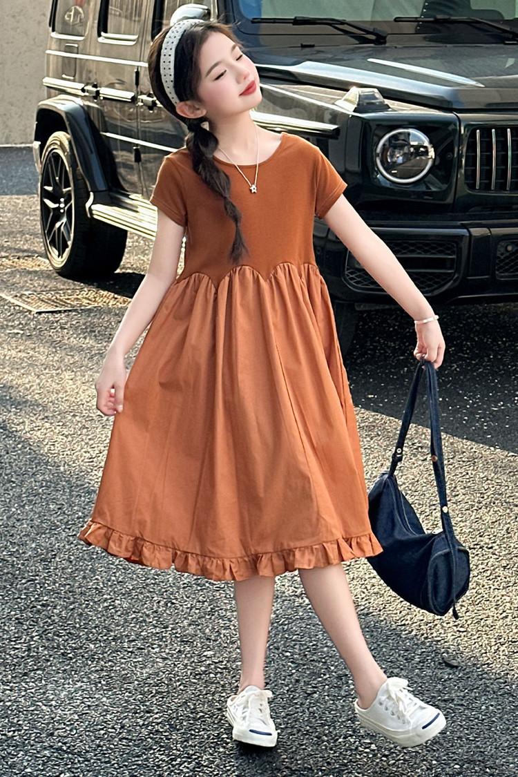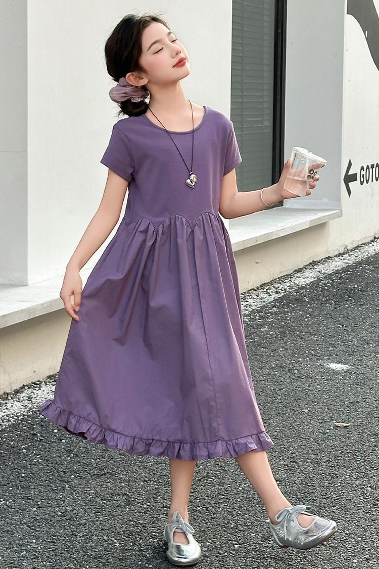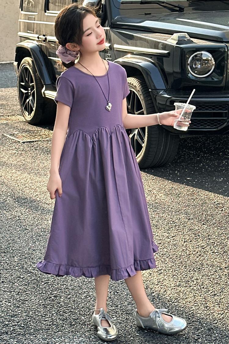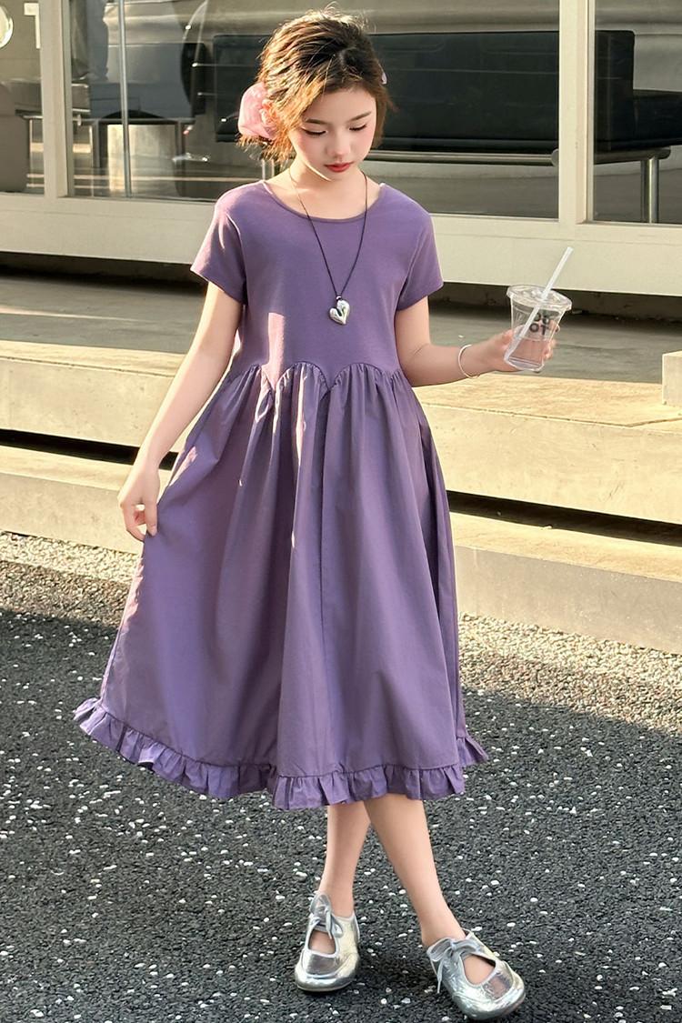 Vestido de manga corta para niña 2025, estilo occidental, con costuras, dulce princesa, falda de pétalos de encaje estilo coreano de verano para niña