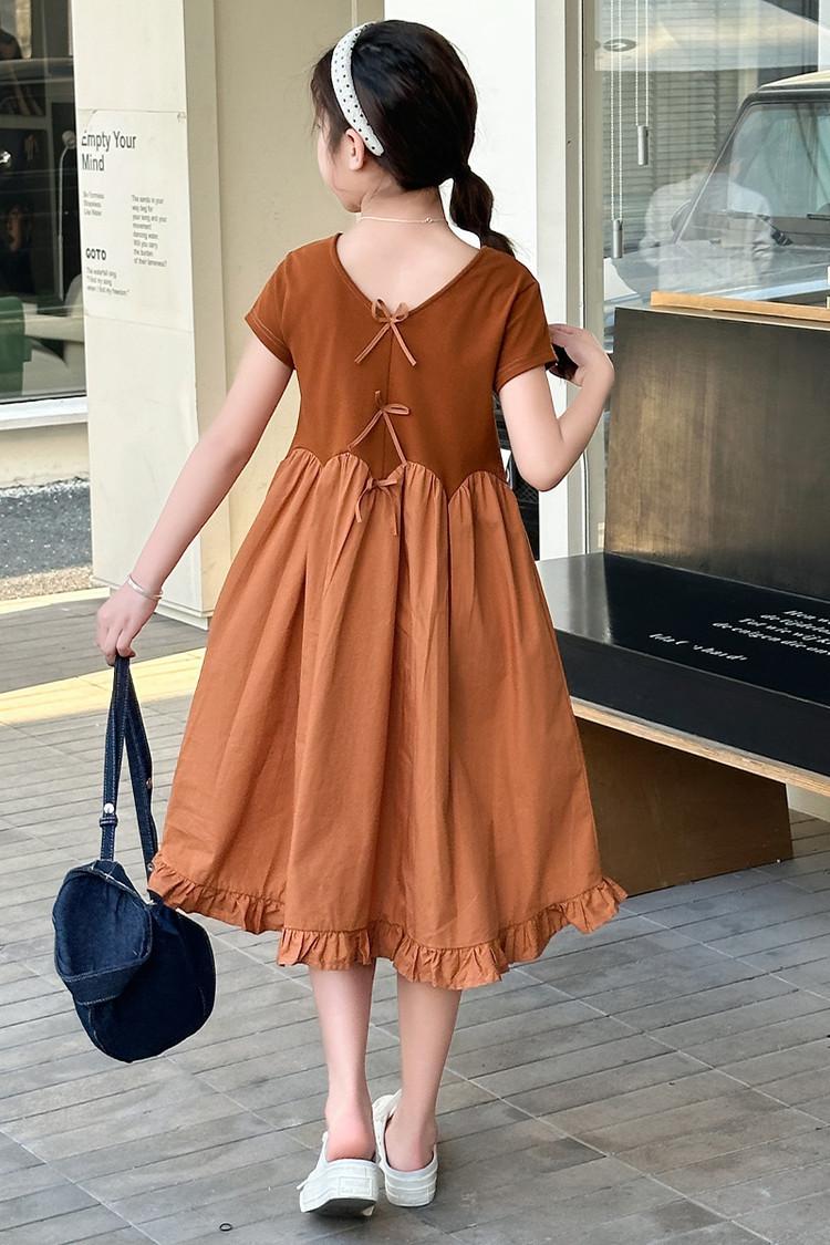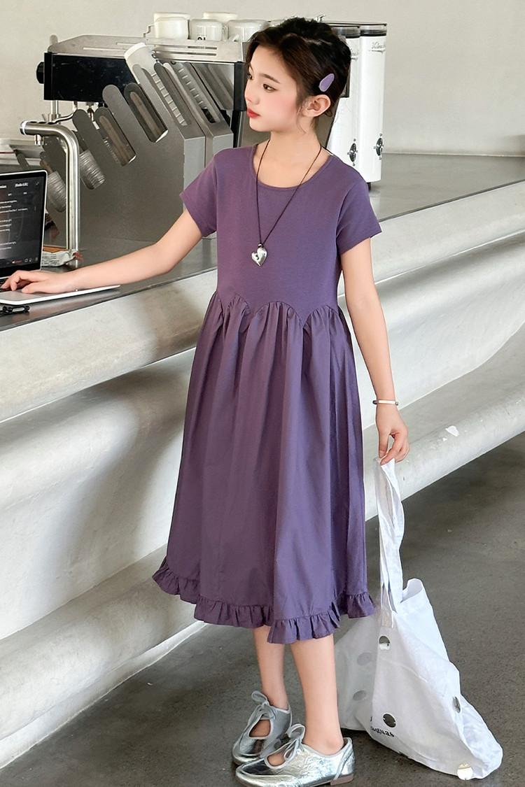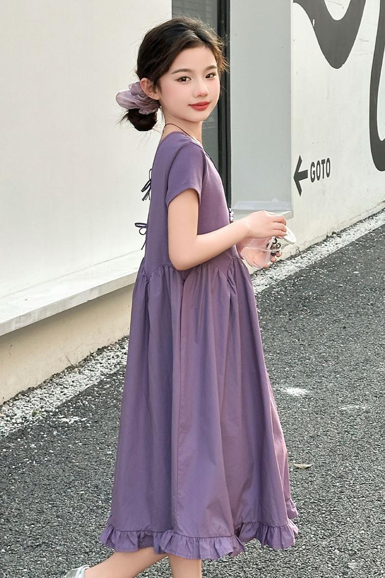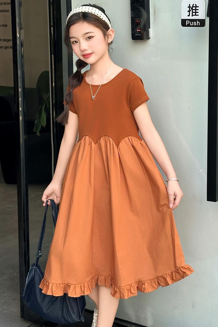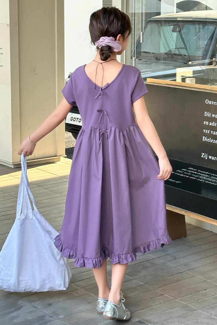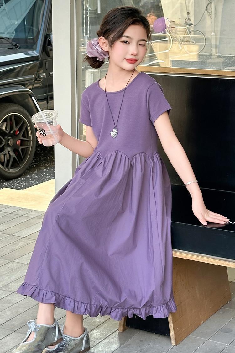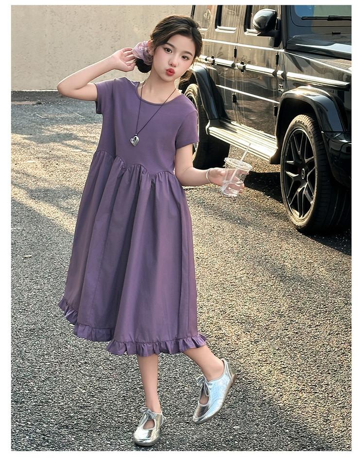 Vestido de manga corta para niña 2025, estilo occidental, con costuras, dulce princesa, falda de pétalos de encaje estilo coreano de verano para niña