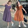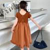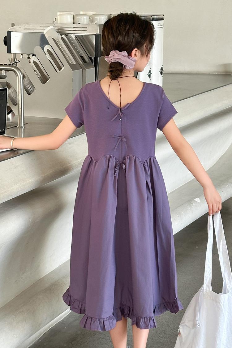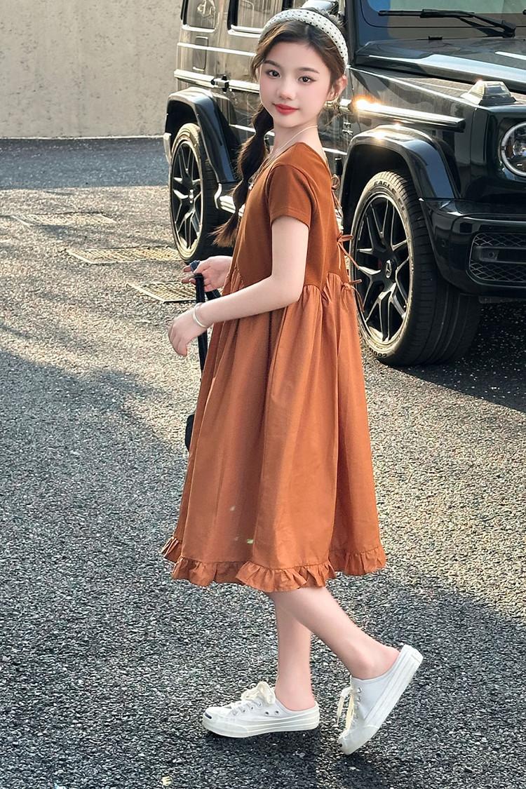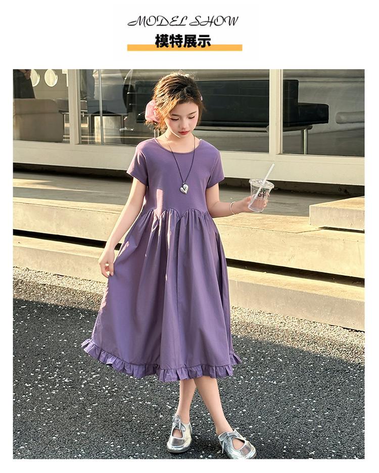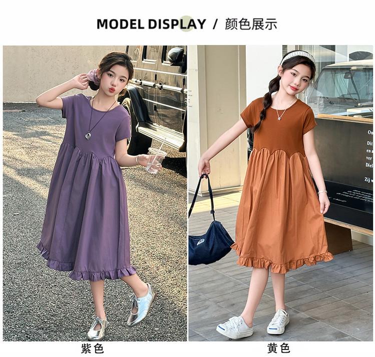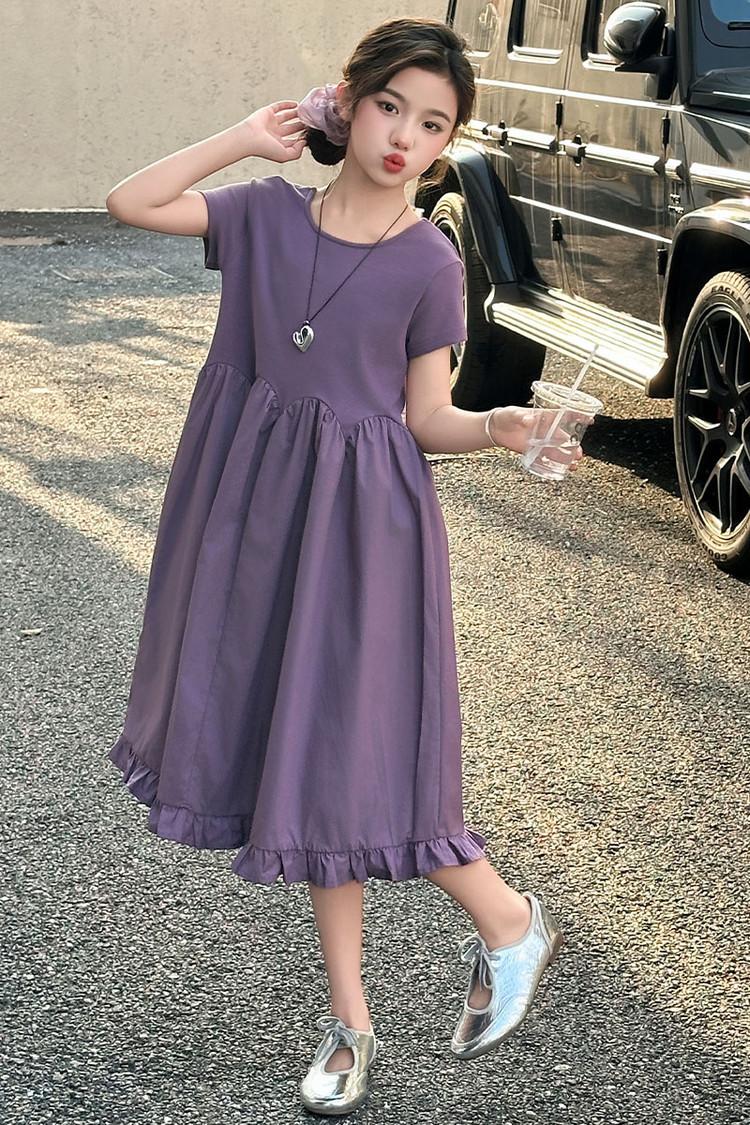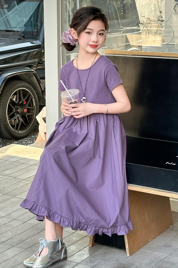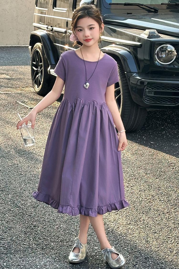 Vestido de manga corta para niña 2025, estilo occidental, con costuras, dulce princesa, falda de pétalos de encaje estilo coreano de verano para niña