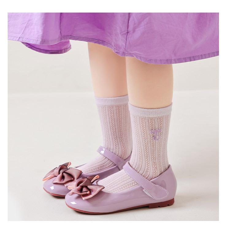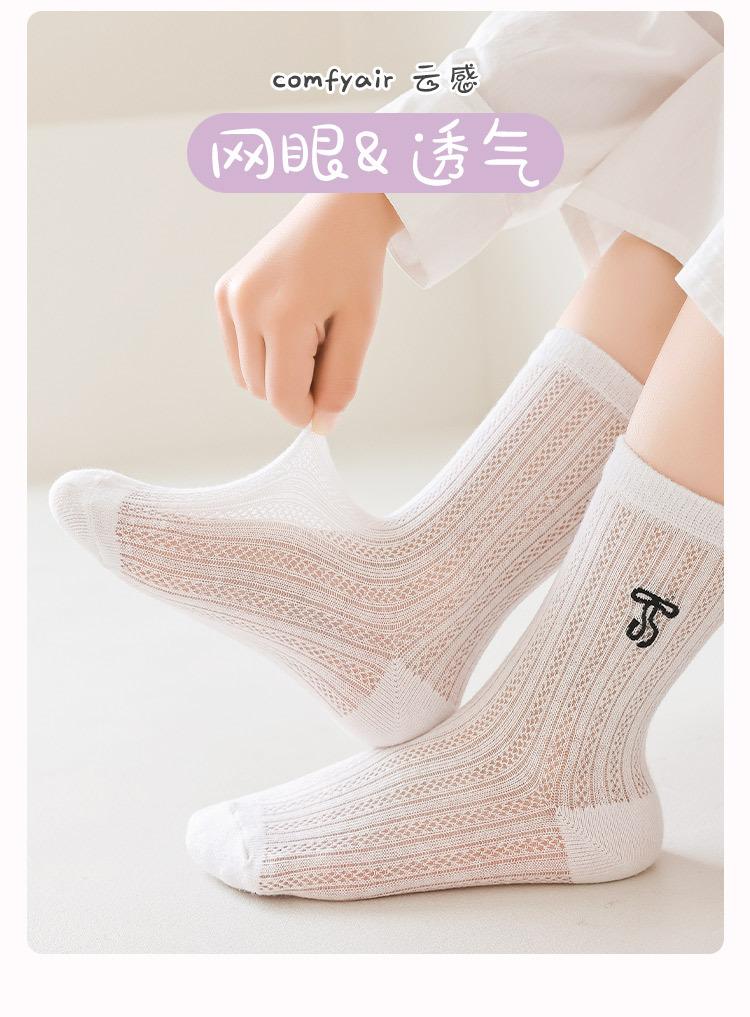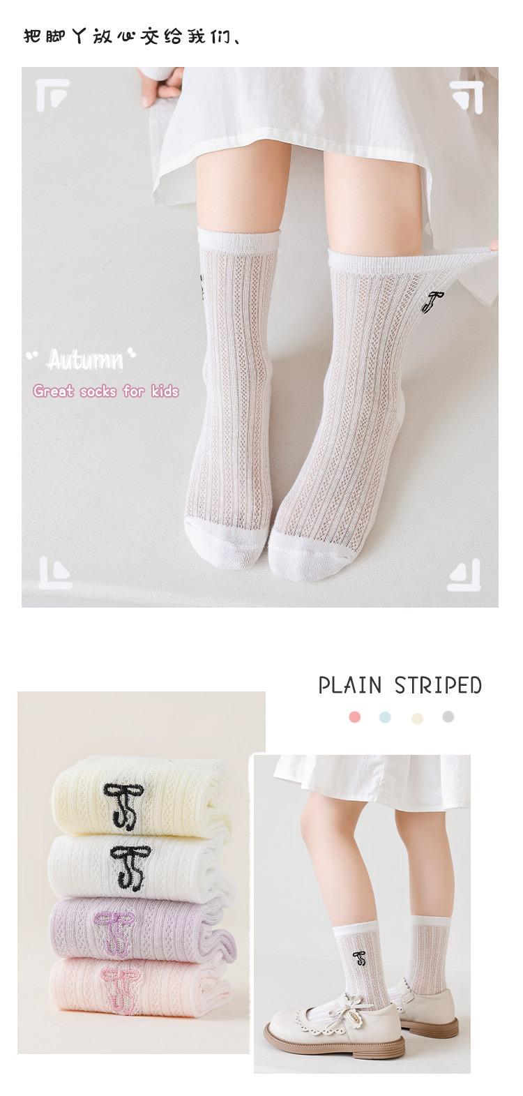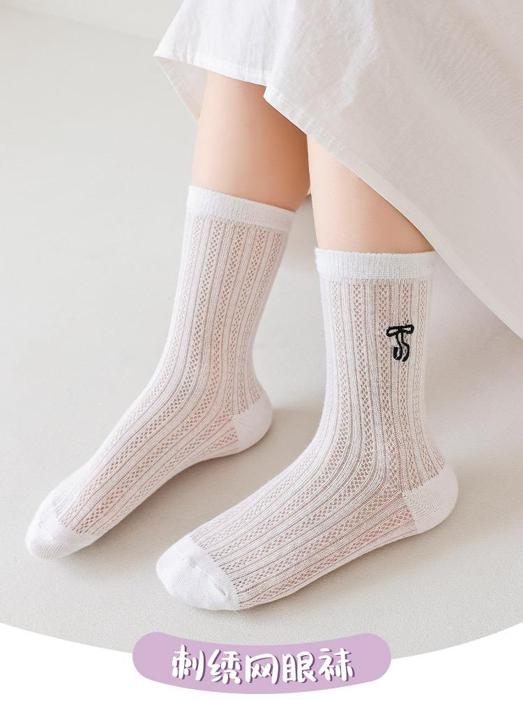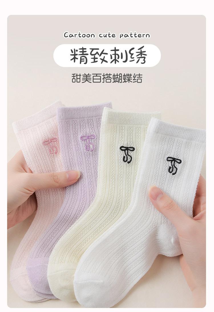 Calcetines para niños, primavera y verano, finos, de algodón, de clase A, con lazo bordado de dibujos animados, de malla, transpirables, largos, para estudiantes