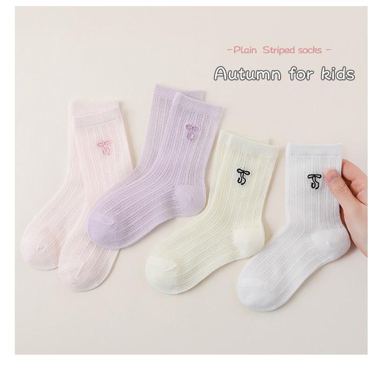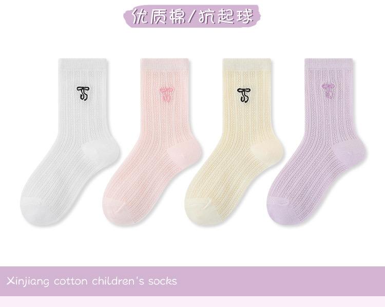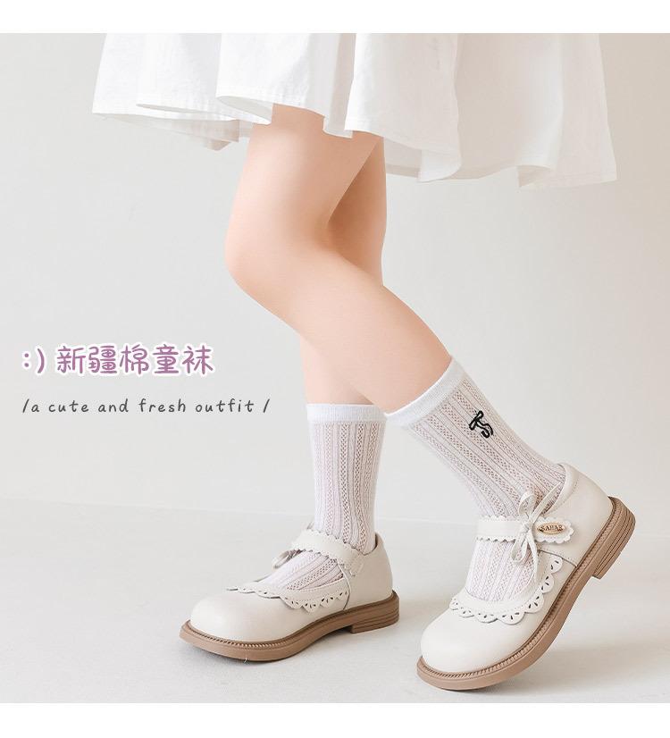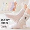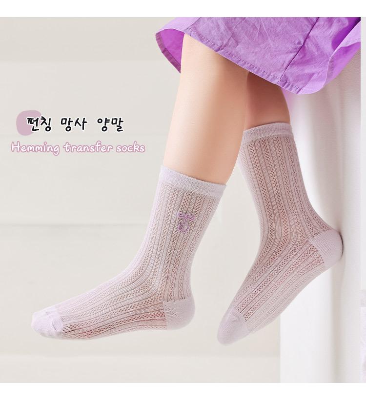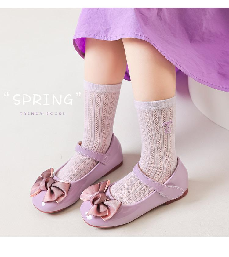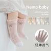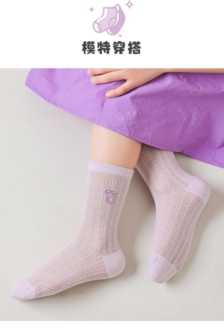 Calcetines para niños, primavera y verano, finos, de algodón, de clase A, con lazo bordado de dibujos animados, de malla, transpirables, largos, para estudiantes