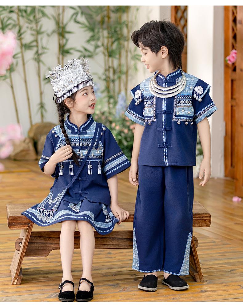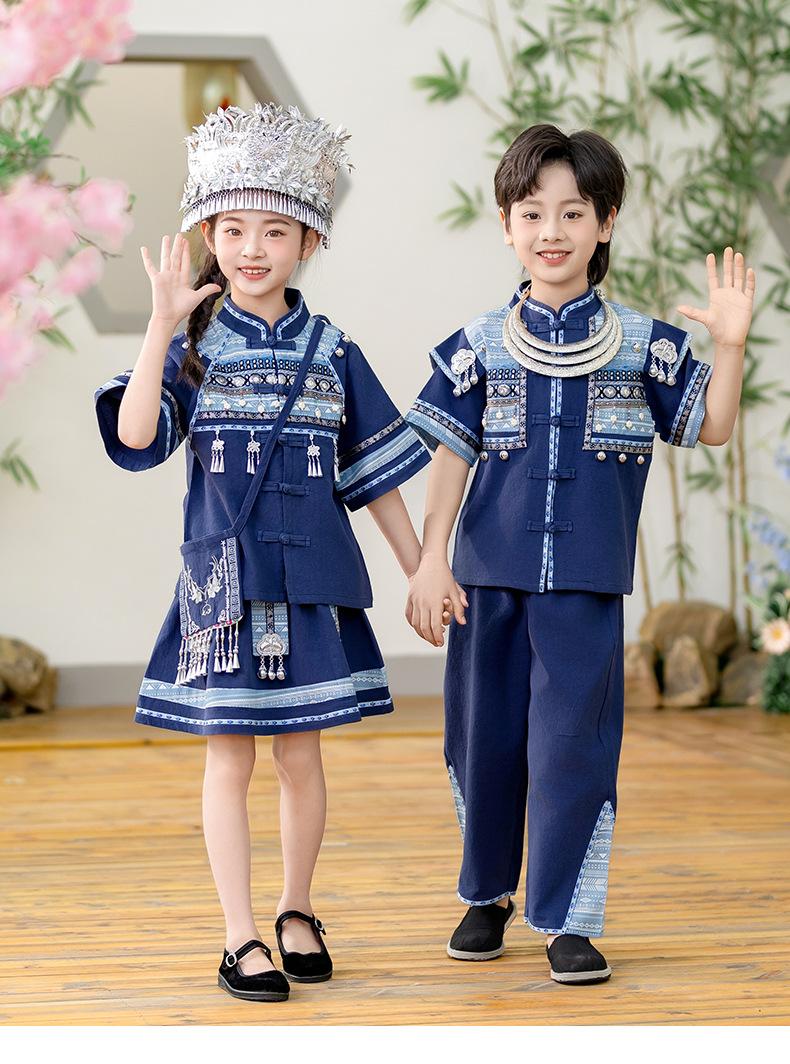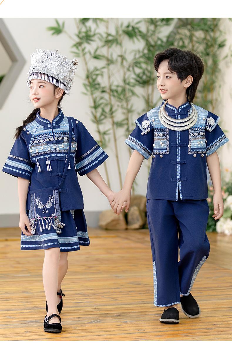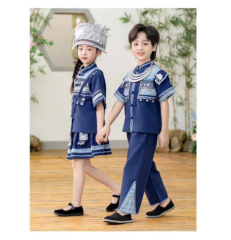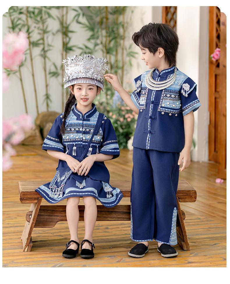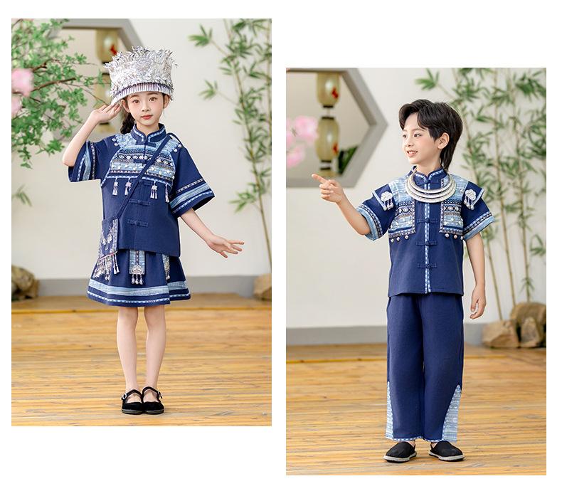 Traje de danza Zhuang del 3 de marzo de Guangxi Traje de niños de minorías de nacionalidad Zhuang y Miao Traje de actuación para niños y niñas