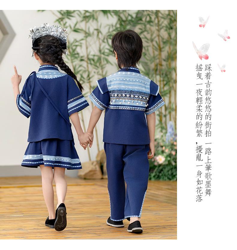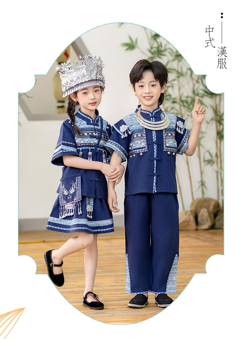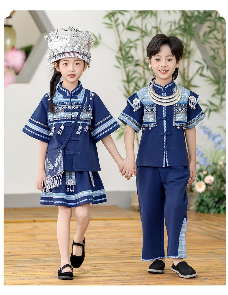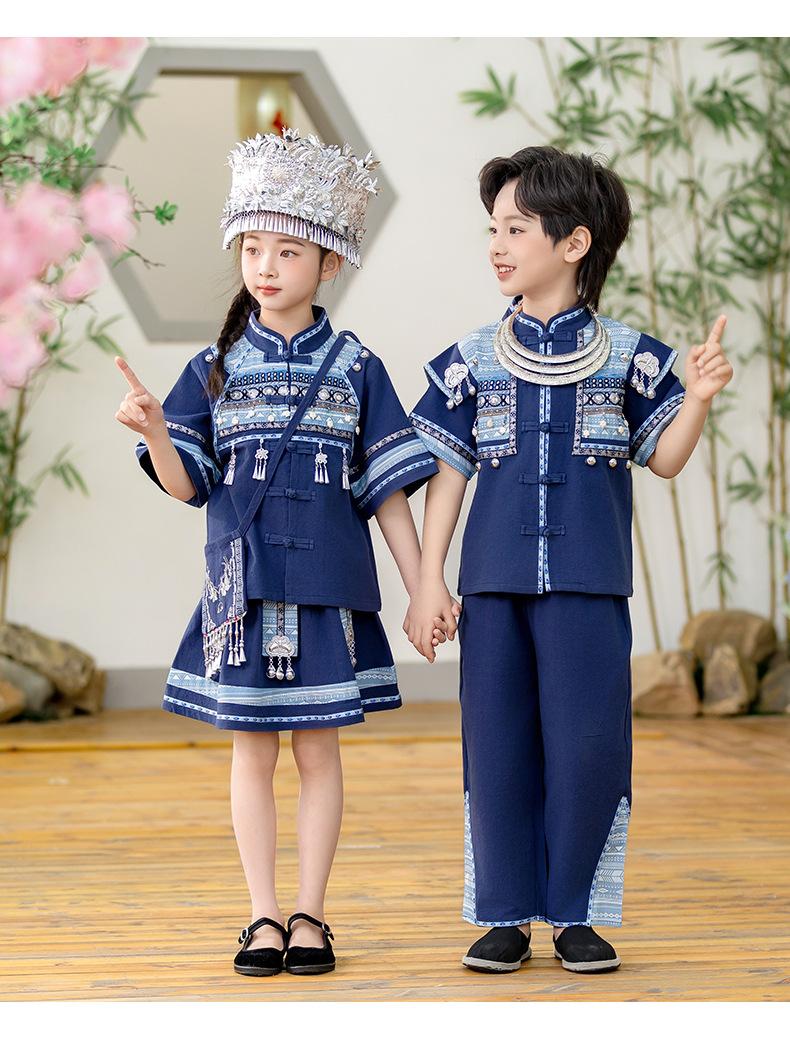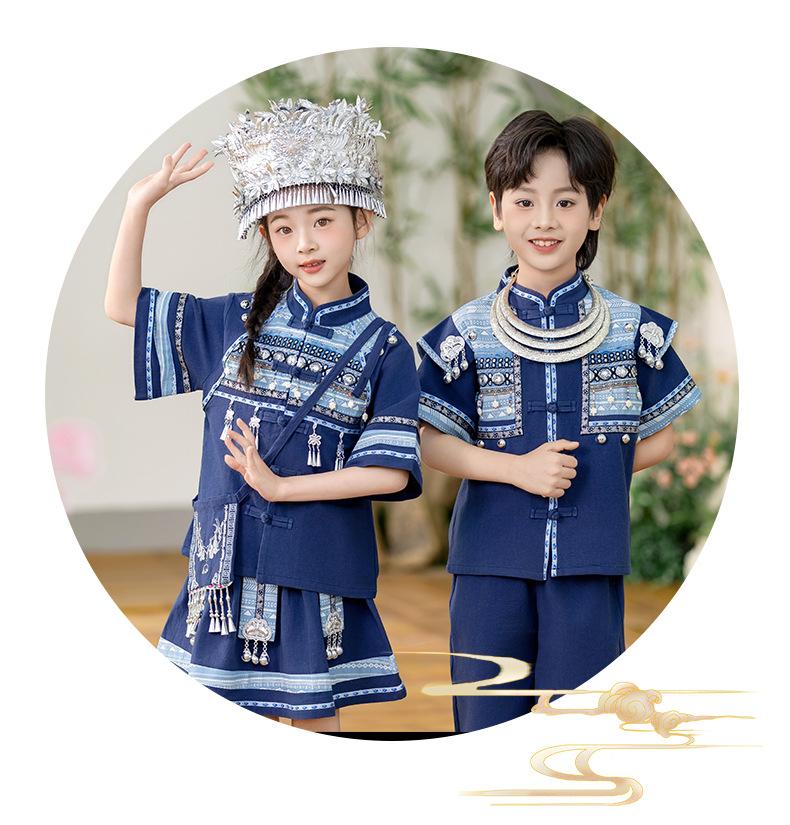 Traje de danza Zhuang del 3 de marzo de Guangxi Traje de niños de minorías de nacionalidad Zhuang y Miao Traje de actuación para niños y niñas