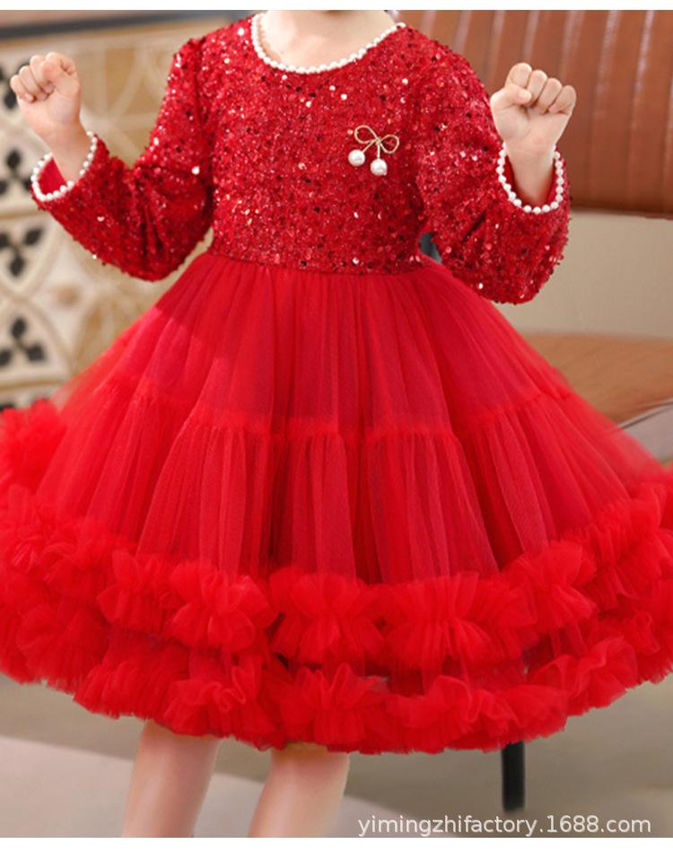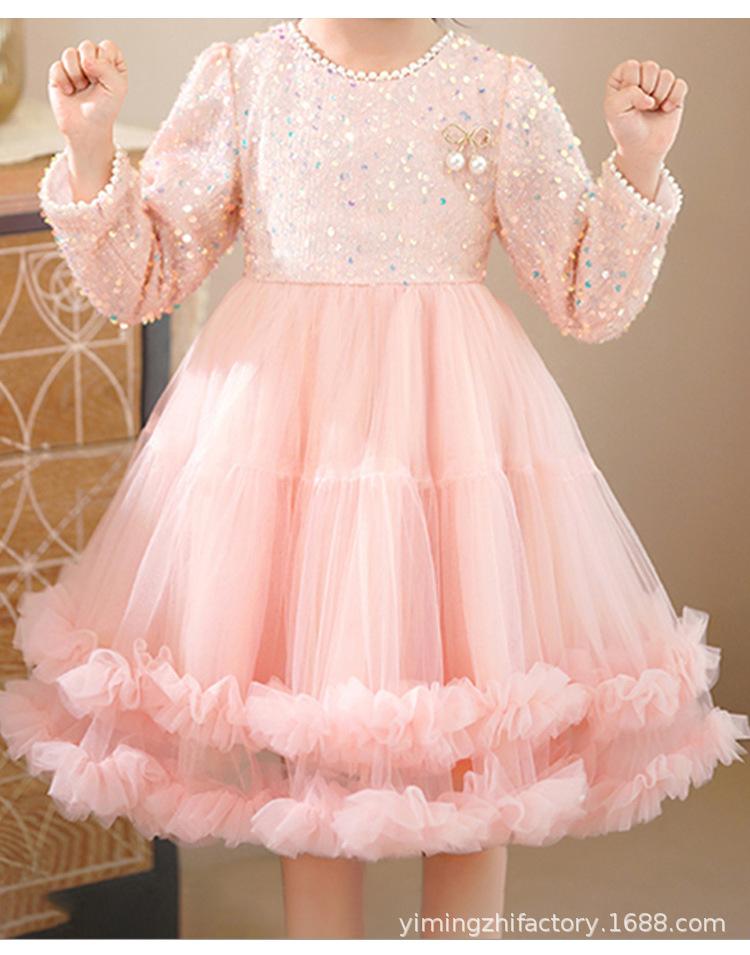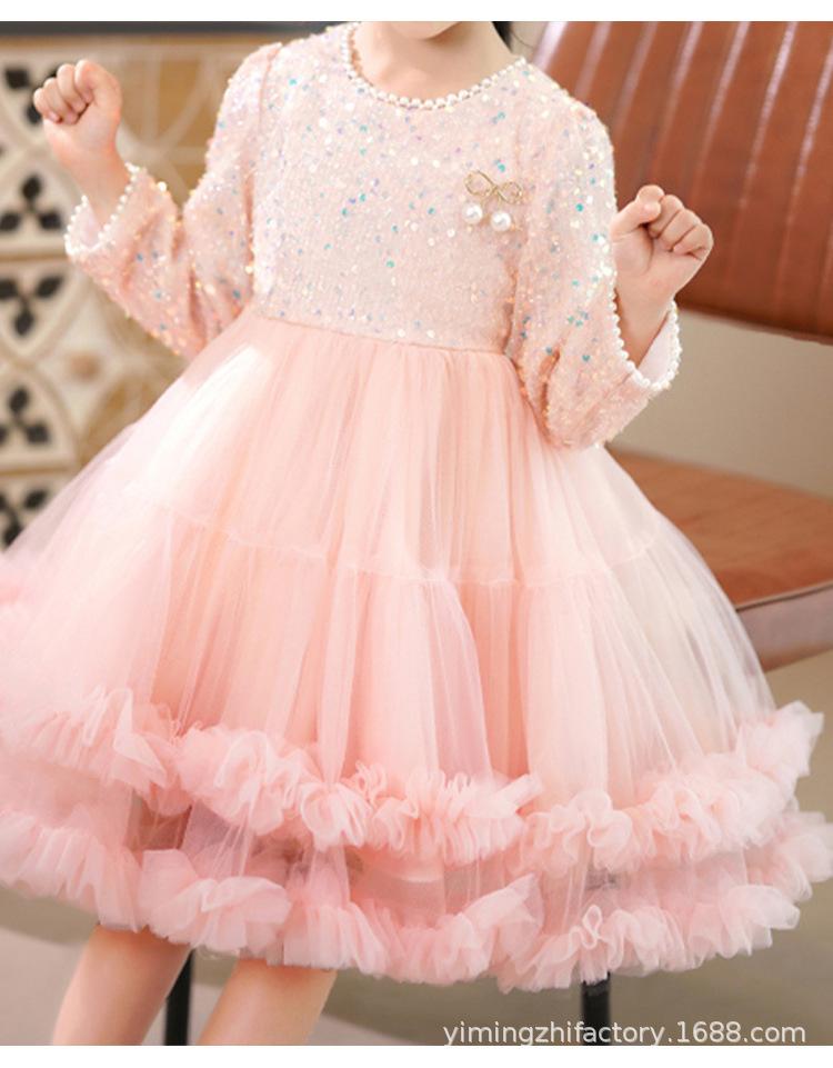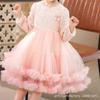 Nuevo vestido de niña, falda tutú de otoño, vestido de princesa de encaje hinchado para cumpleaños infantil, color sólido, venta al por mayor transfronteriza