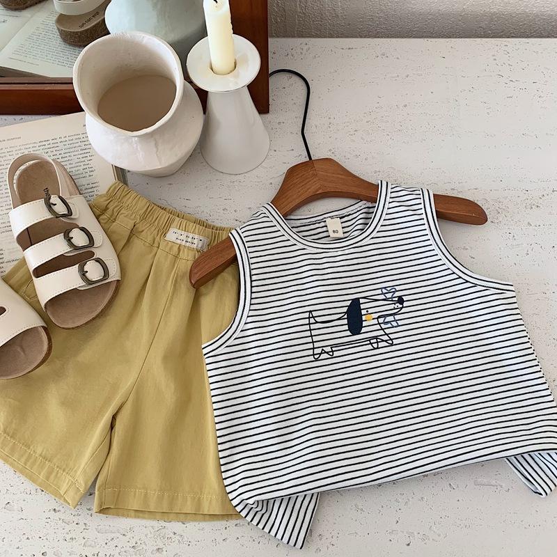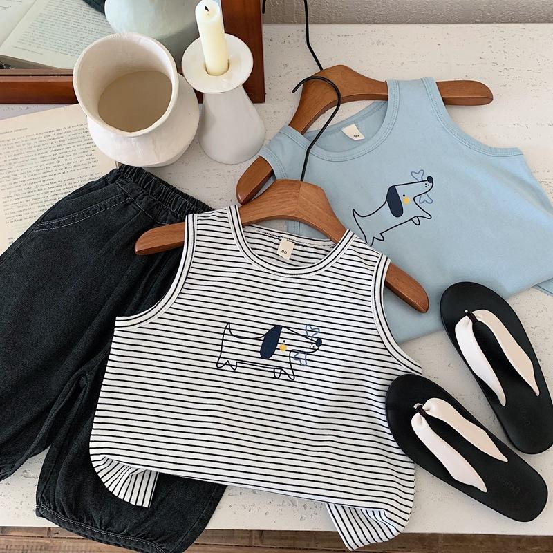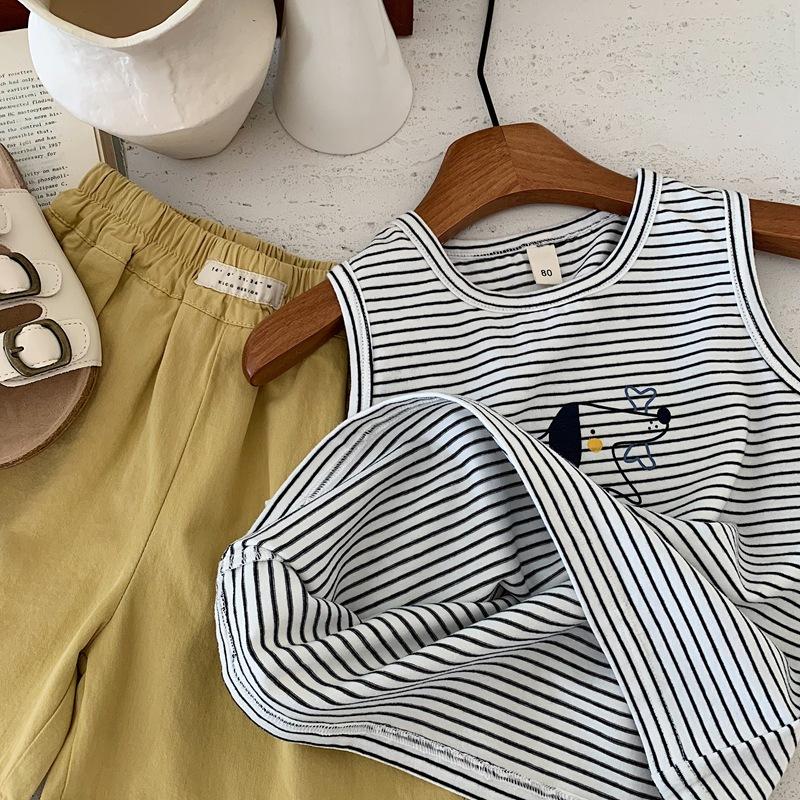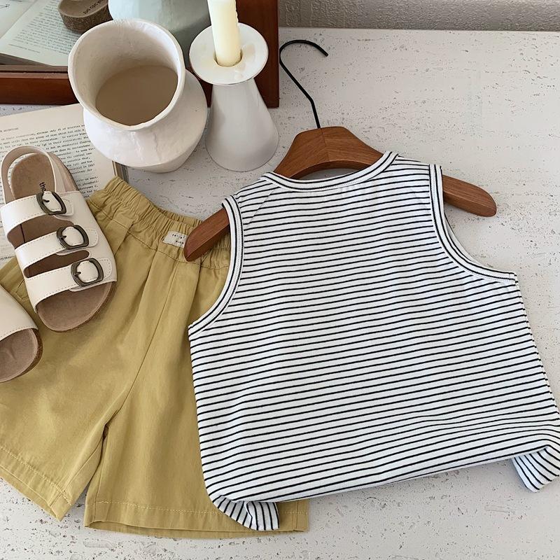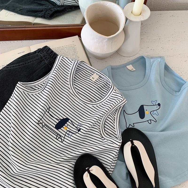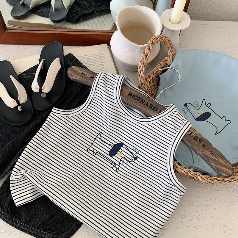 Chaleco para niños, camiseta sin mangas de verano para niños, chaleco deportivo, novedad de 2025, camiseta de algodón a rayas.