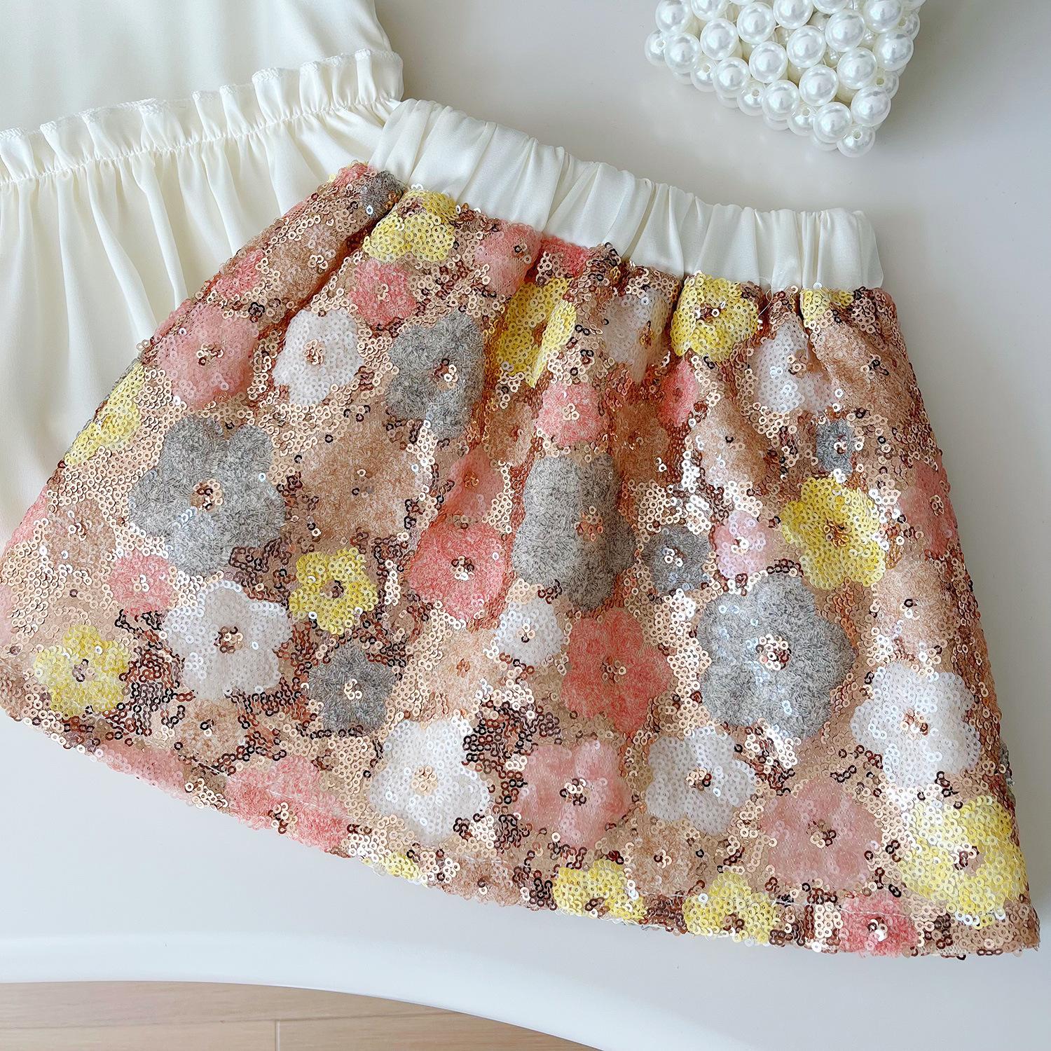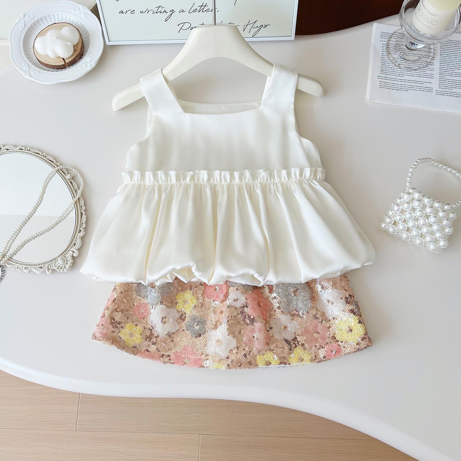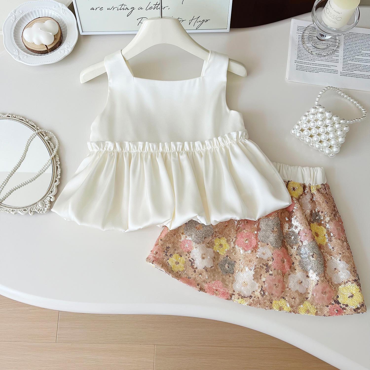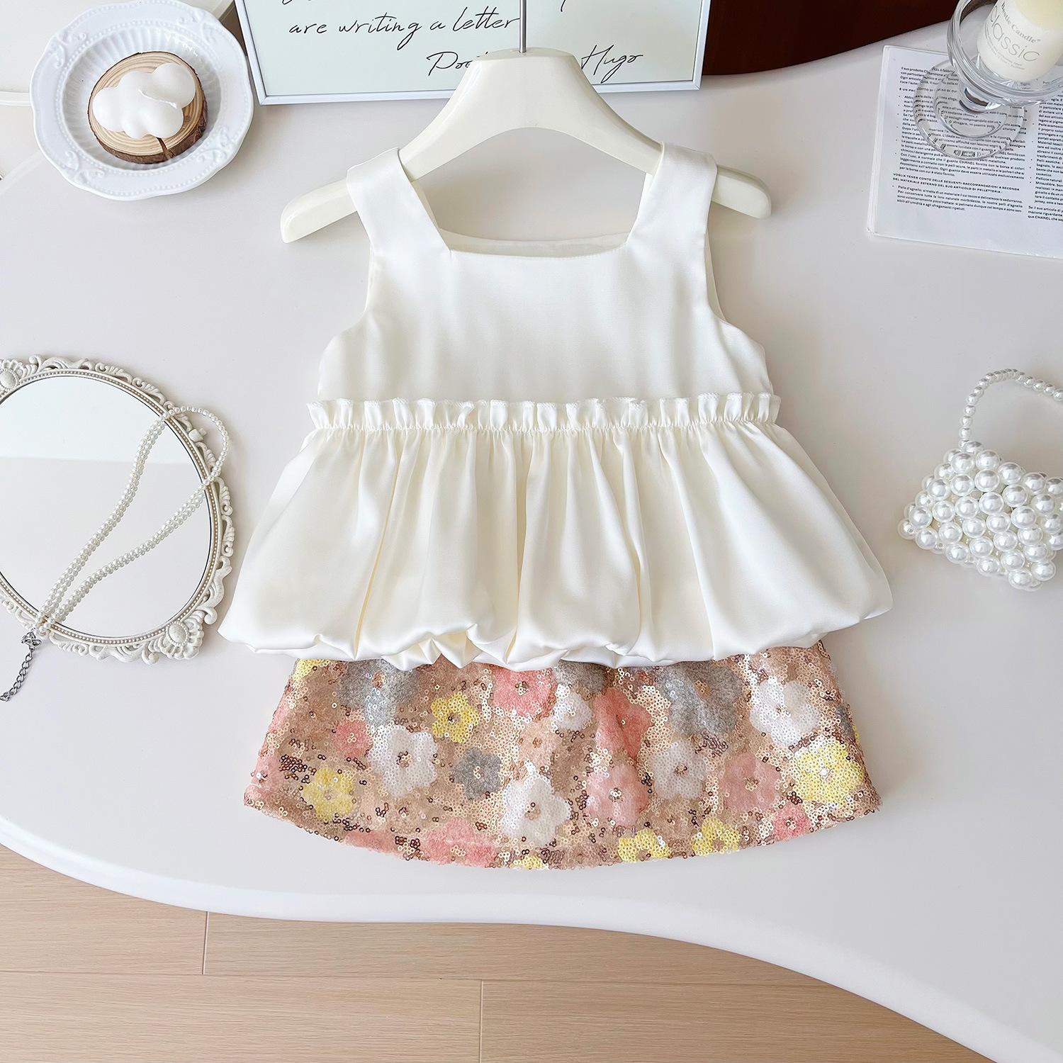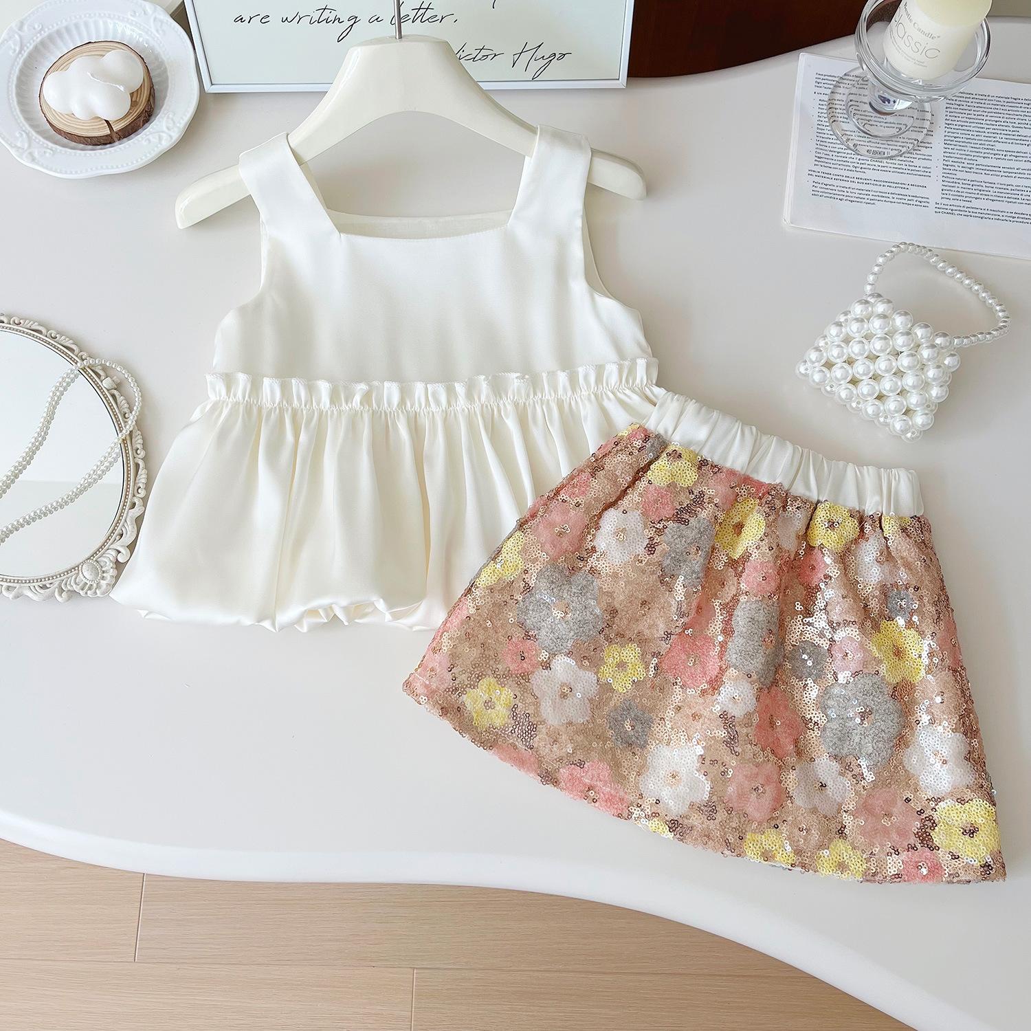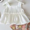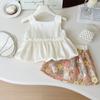 Nuevo estilo de verano 2025 con un conjunto de top de tirantes de moda con estampado floral y falda de media longitud de dos piezas 24269