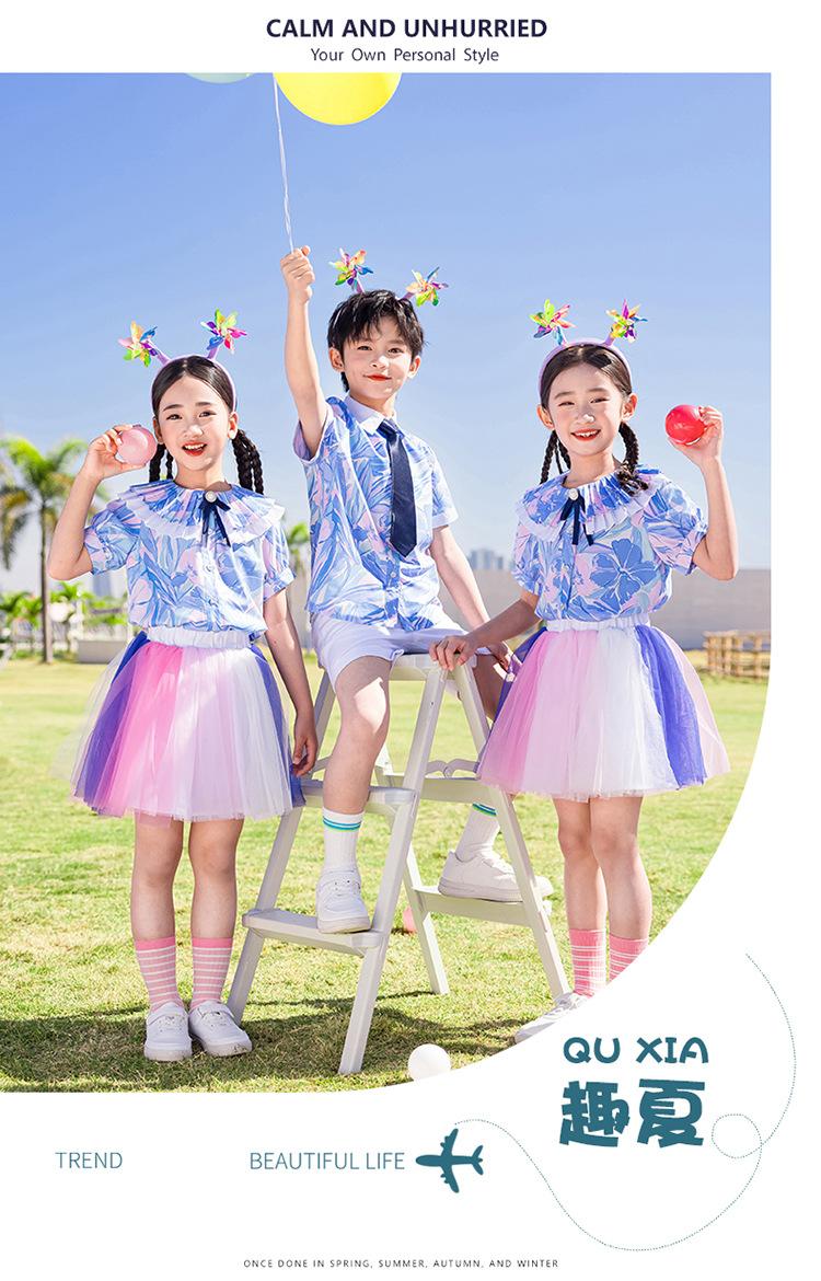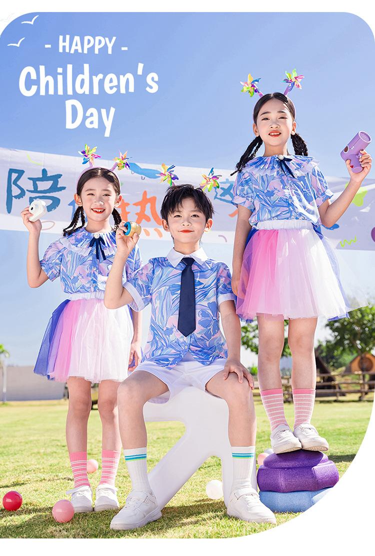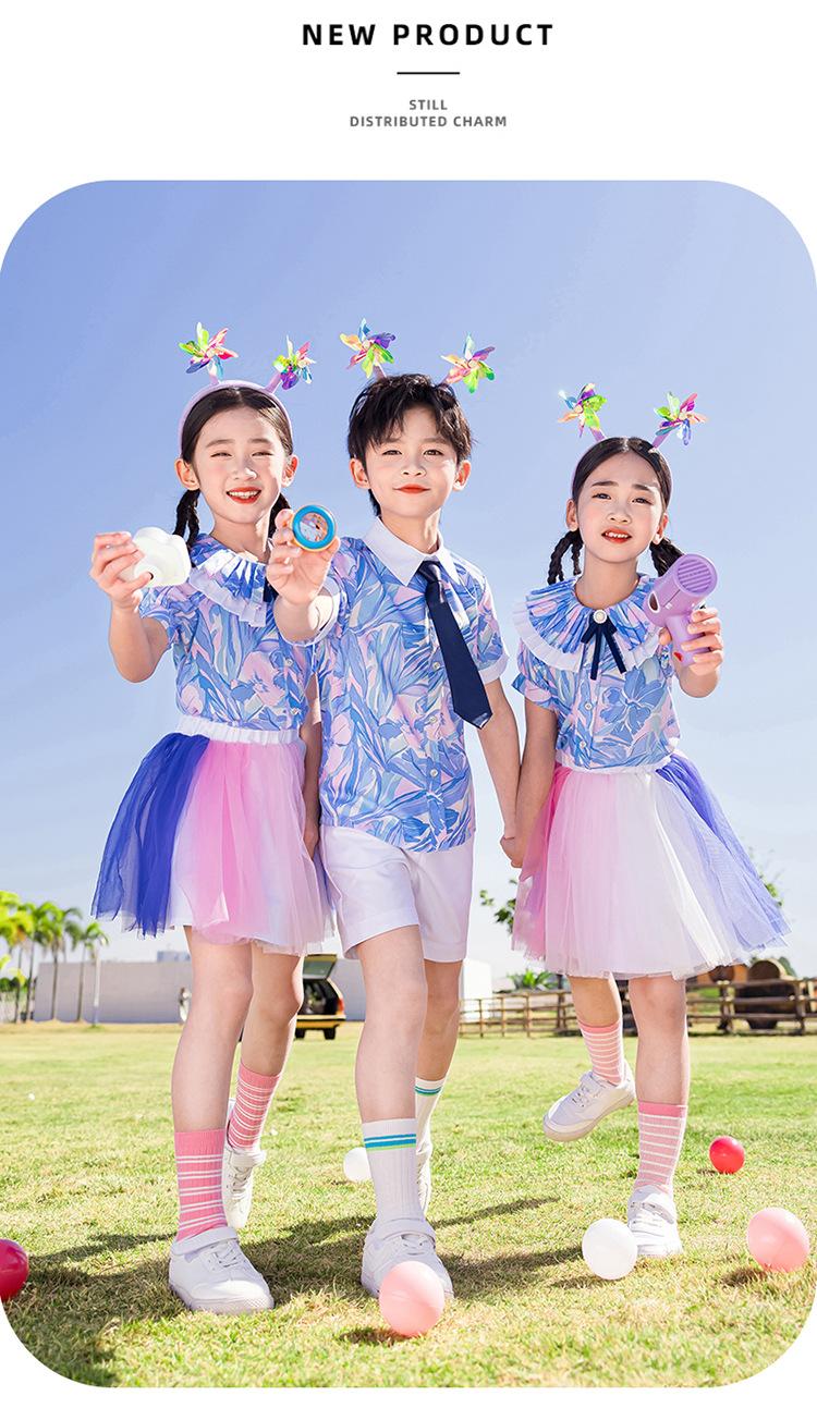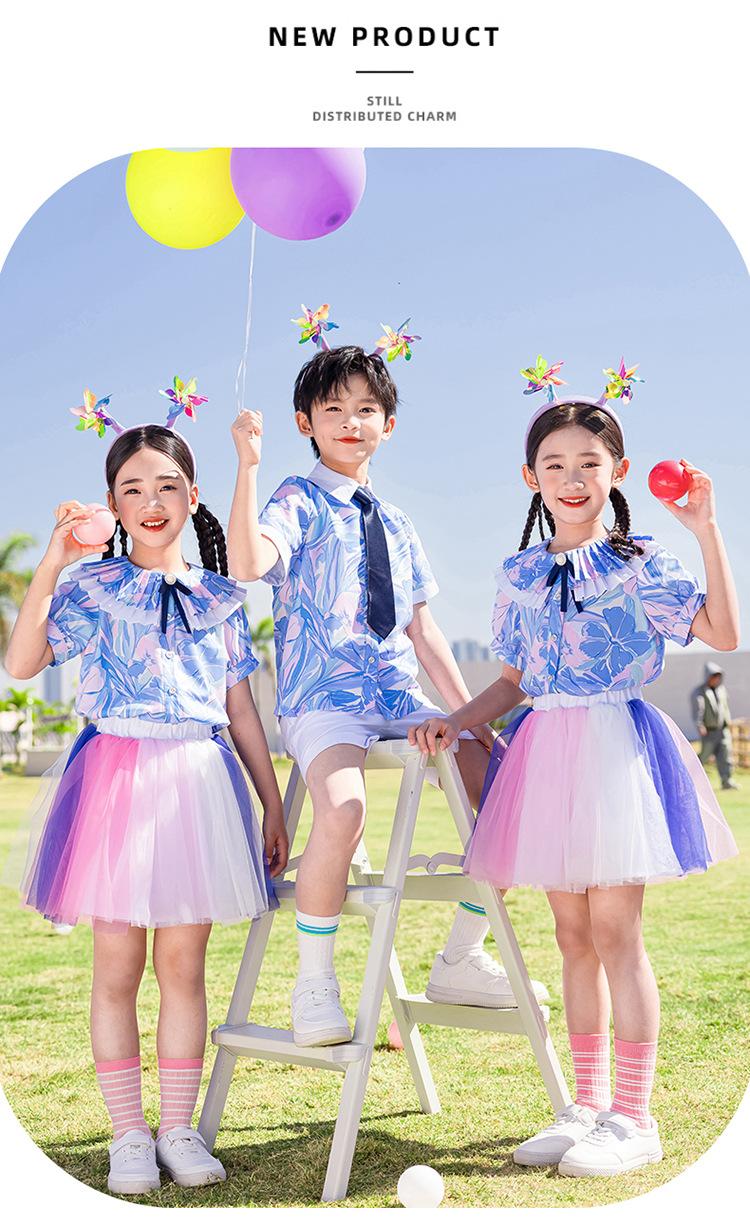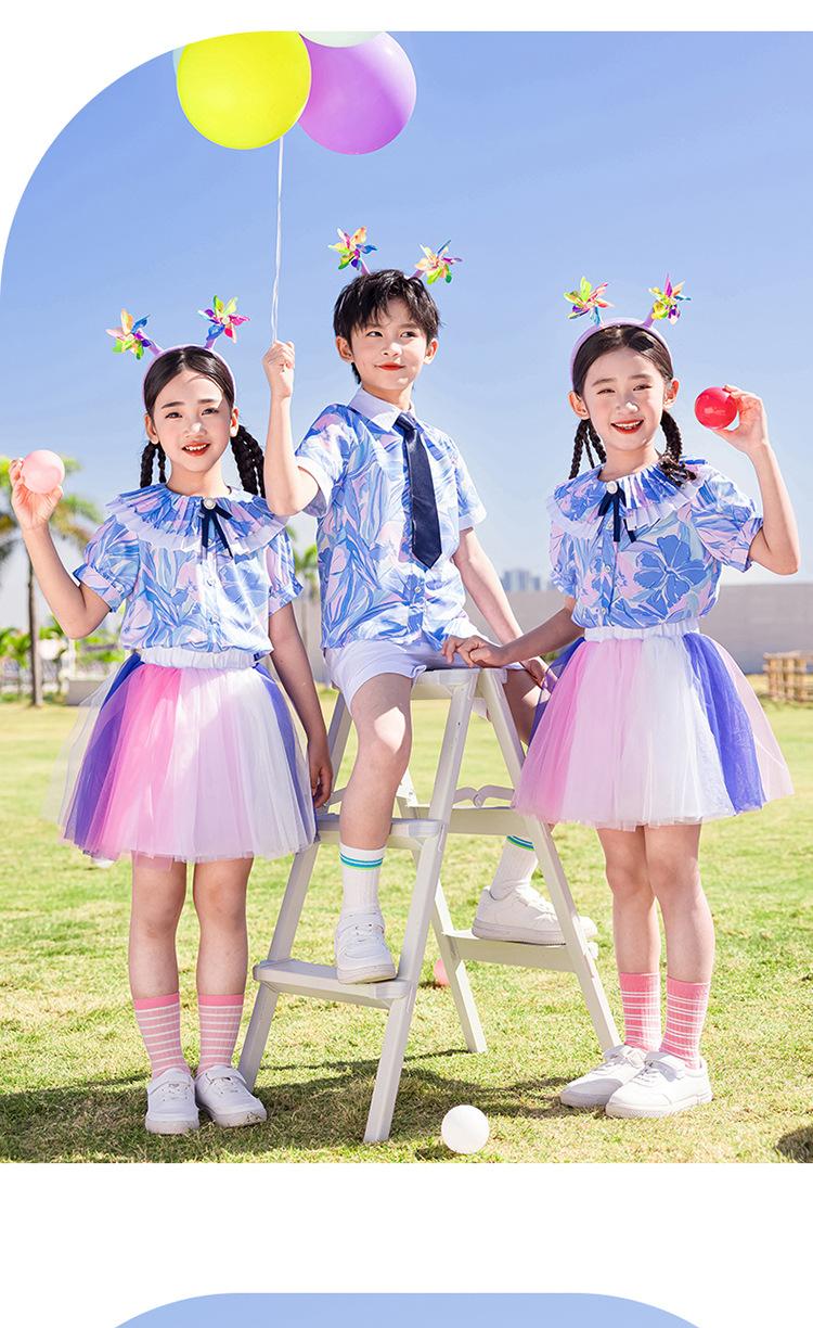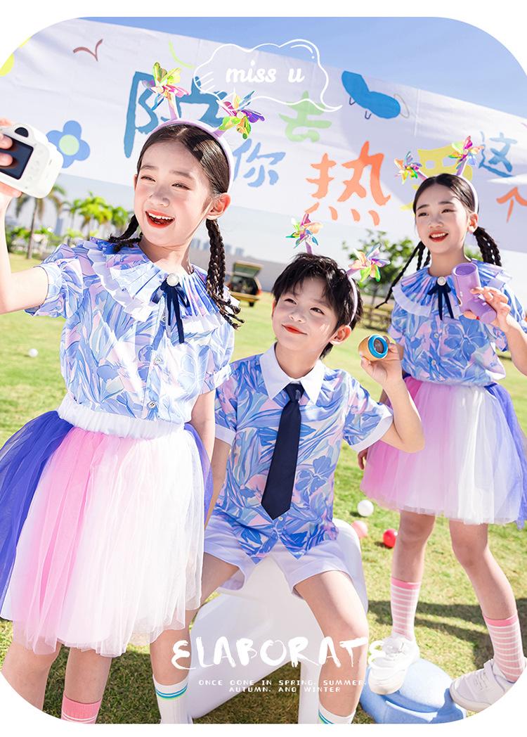Ropa de Actuación para Niños, Ropa de Coro, Falda de Gasa para Estudiantes de Primaria, Traje de Verano de Manga Corta, Ropa de Actuación Linda, Ropa de Baile para Jardín de Niños