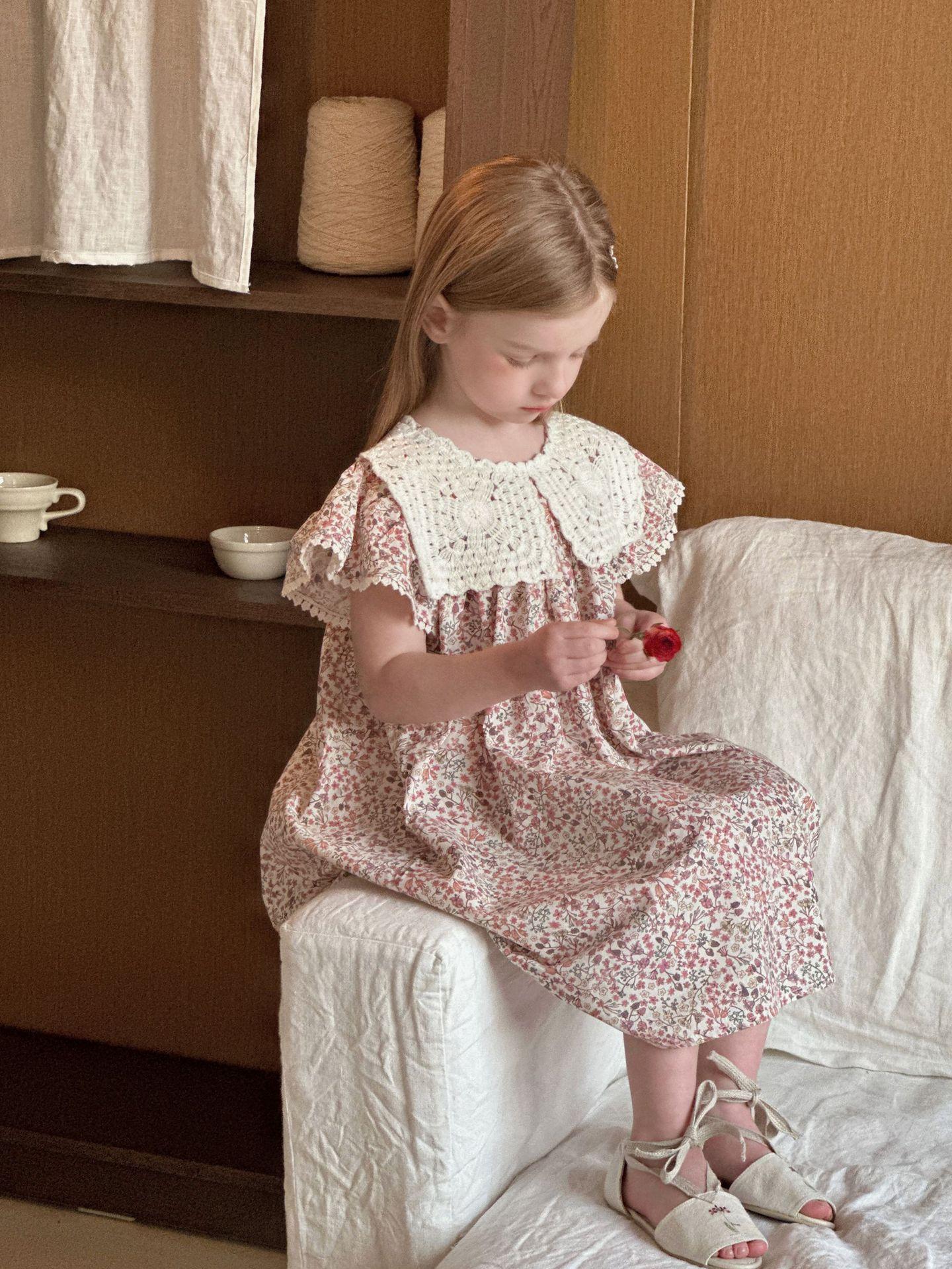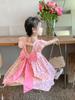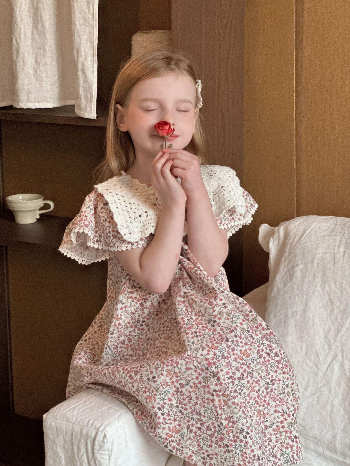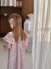 Vestido floral para niña, verano 2025, nuevo estilo coreano, ropa infantil, vestido de princesa con mangas voladoras, vestido de encaje para bebé