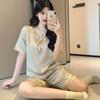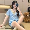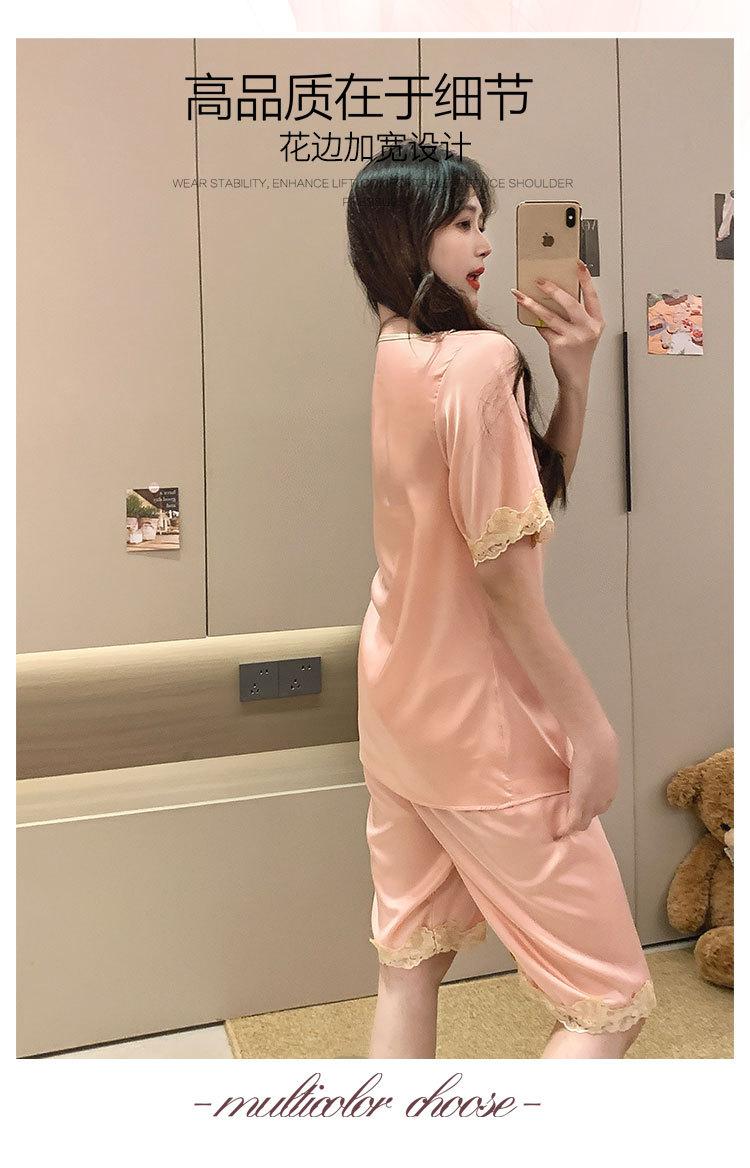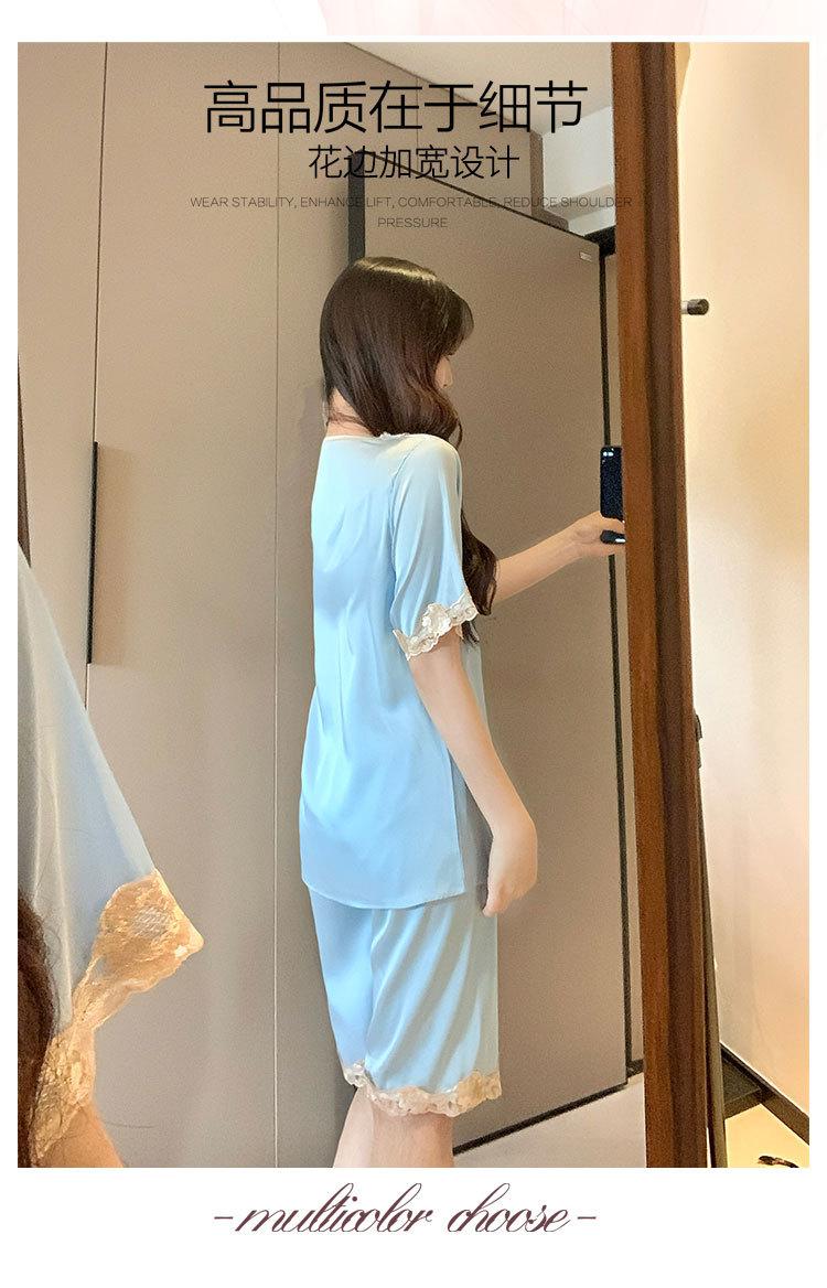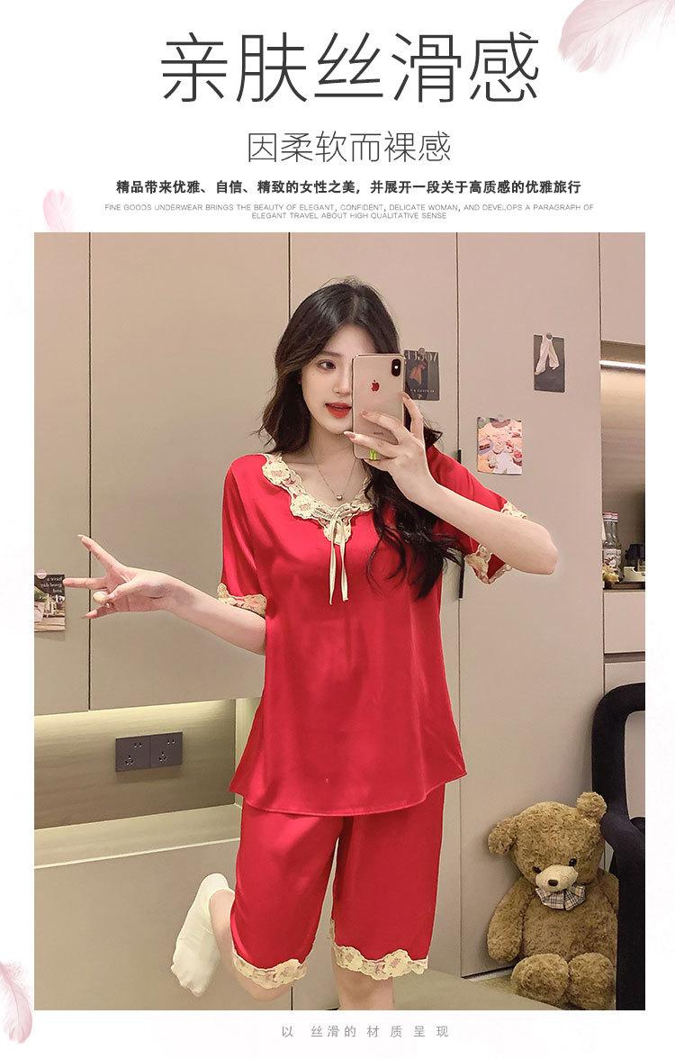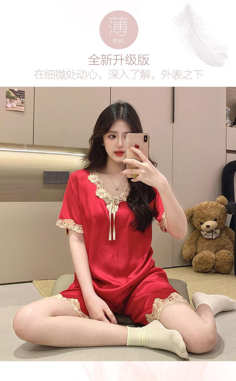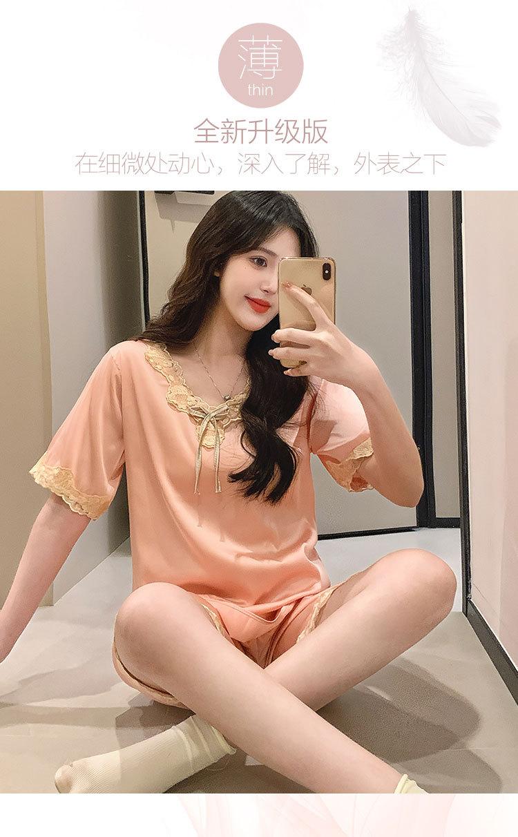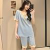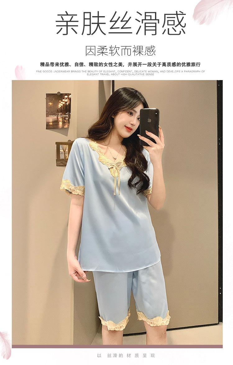 Pijama de Seda de Hielo para Mujer Verano Delgado Manga Corta Shorts Traje Cuello en V Seda de Hielo Estilo Coreano Talla Extra Jersey Ropa para el Hogar