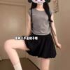 Falda rosa chifón estampado color sólido con falda falda adelgazante temperamento commuter costuras cadera falda en A 1009#