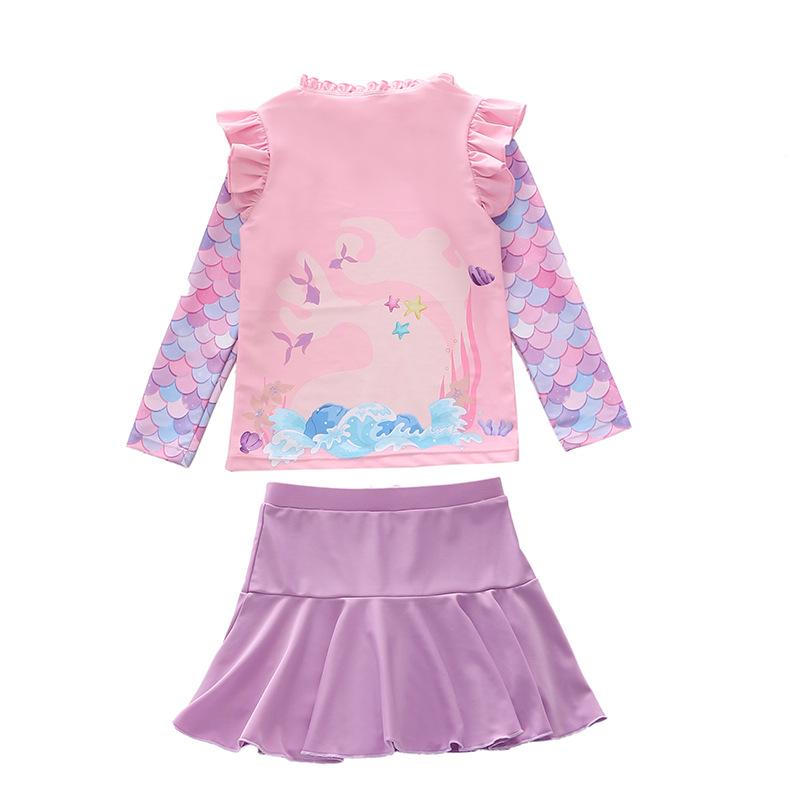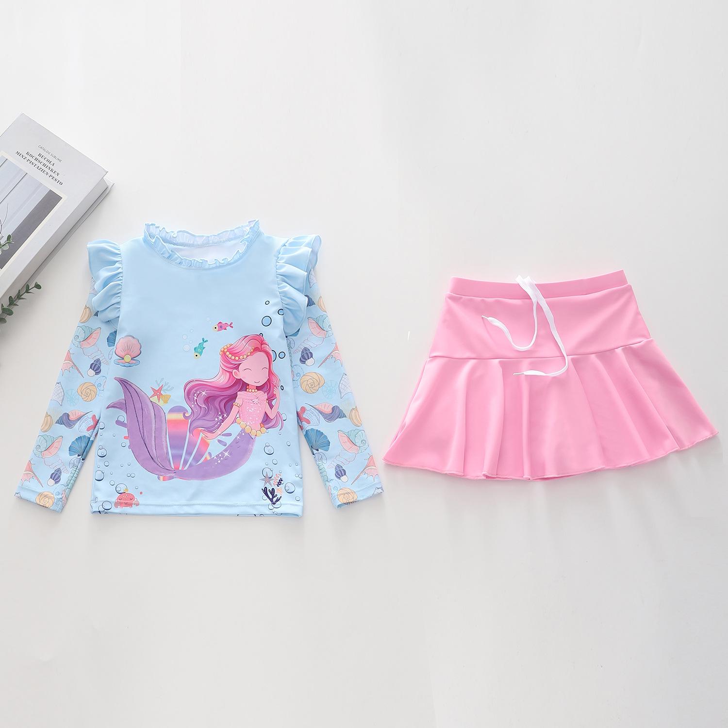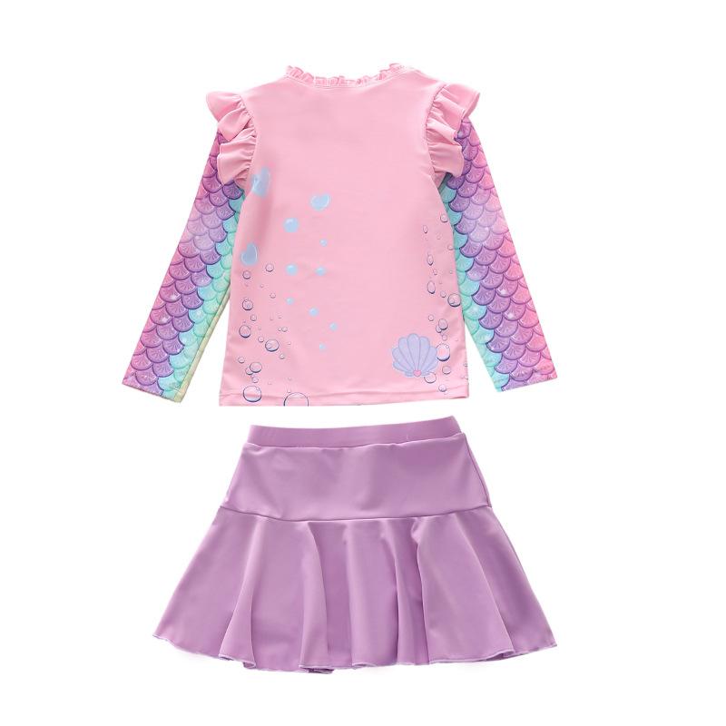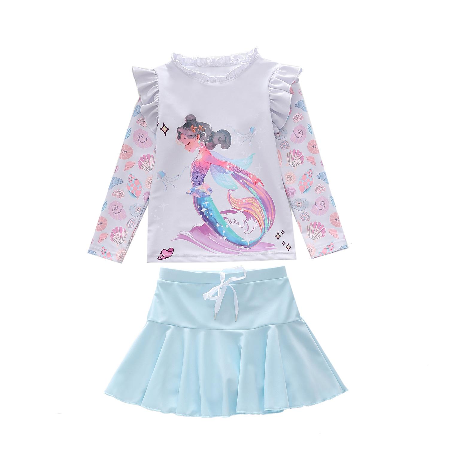 Traje de Baño para Niñas Dividido Pequeño, Mediano y Grande Niñas Niños Traje de Baño de Sirena Nuevo Manga Larga Protector Solar Traje de Baño para Niñas