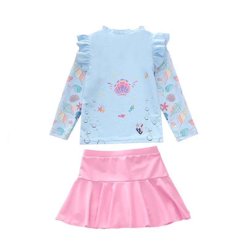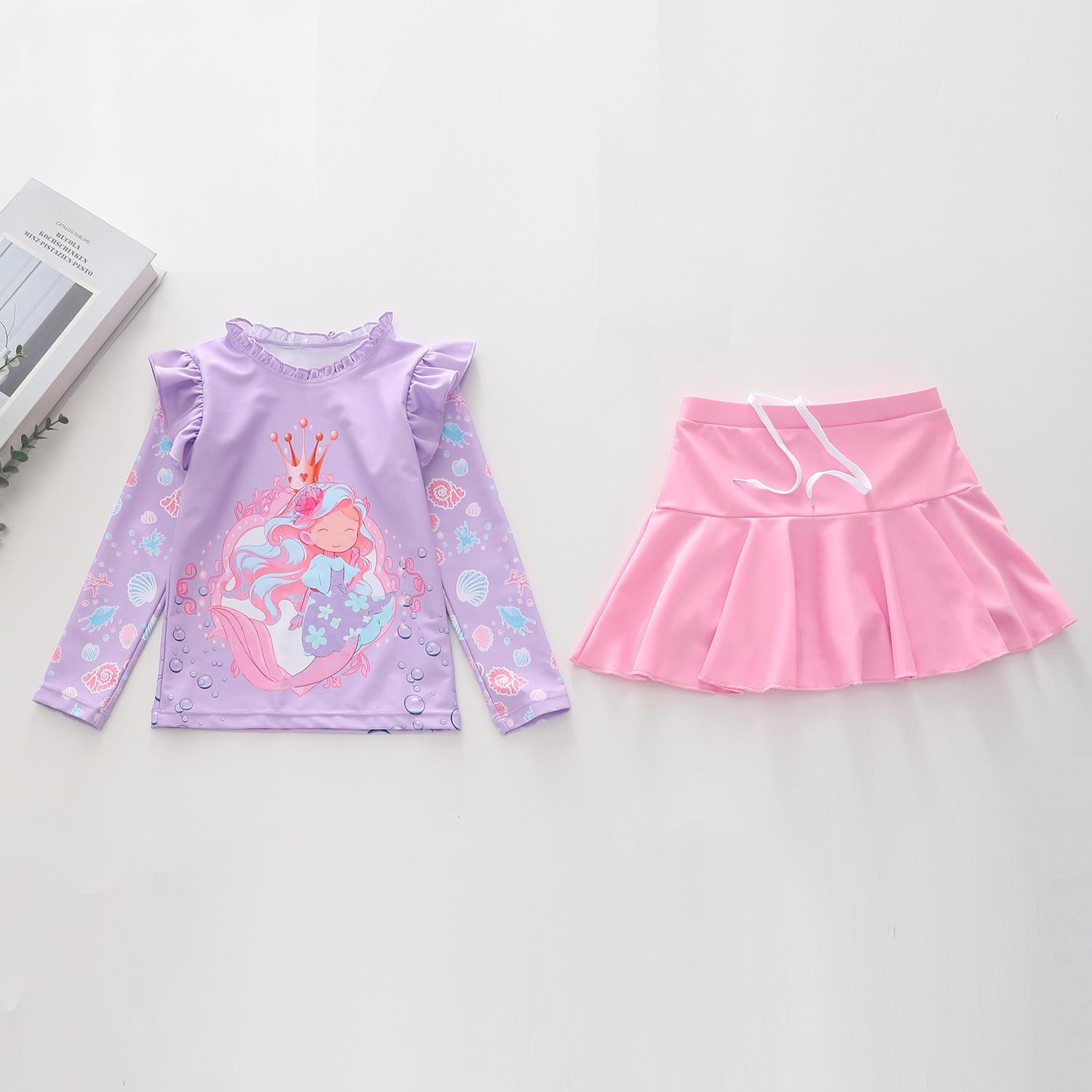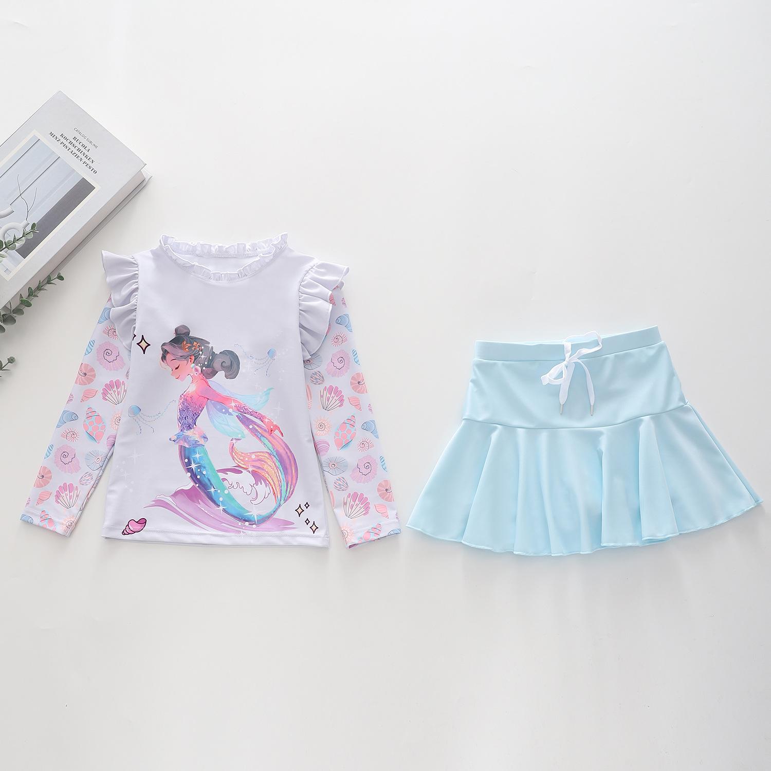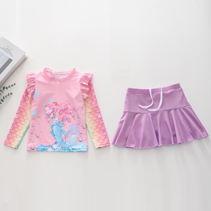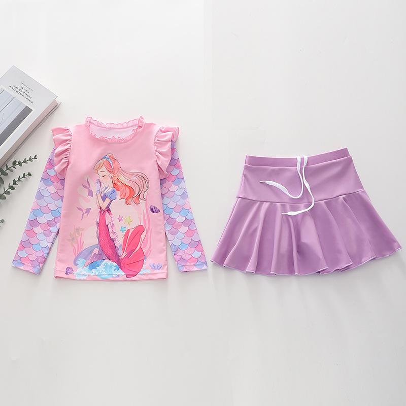 Traje de Baño para Niñas Dividido Pequeño, Mediano y Grande Niñas Niños Traje de Baño de Sirena Nuevo Manga Larga Protector Solar Traje de Baño para Niñas