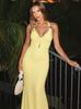 2025 Europeo y Americano Nuevo Sin Tirantes Primavera y Verano Hombro Descubierto con Volantes Abertura Malla Ajustado Vestido Largo para Mujer Venta al por Mayor