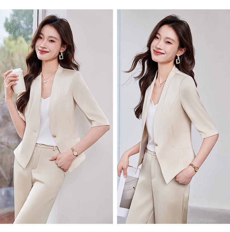 Traje de verano de manga corta, chaqueta pequeña, pantalones para mujer, profesional, informal, de moda, elegante, para uso diario, traje de verano de dos piezas, traje de alta gama