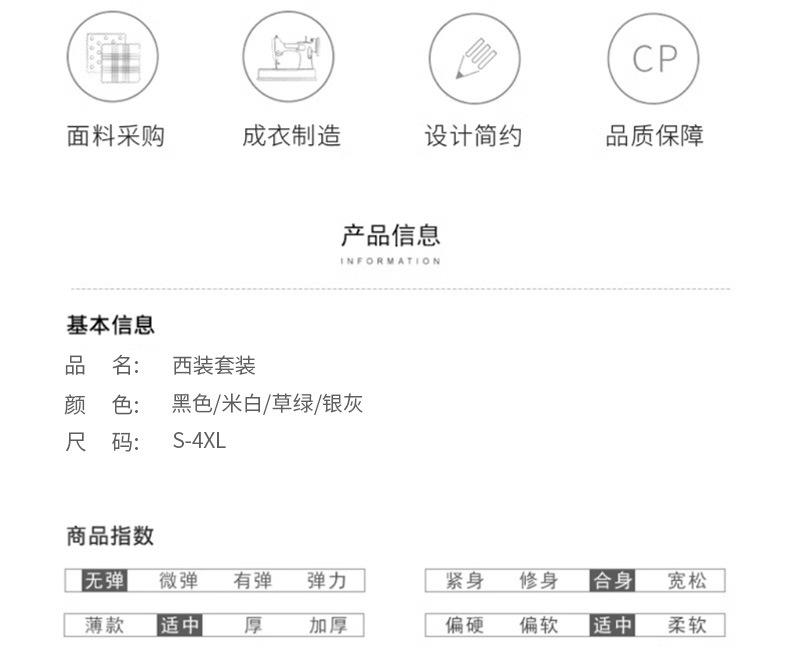 Grass green one piece suit, Silver gray single suit, Black one piece suit, Off-white single suit, Grass green ...