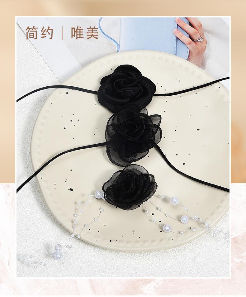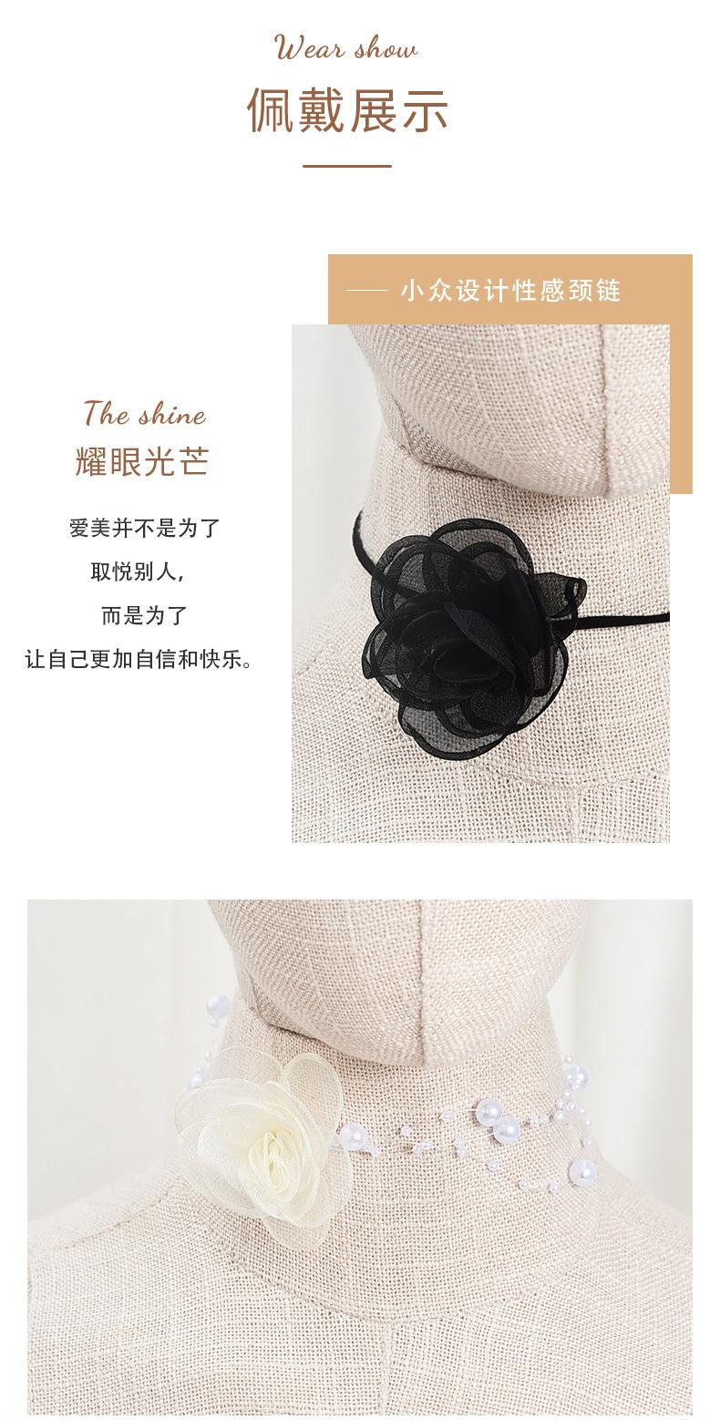 Collar de cuerda de cuero con flores elegante y romántico francés para mujer, gargantilla para el cuello, cadena para clavícula, accesorios elegantes de moda
