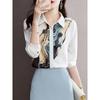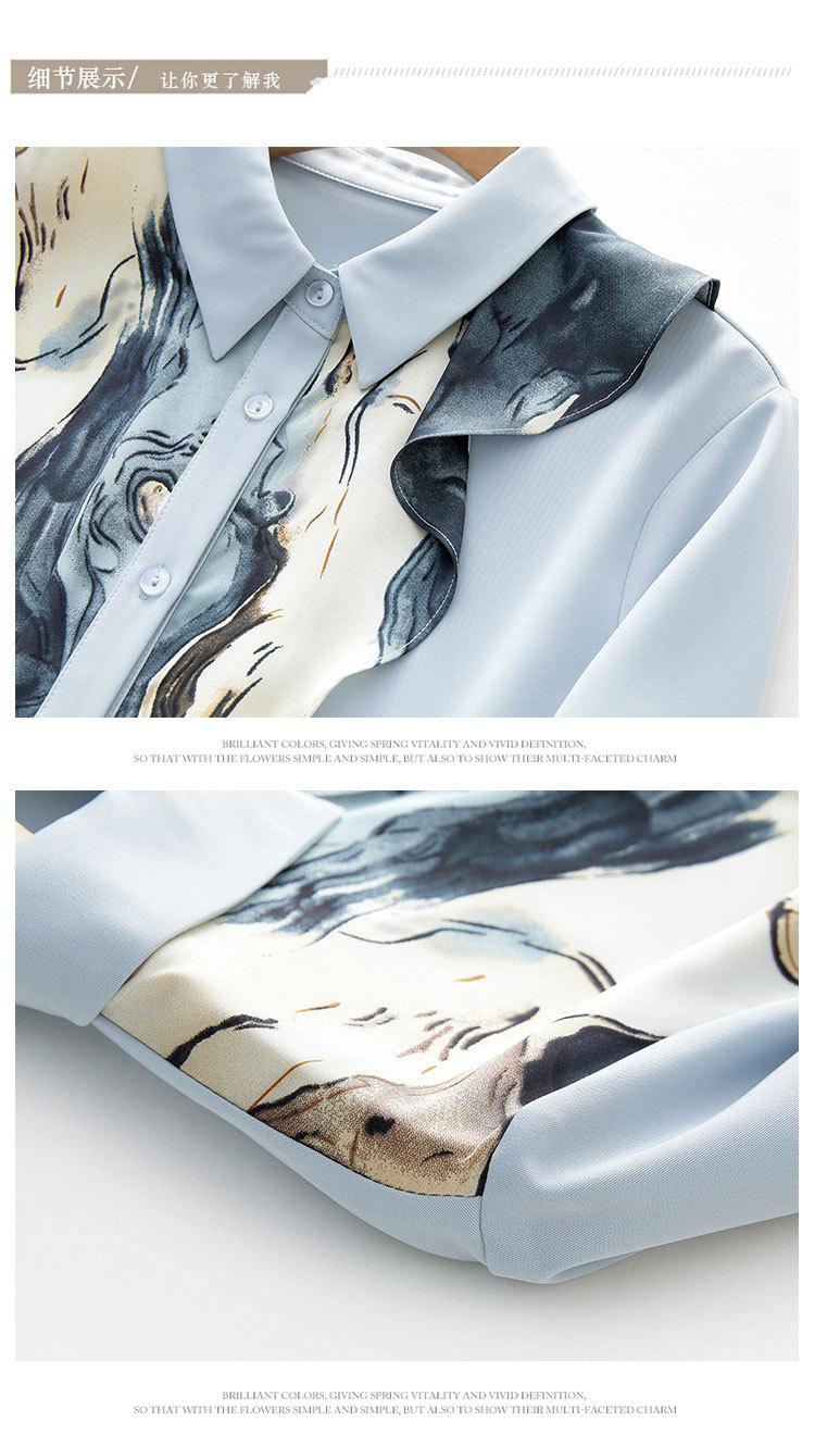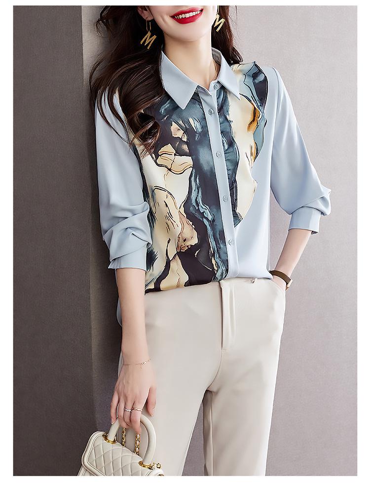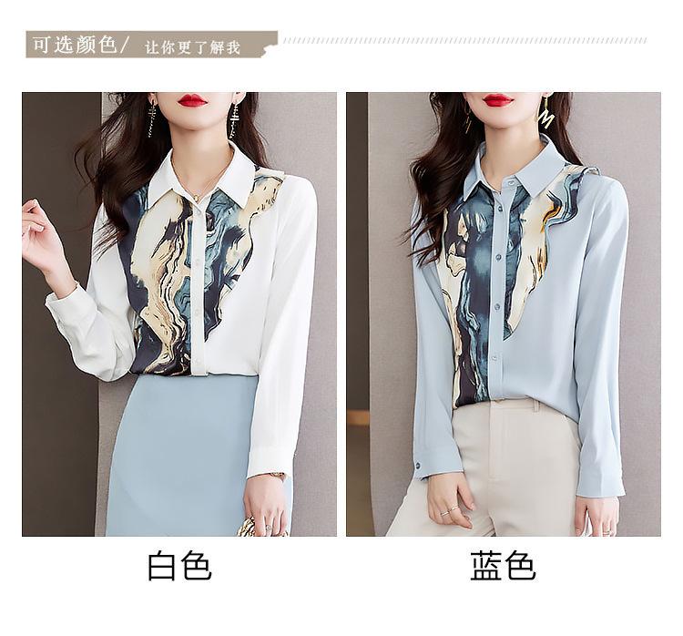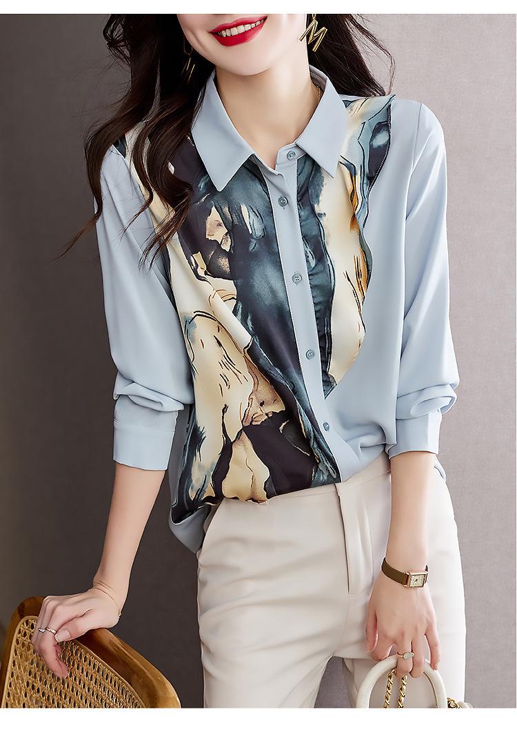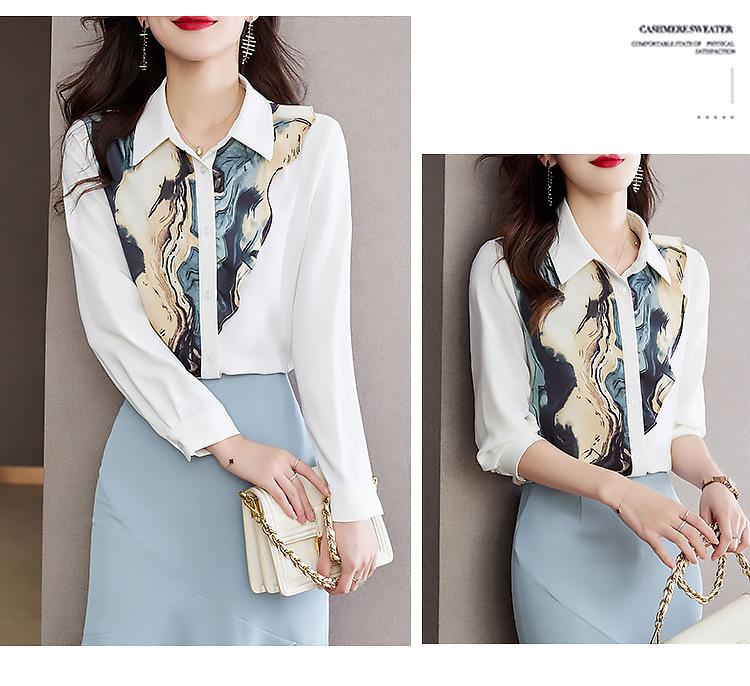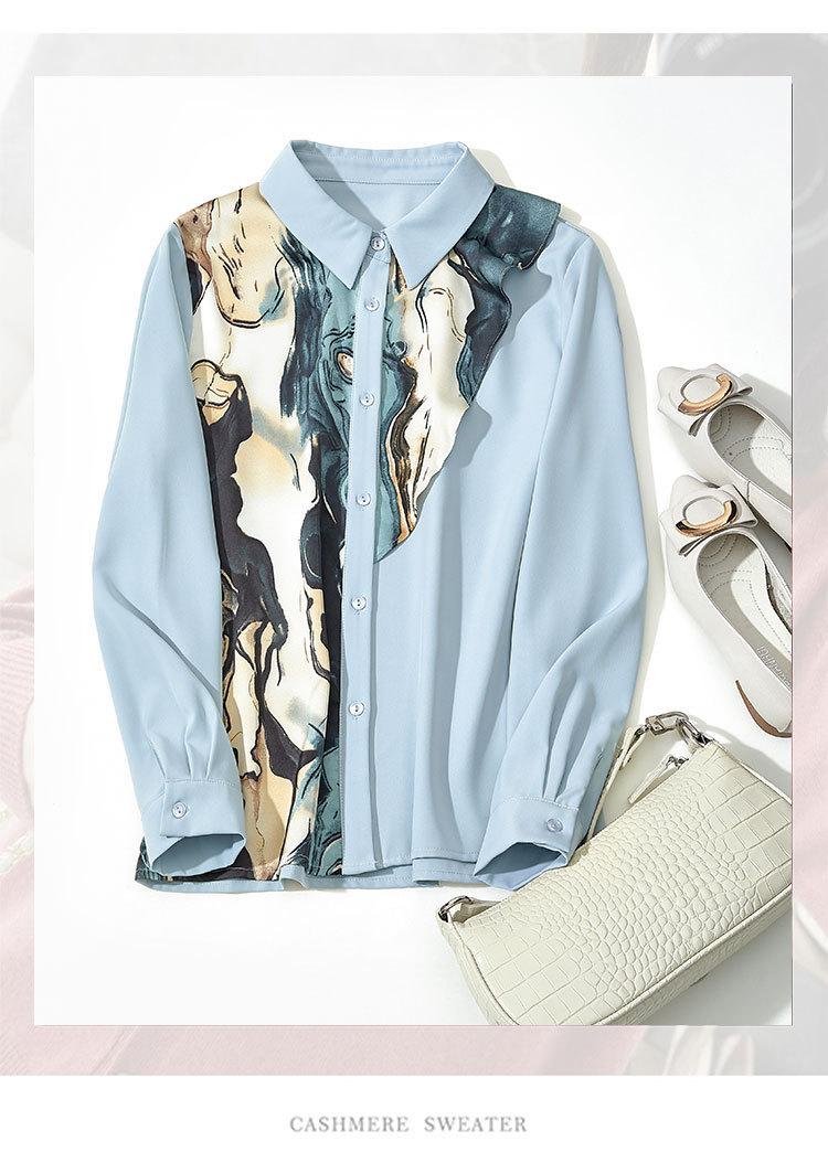 Camisa Estampada Europea 2025 Primavera y Otoño Nueva Camisa de Chifón para Mujer Diseño Sensorial Manga Larga Top Elegante
