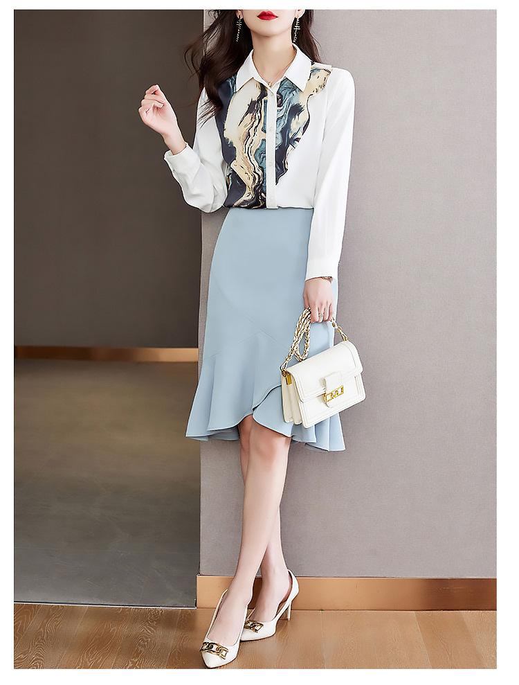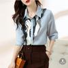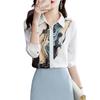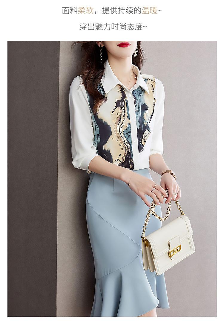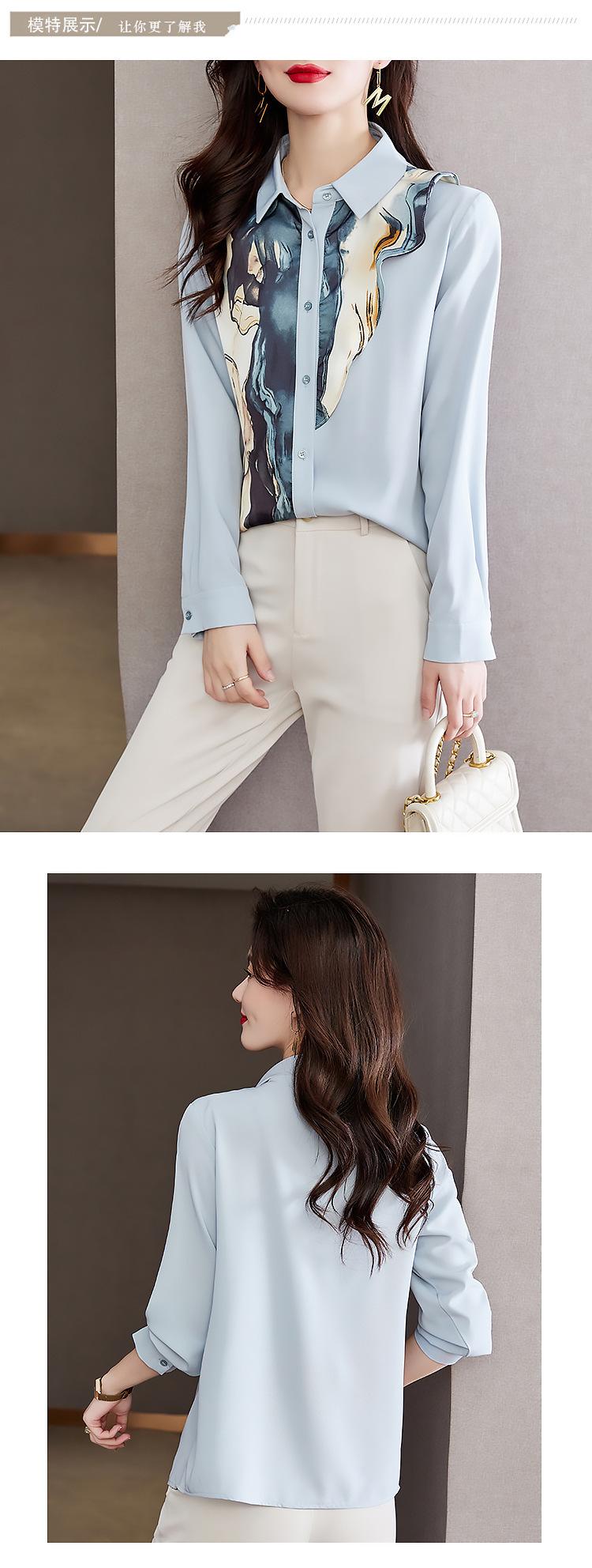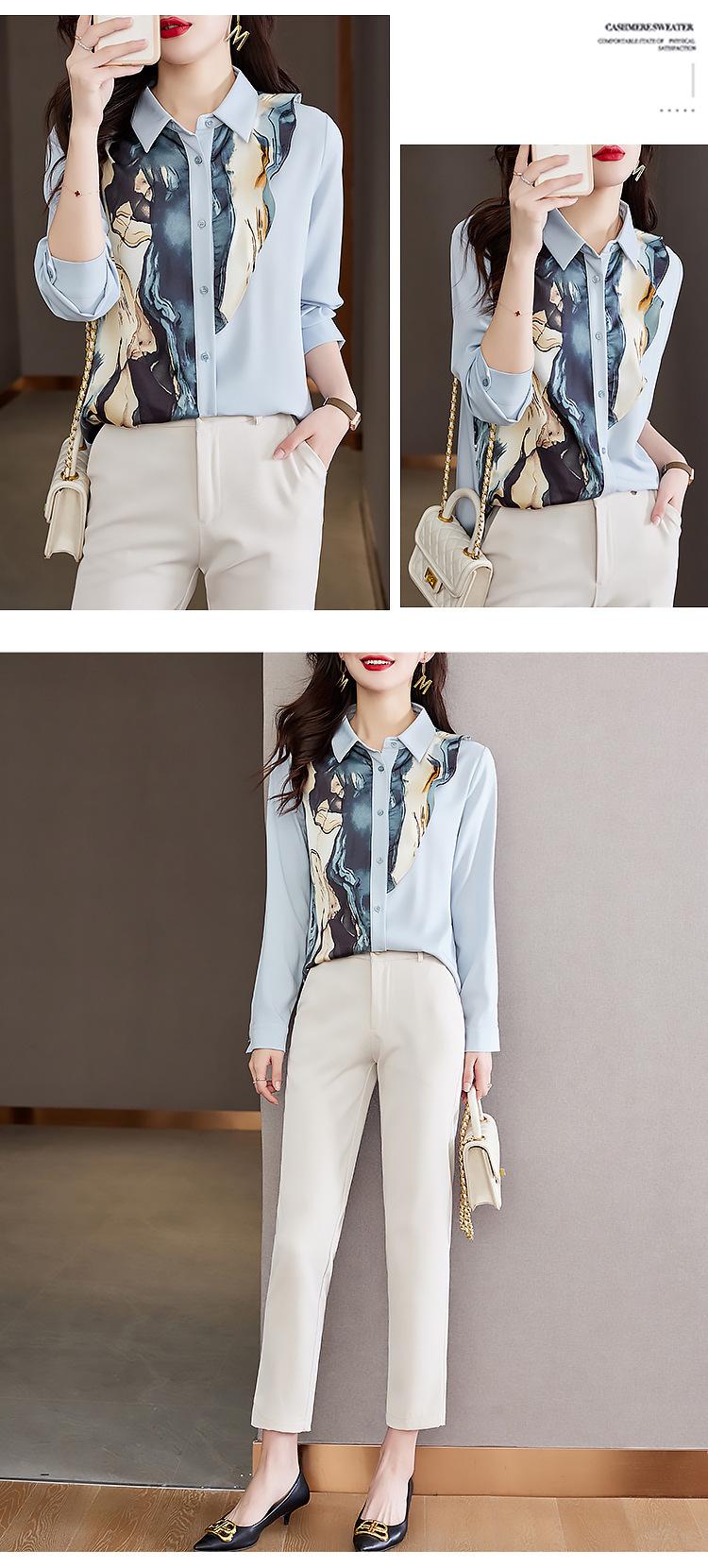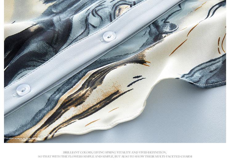 Camisa Estampada Europea 2025 Primavera y Otoño Nueva Camisa de Chifón para Mujer Diseño Sensorial Manga Larga Top Elegante