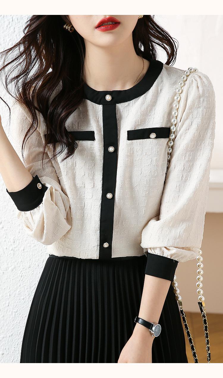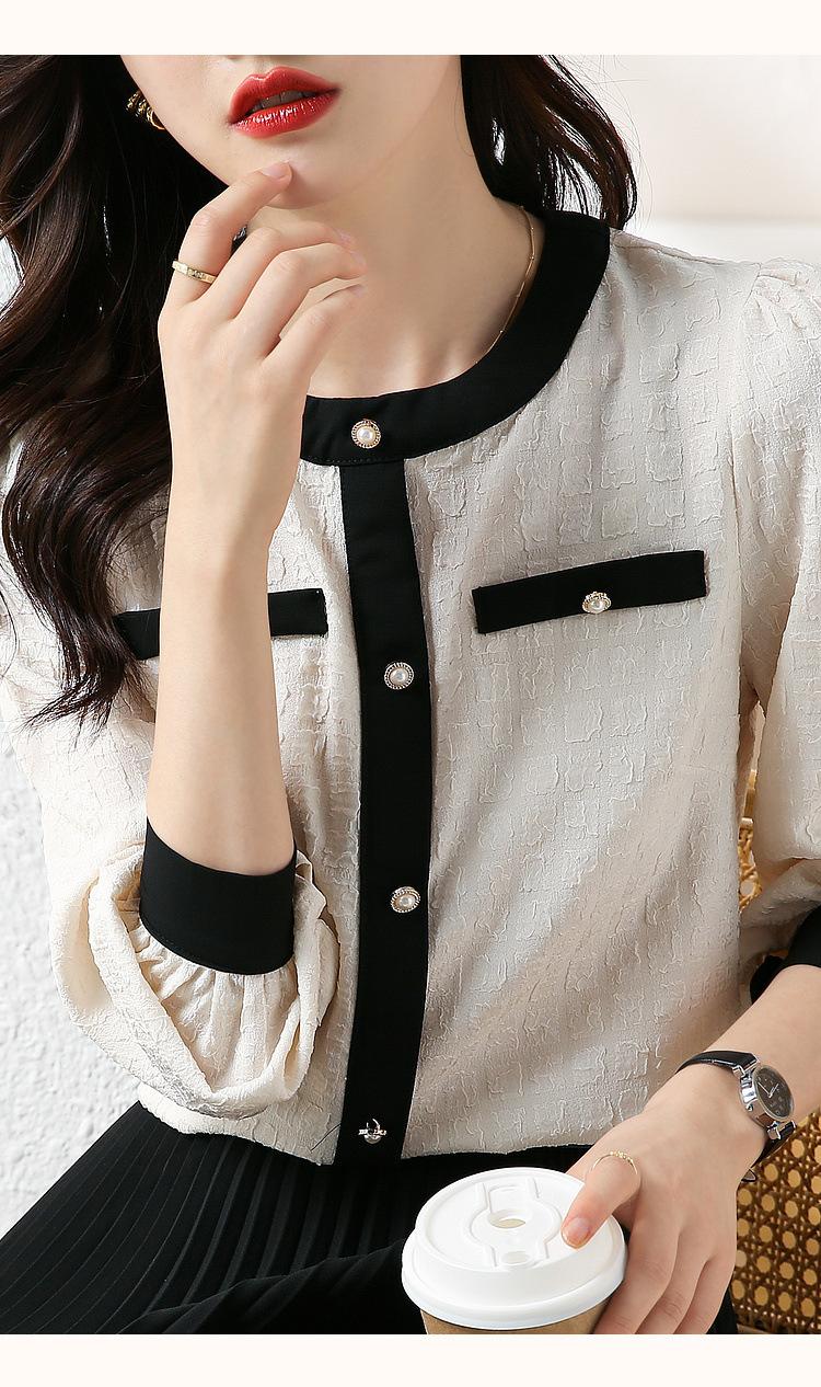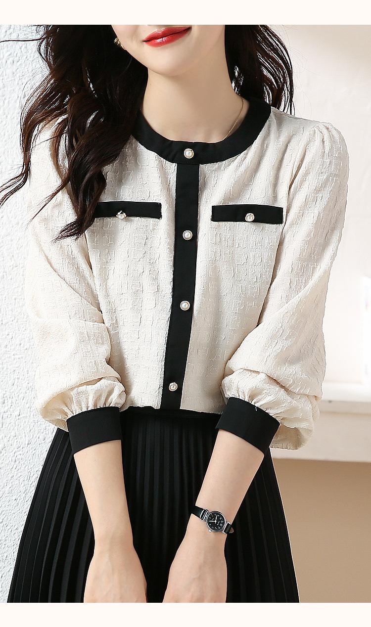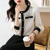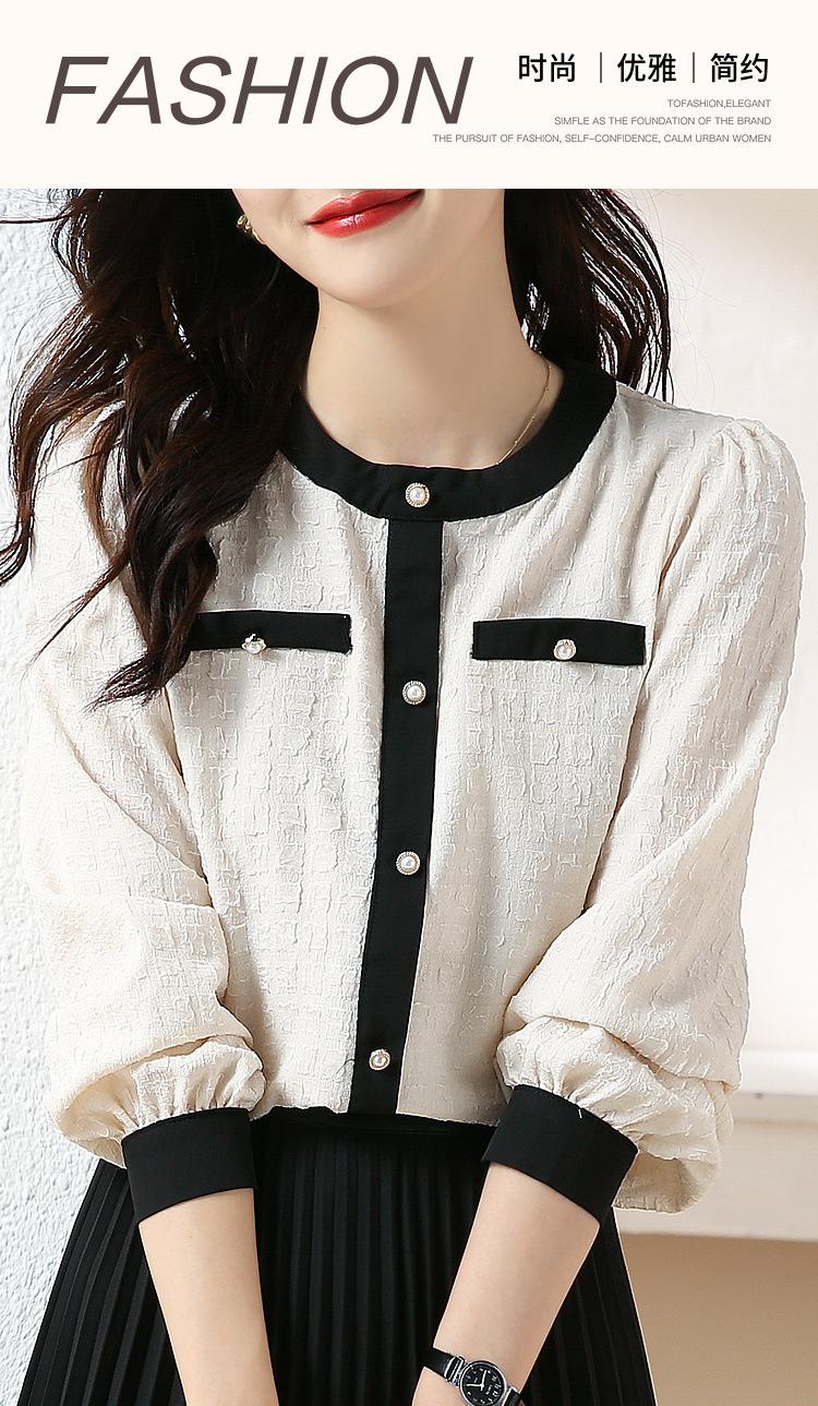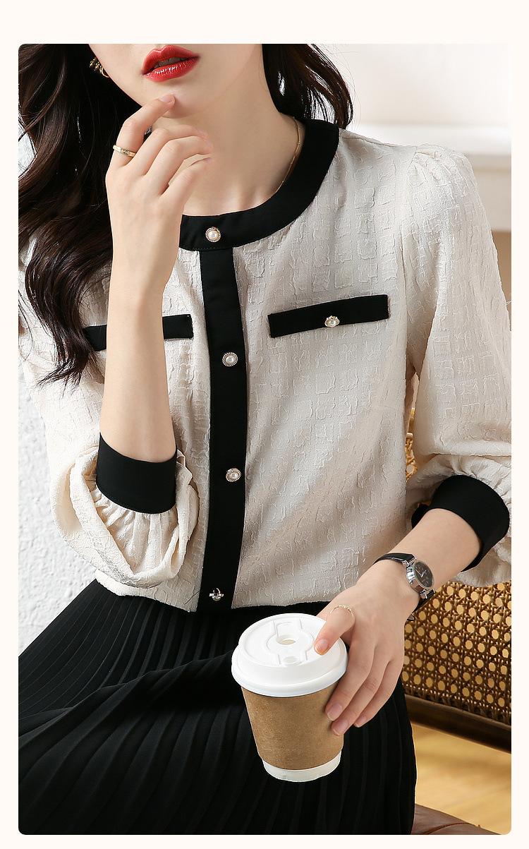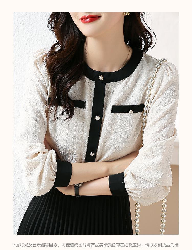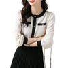 Camiseta de Manga Larga con Cuello Redondo para Mujer 2025 Primavera Nueva Moda Elegante Suave Combinación de Colores Top Camisa Francesa a la Moda