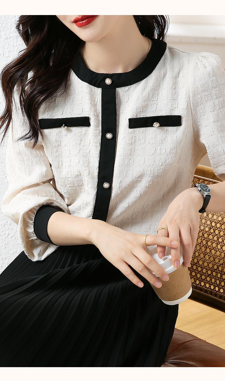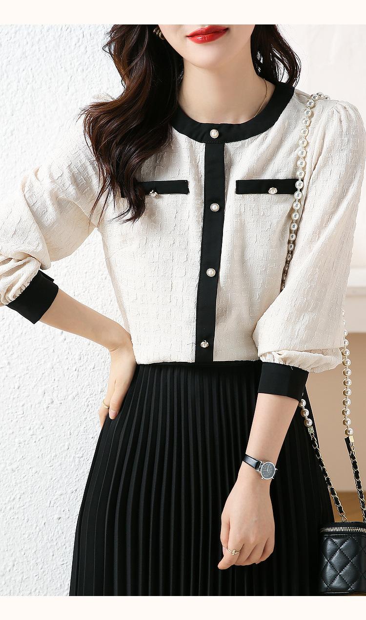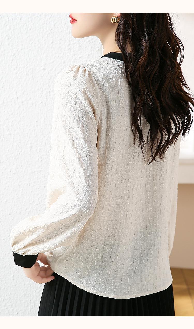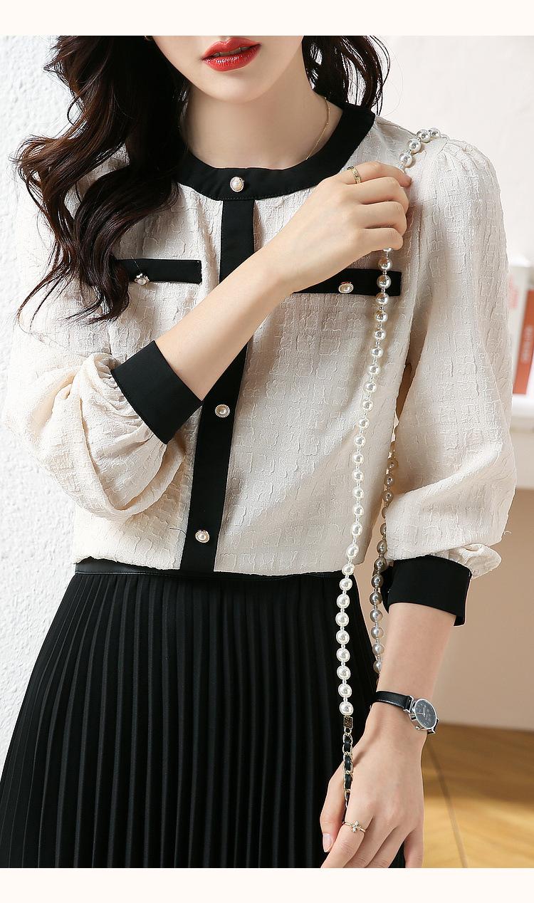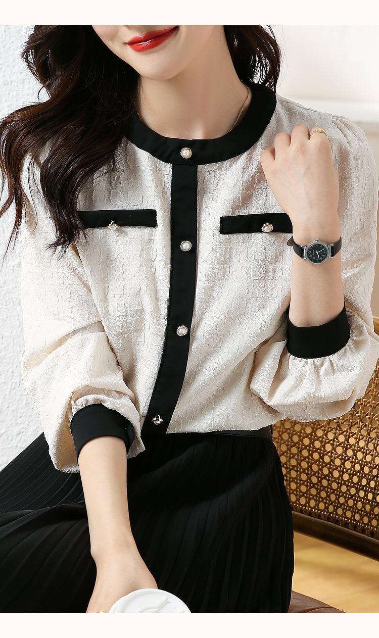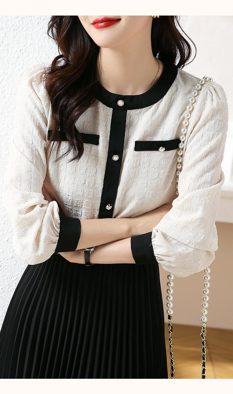 Camiseta de Manga Larga con Cuello Redondo para Mujer 2025 Primavera Nueva Moda Elegante Suave Combinación de Colores Top Camisa Francesa a la Moda