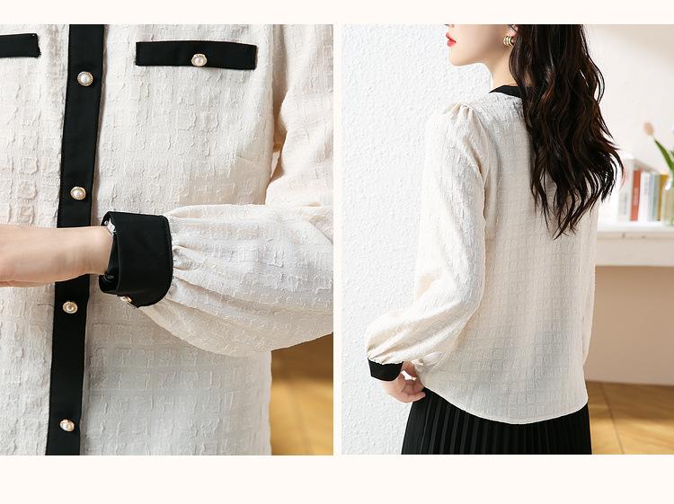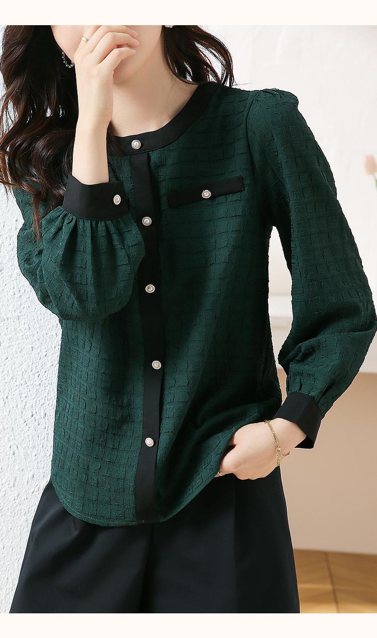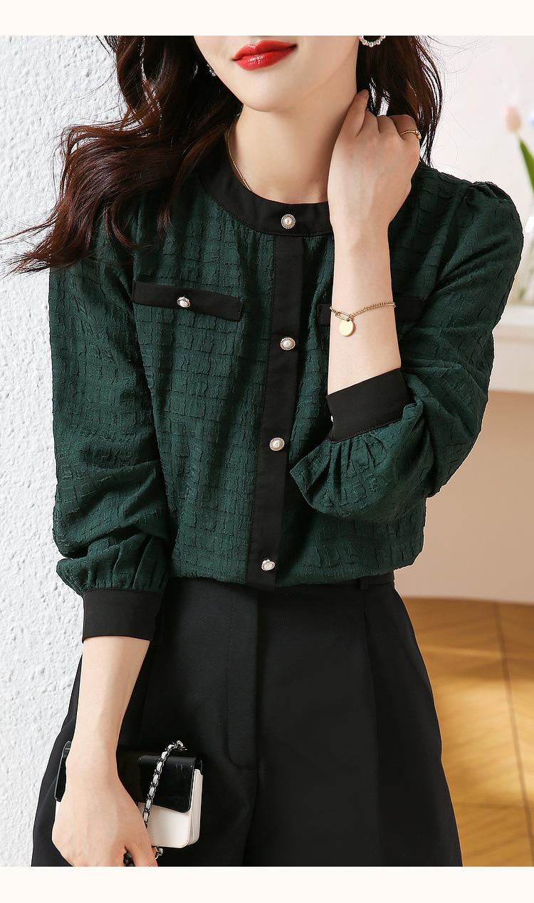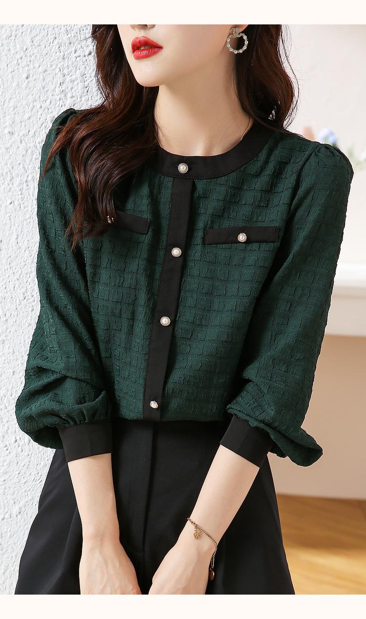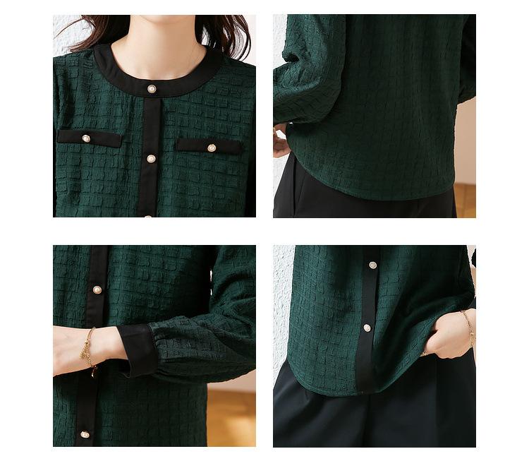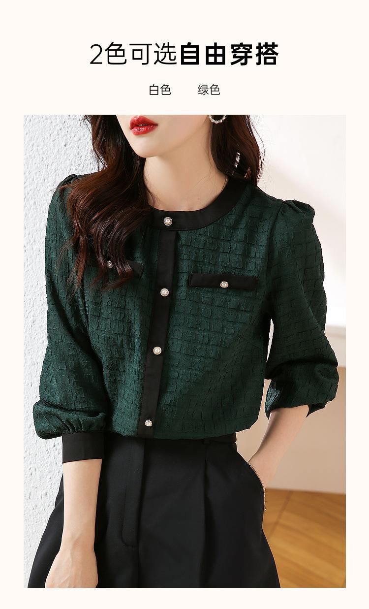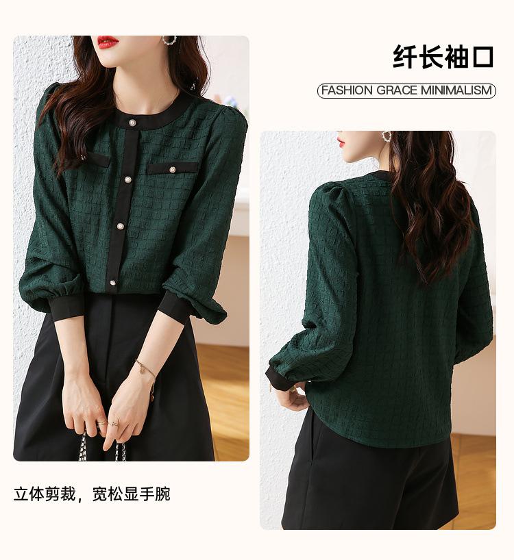 Camiseta de Manga Larga con Cuello Redondo para Mujer 2025 Primavera Nueva Moda Elegante Suave Combinación de Colores Top Camisa Francesa a la Moda