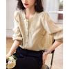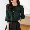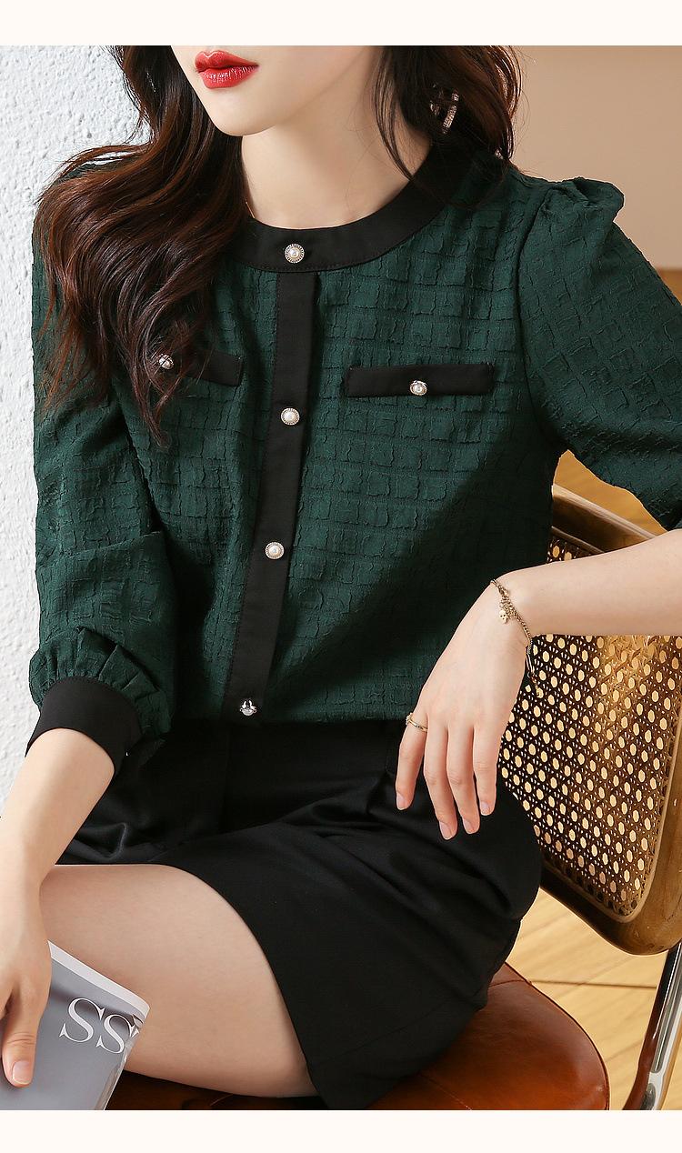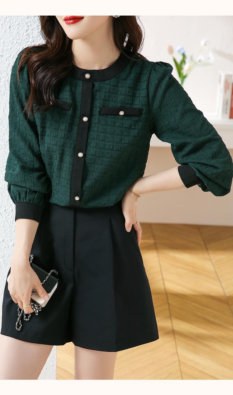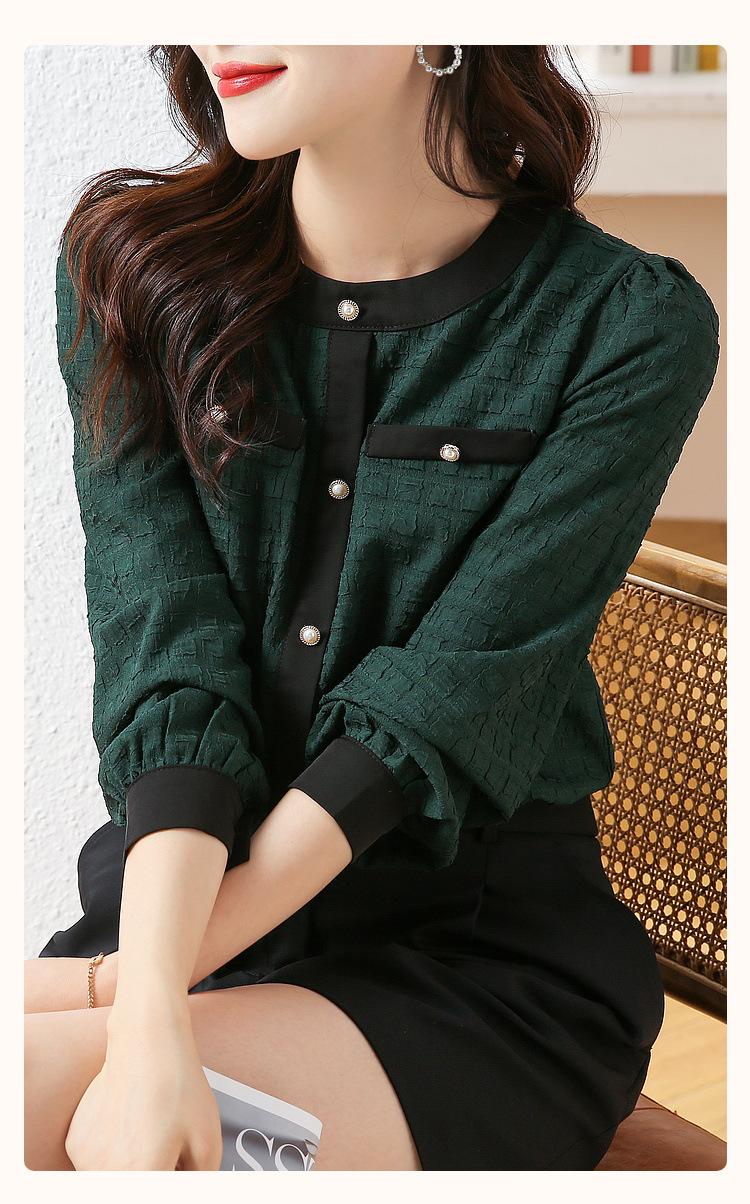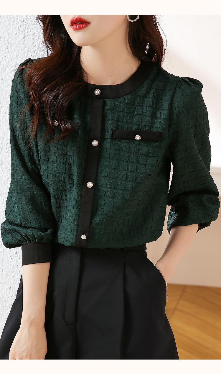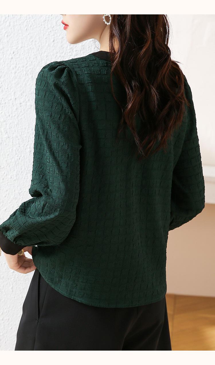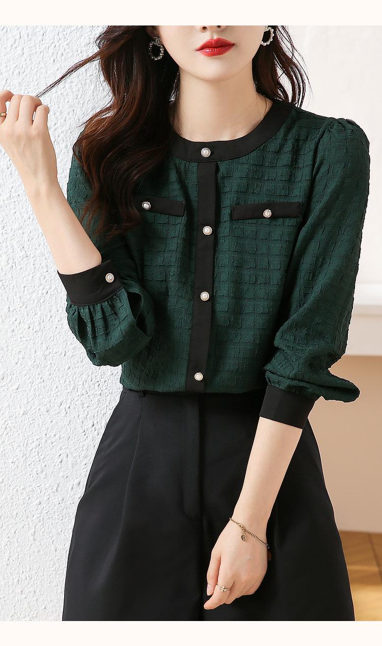 Camiseta de Manga Larga con Cuello Redondo para Mujer 2025 Primavera Nueva Moda Elegante Suave Combinación de Colores Top Camisa Francesa a la Moda