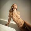 Mameluco de verano para mujer transfronterizo europeo y americano con cuello redondo estampado, perspectiva sexy, manga larga y corte ajustado