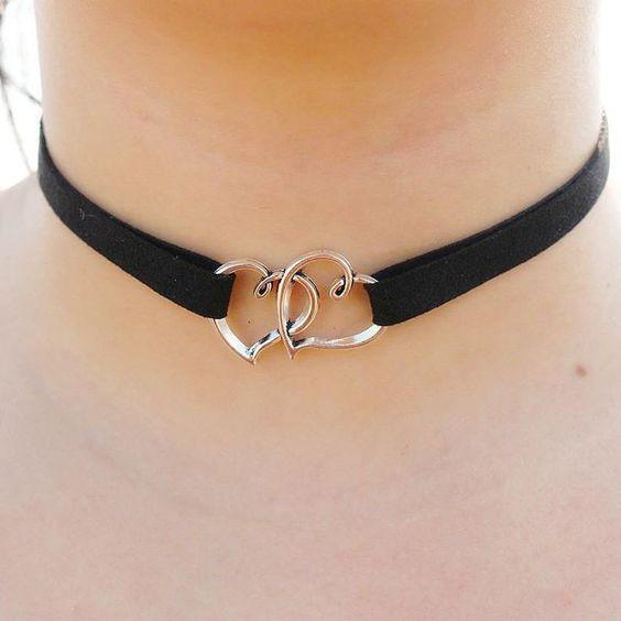 Collar sencillo de clavícula con doble corazón de amor estilo coreano, collar simple retro personalizado tipo gargantilla para mujer, venta al por mayor