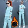 Nuevo traje deportivo grueso con forro polar para mujer, ropa deportiva de otoño e invierno, conjunto de dos piezas holgado e informal a la moda para mujer