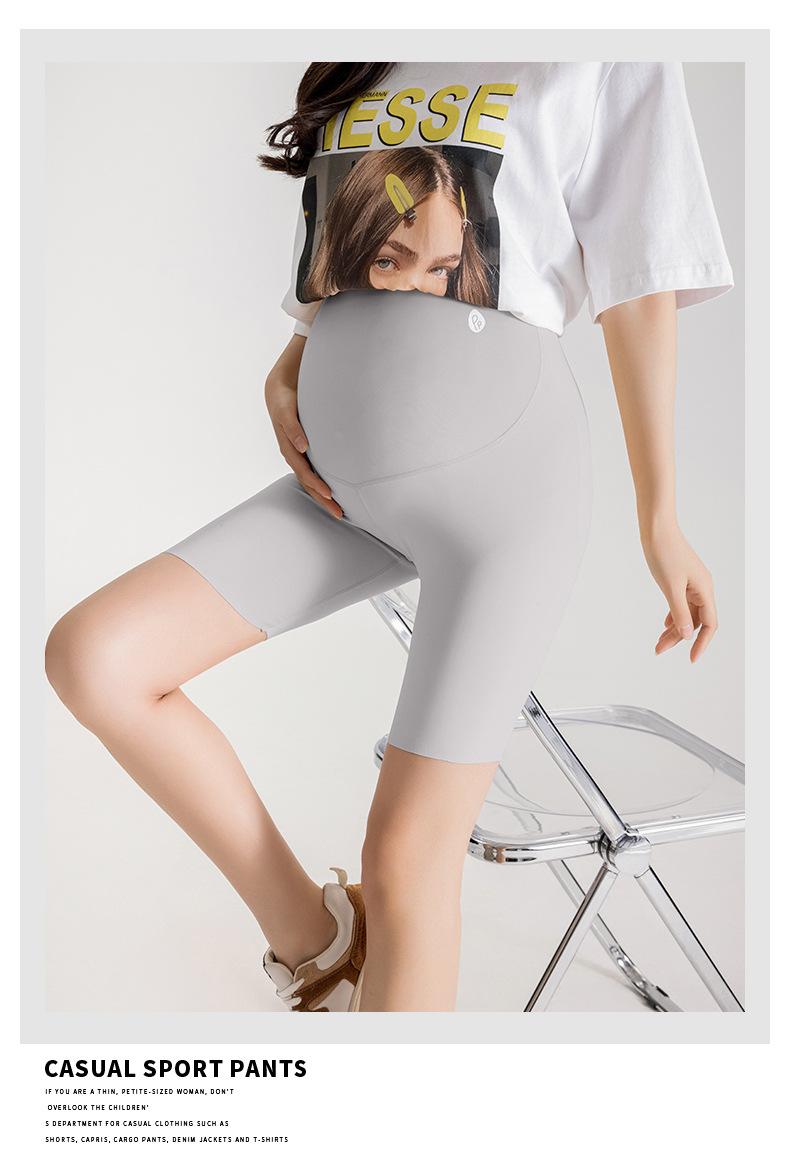 Leggings para embarazadas, pantalones finos de cinco puntos de verano 2025, pantalones de tiburón sin costuras, pantalones de yoga, pantalones cortos para embarazadas.