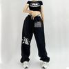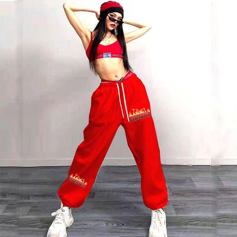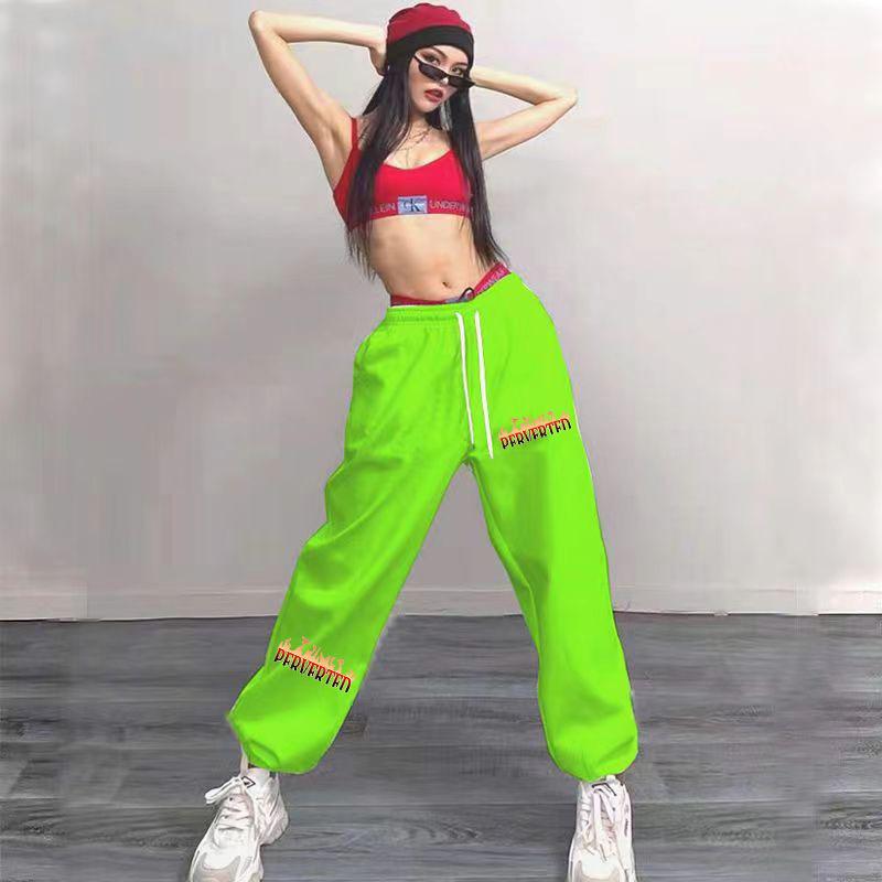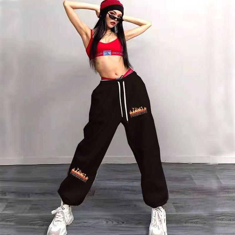 Pantalones anchos estilo jazz retro americano para mujer, estilo hip-hop, informales, holgados, adelgazantes, deportivos, de moda