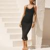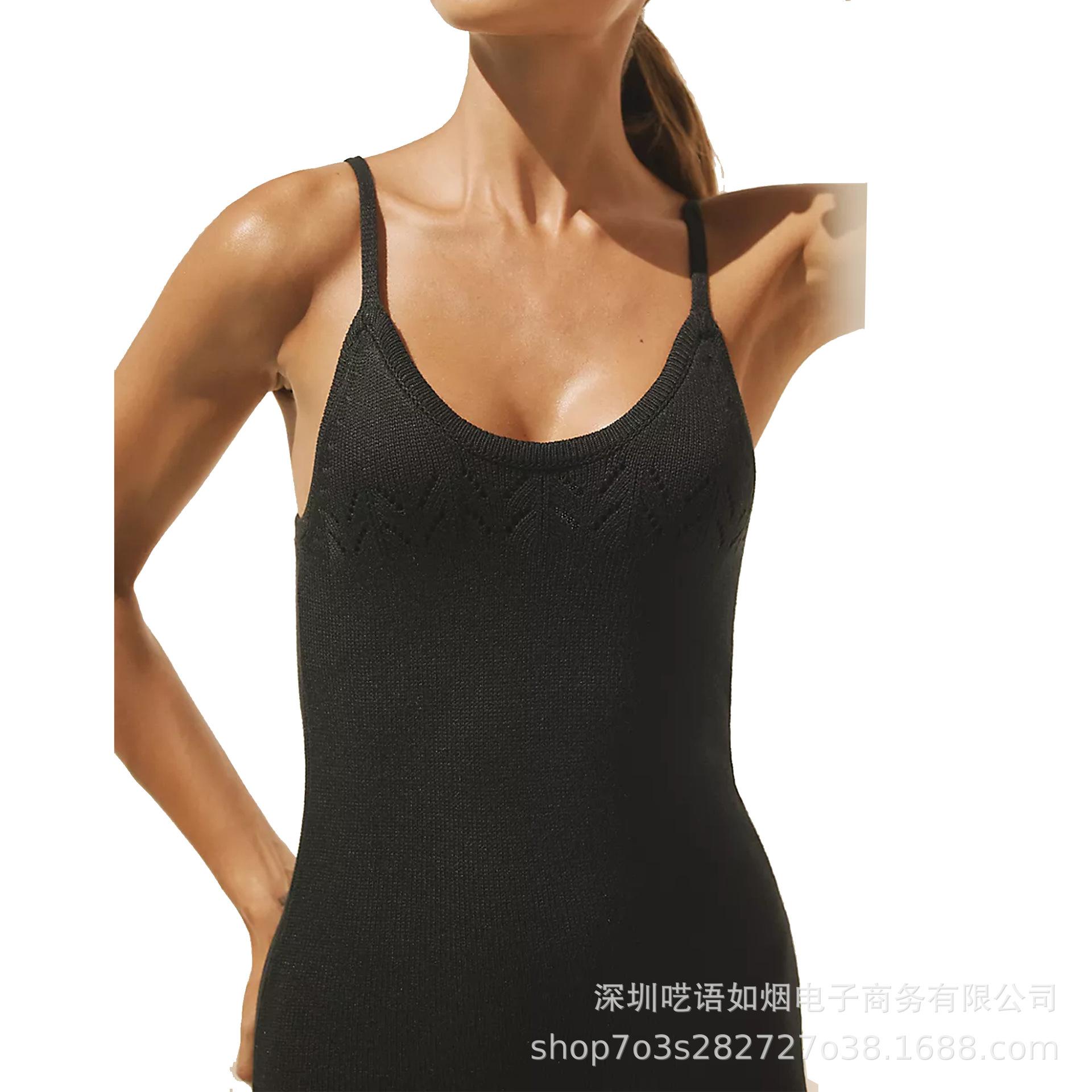 2025 Nuevo Vestido Europeo y Americano de Moda Transfronteriza Sexy de Color Puro con Encaje Empalmado Cuello en V Sin Espalda con Tirantes Falda Larga para Mujer