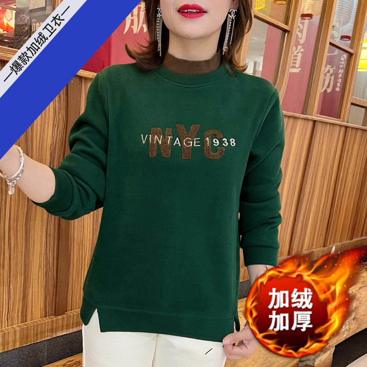Sudadera Gruesa de Otoño e Invierno para Mujer con Forro Polar, Cálida, Moderna, con Letras, Cuello Alto, Estampada, Cuello Redondo, Versátil, Manga Larga para Mujer